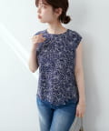 こちらのブラウスは、ノースリーブですがほんの少しフレンチです。フレンチ具合少なめで二の腕は見えますが、肩はそこまで見えません。