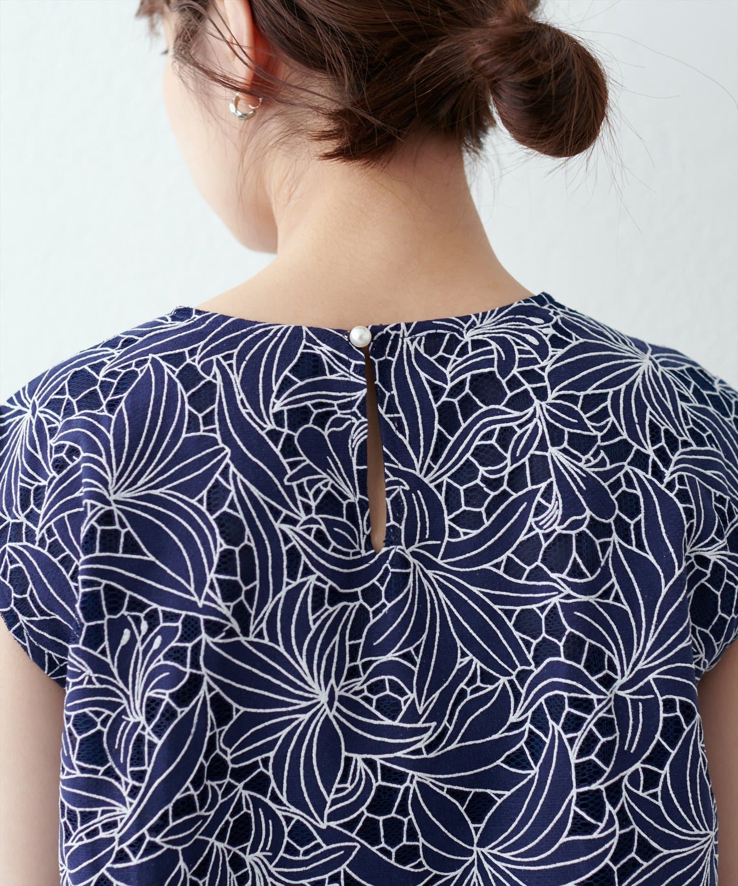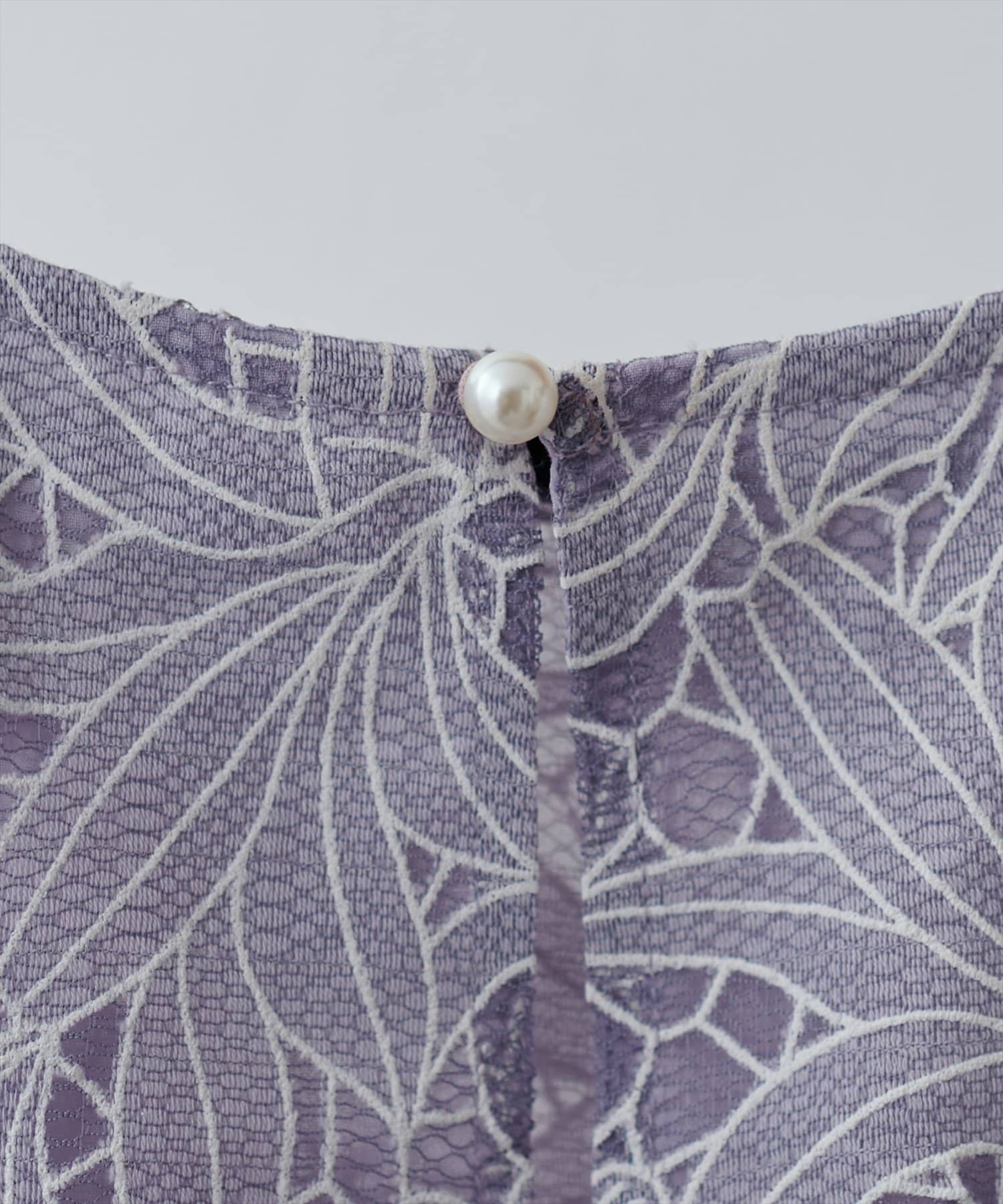 バックスタイルのネック部分にはさりげなくパールボタンを施しポイントに◎