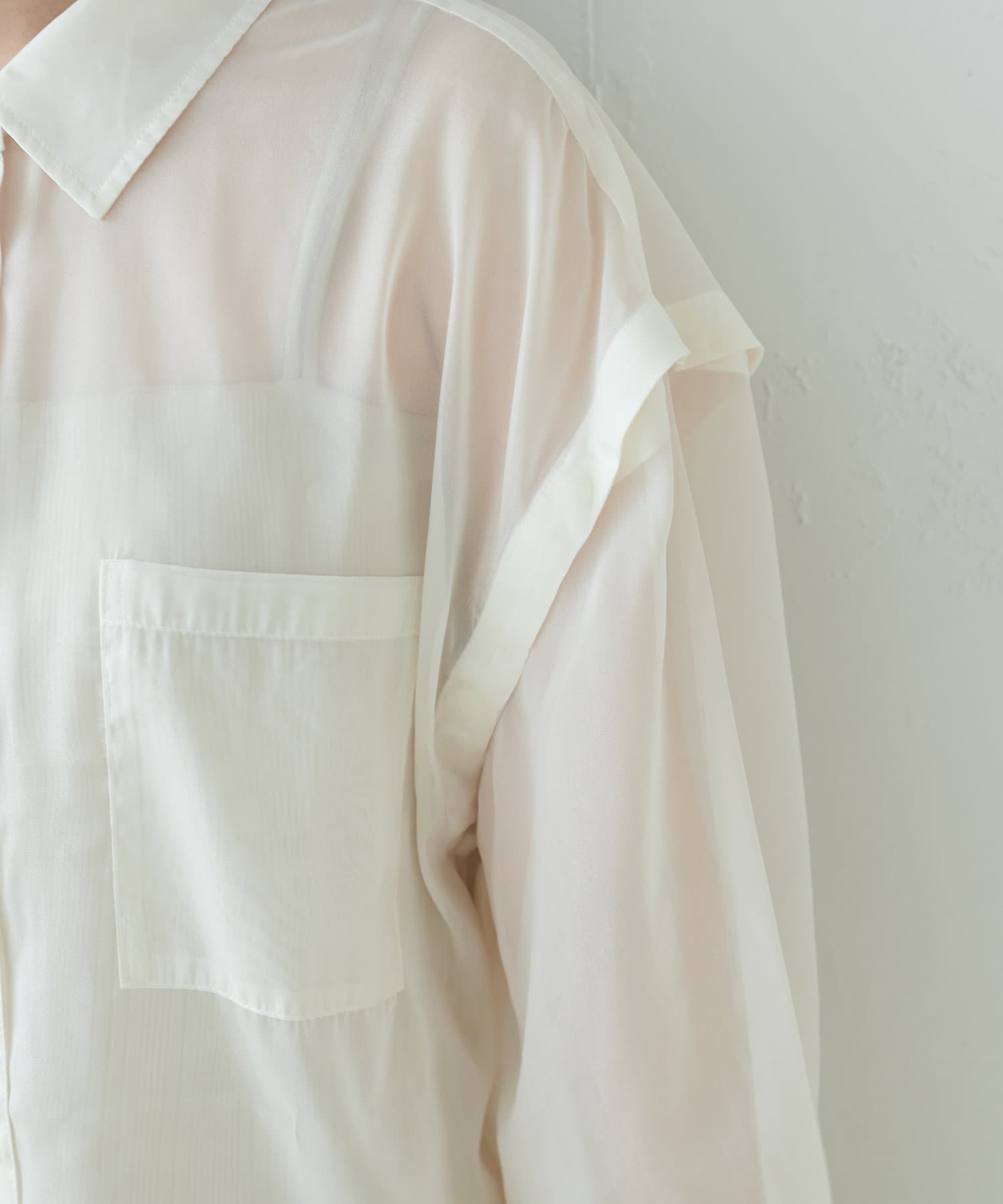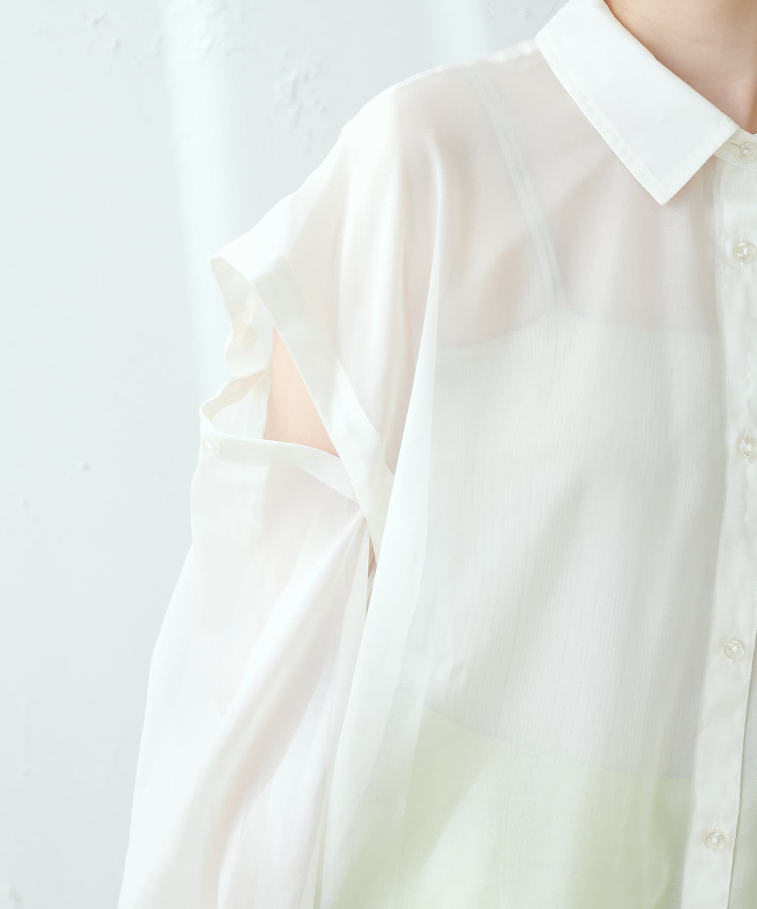 袖はボタンで取り外しが可能なので、ベストのような感覚でシャツスタイルとはまた違ったシルエットでお楽しみ頂けます。