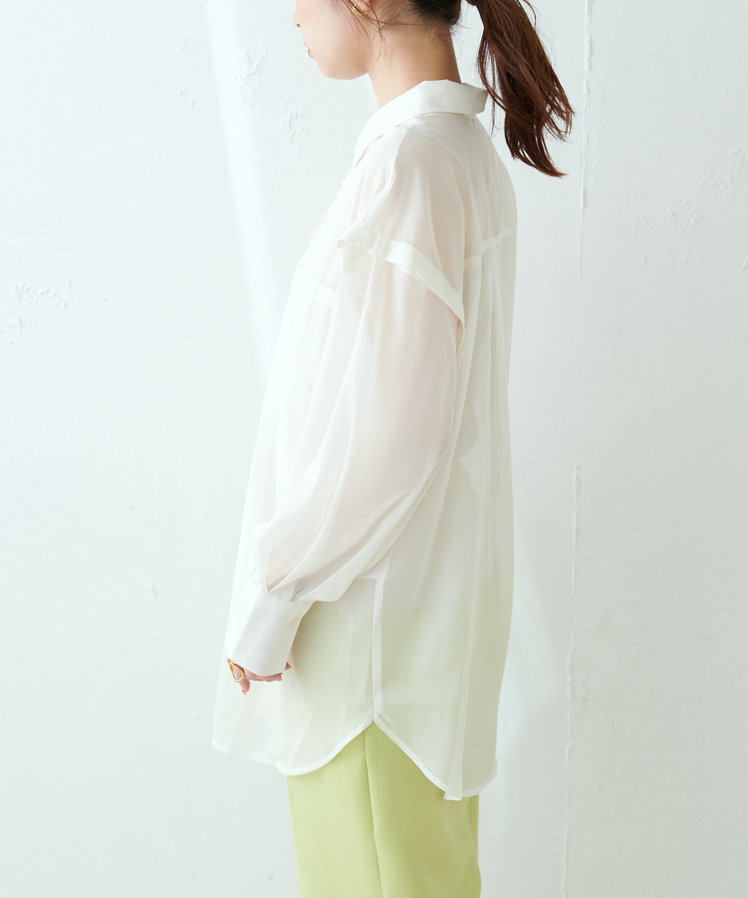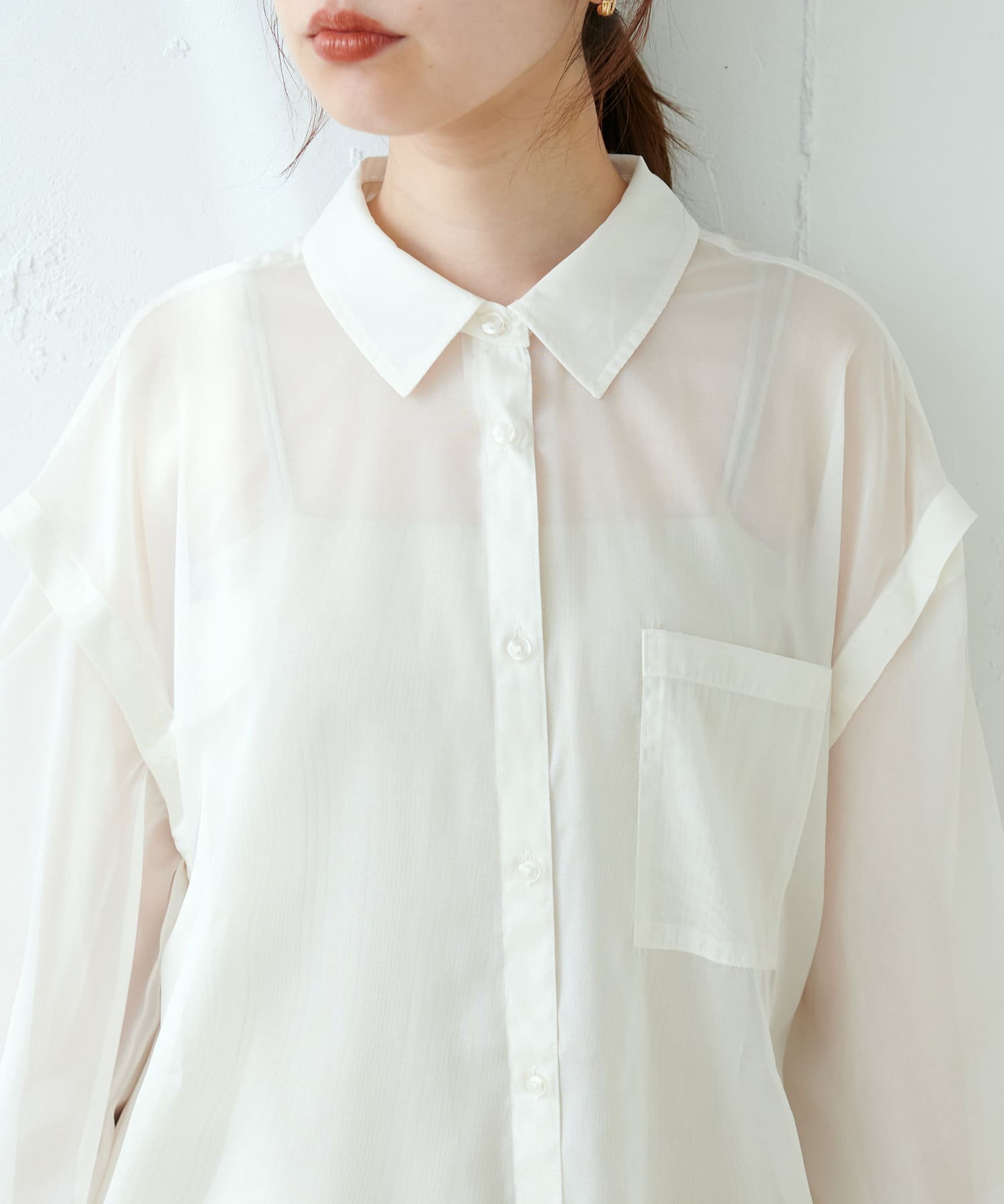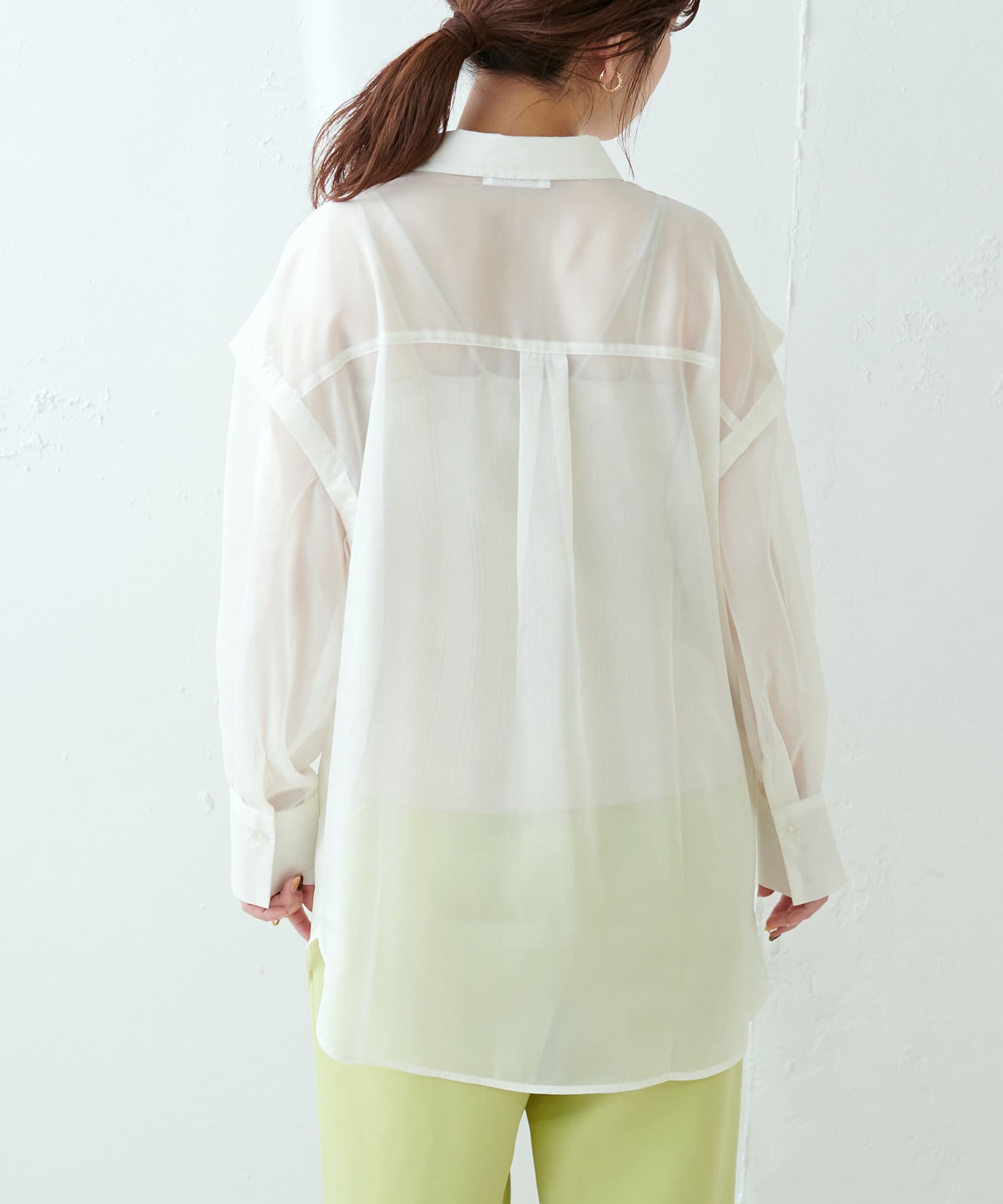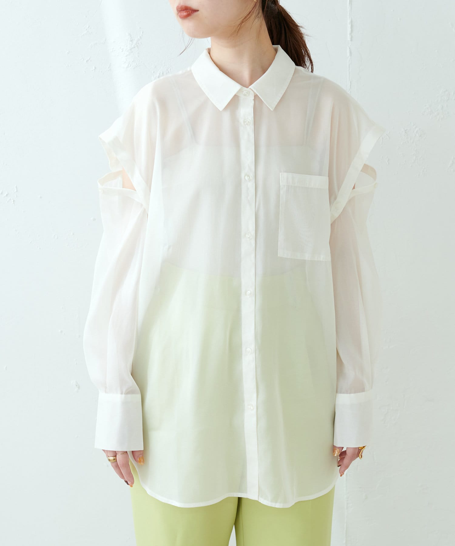 トレンドのシアーと肩あきの両方を兼ね備えた旬な一品で、