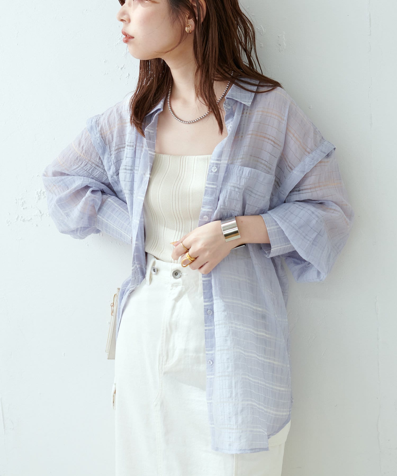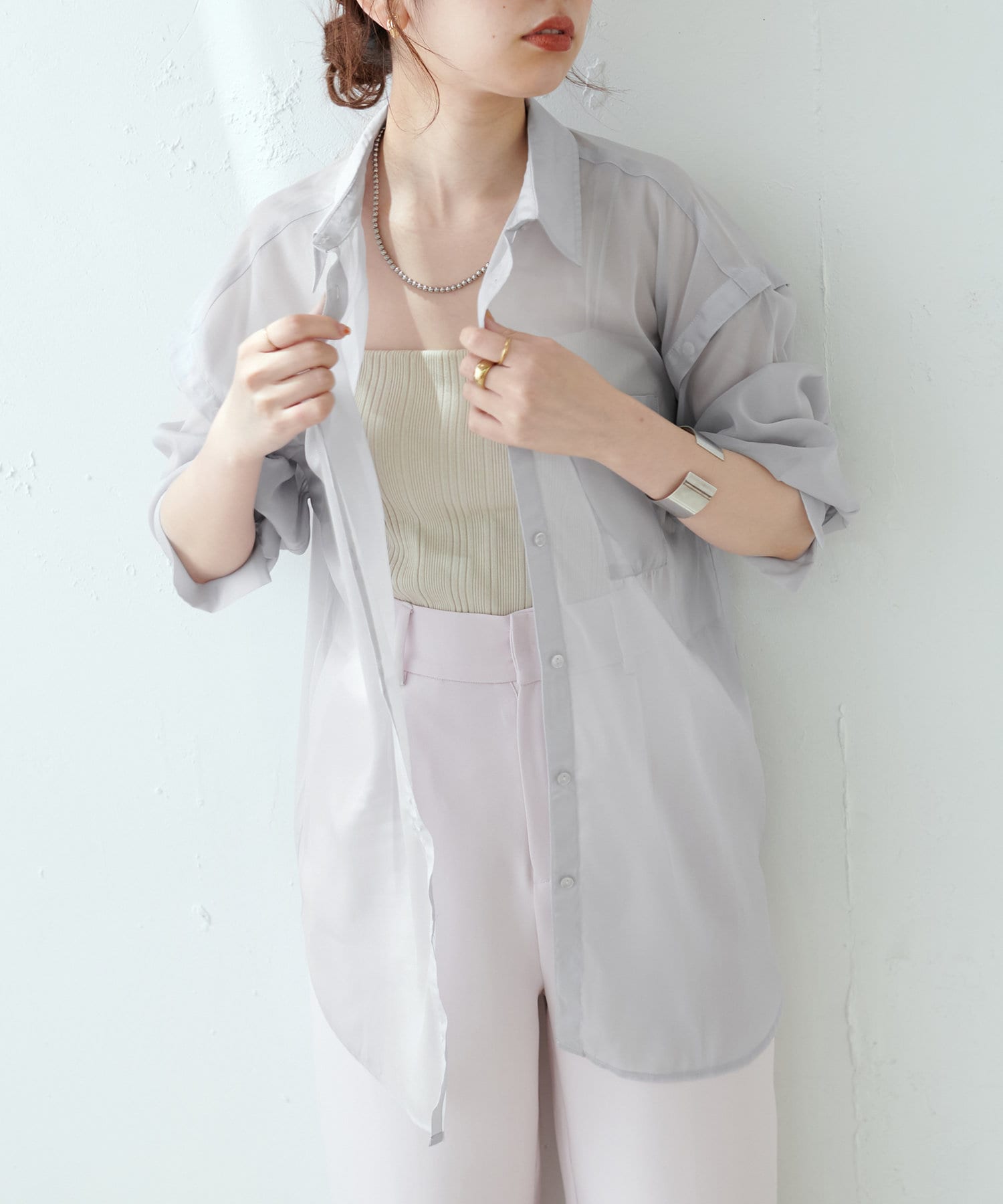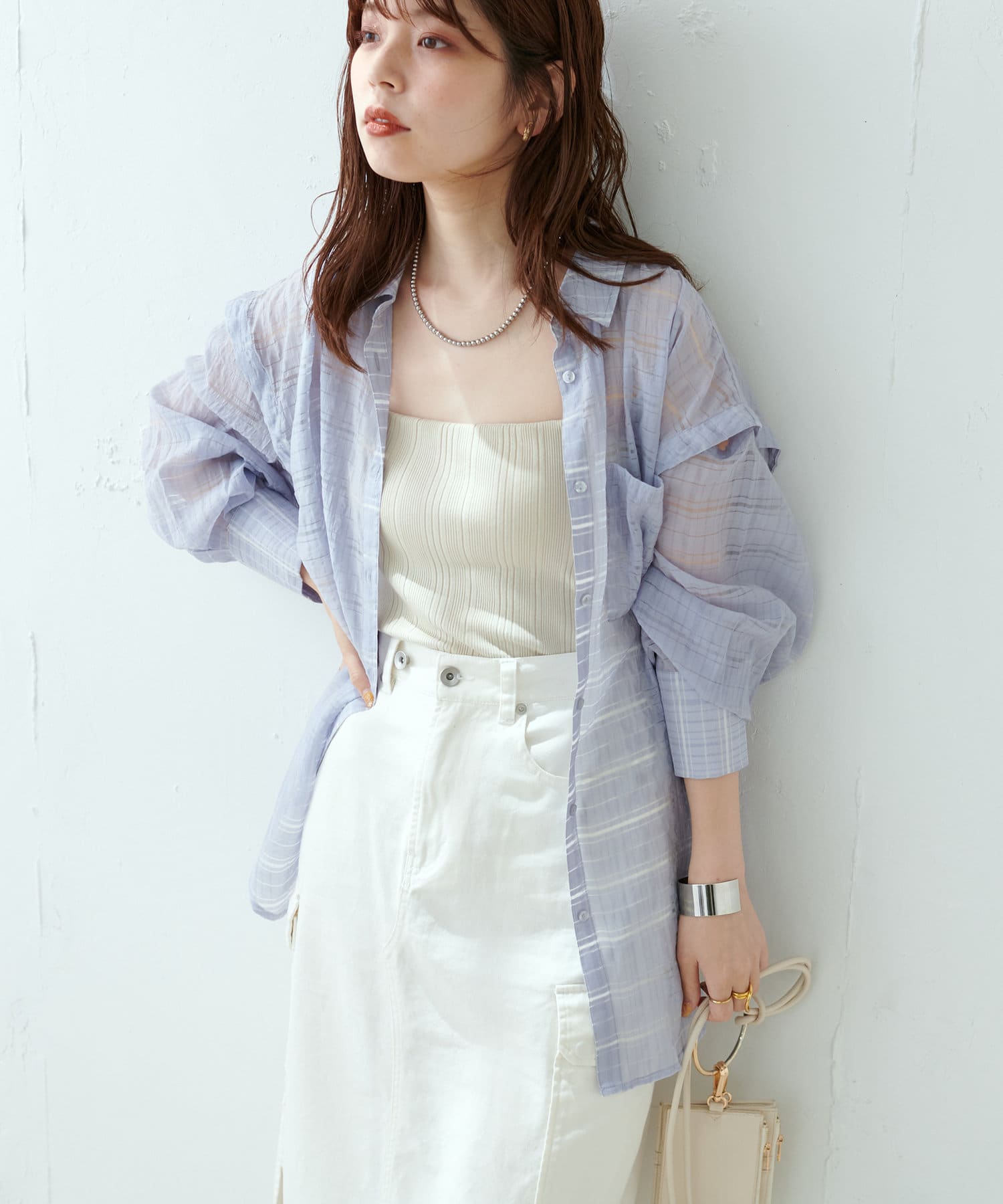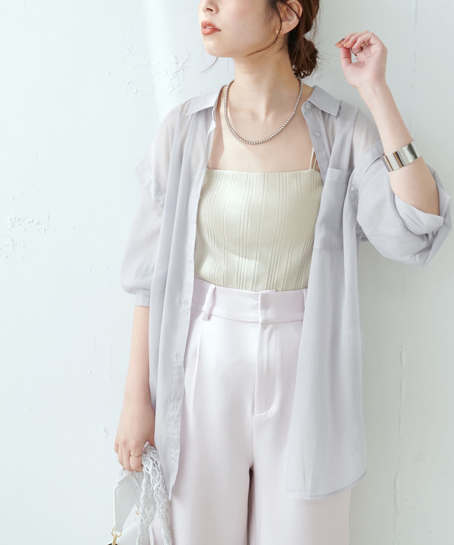 シャツタイプにしてTシャツやタンクトップ、キャミソールに羽織っても着まります◎