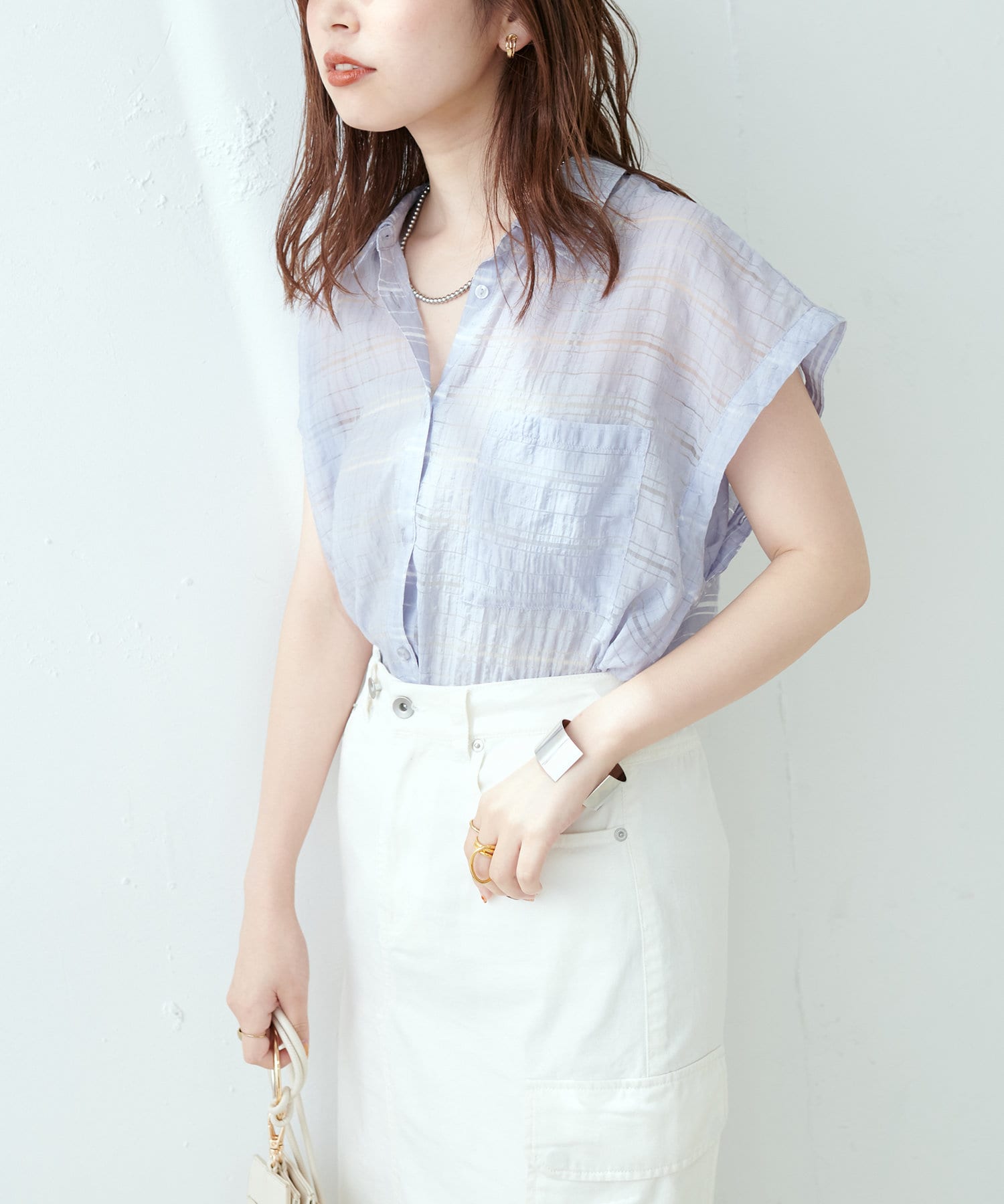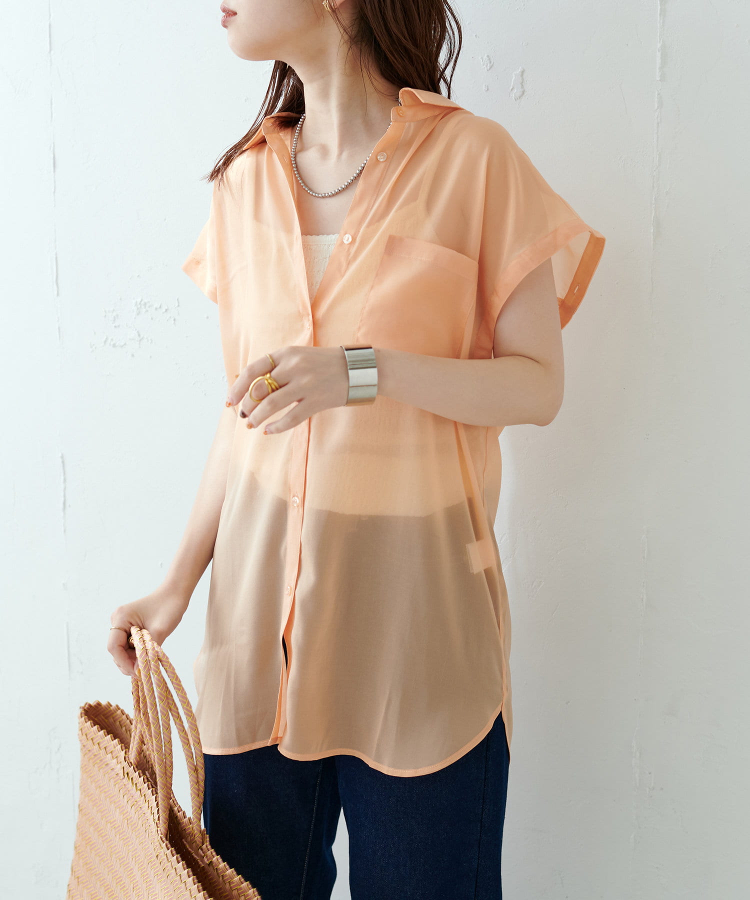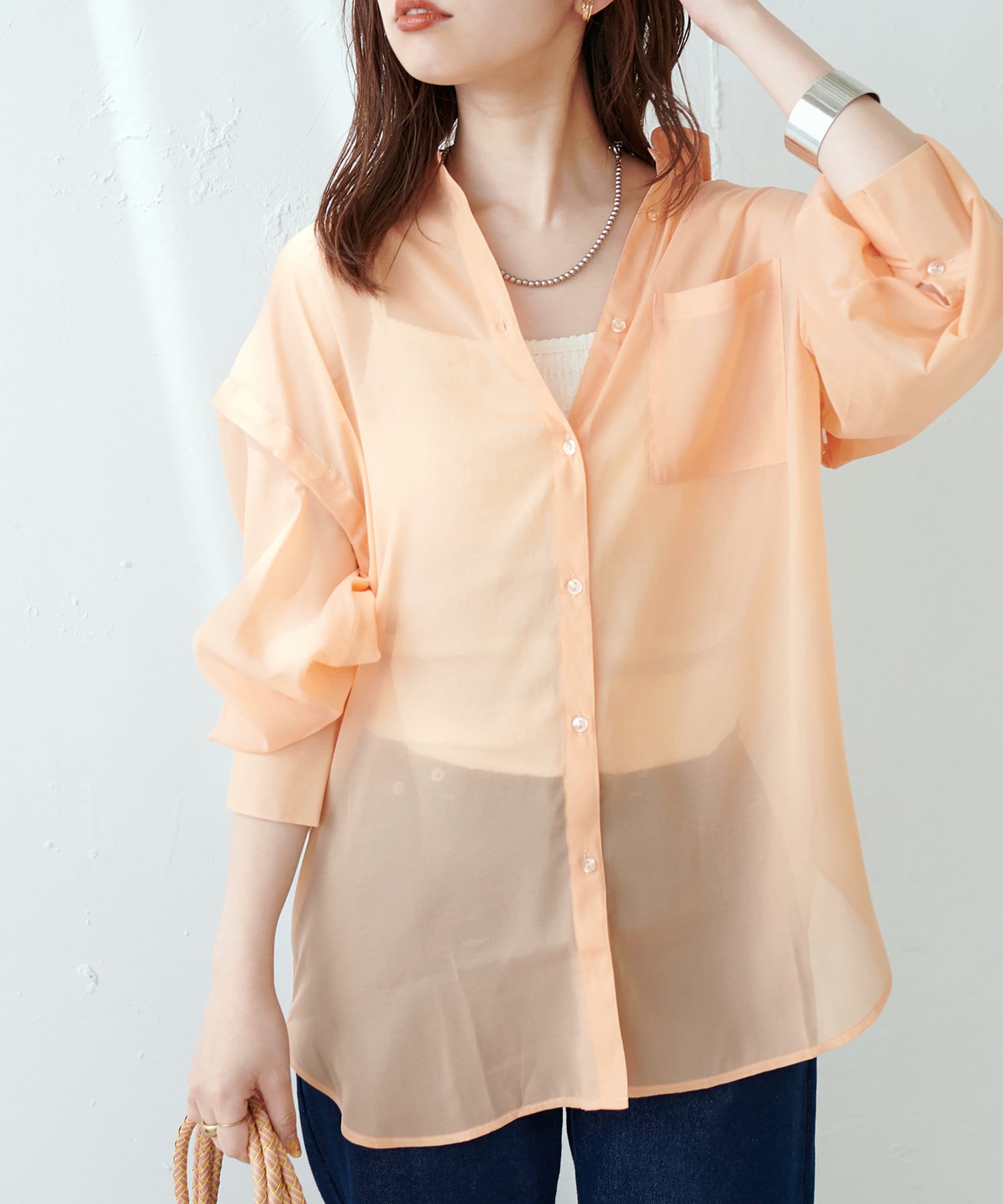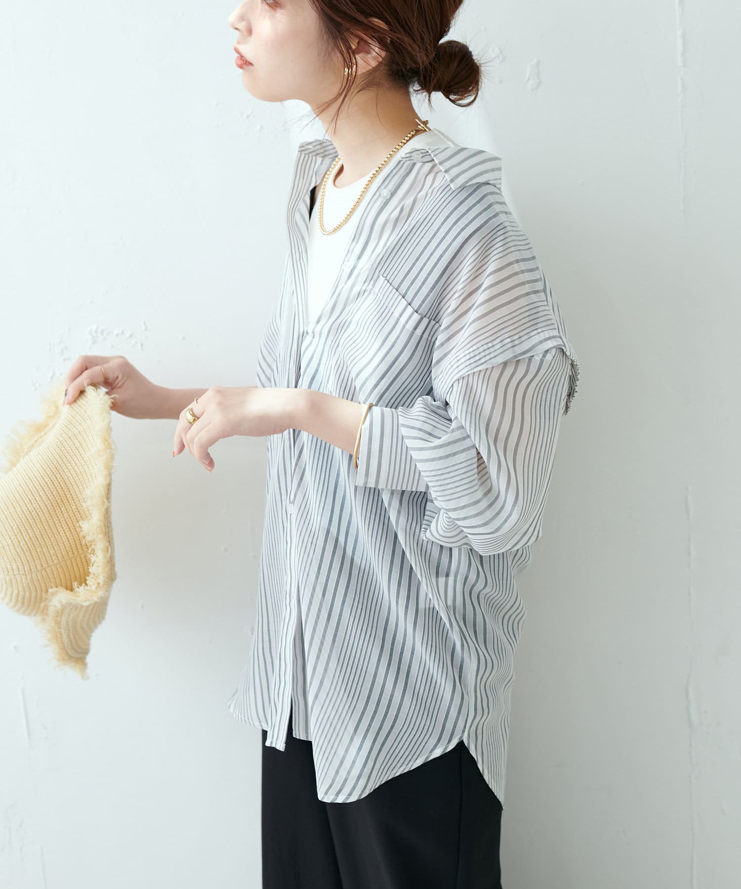 シャツタイプにしてTシャツやタンクトップ、キャミソールに羽織っても着まります◎