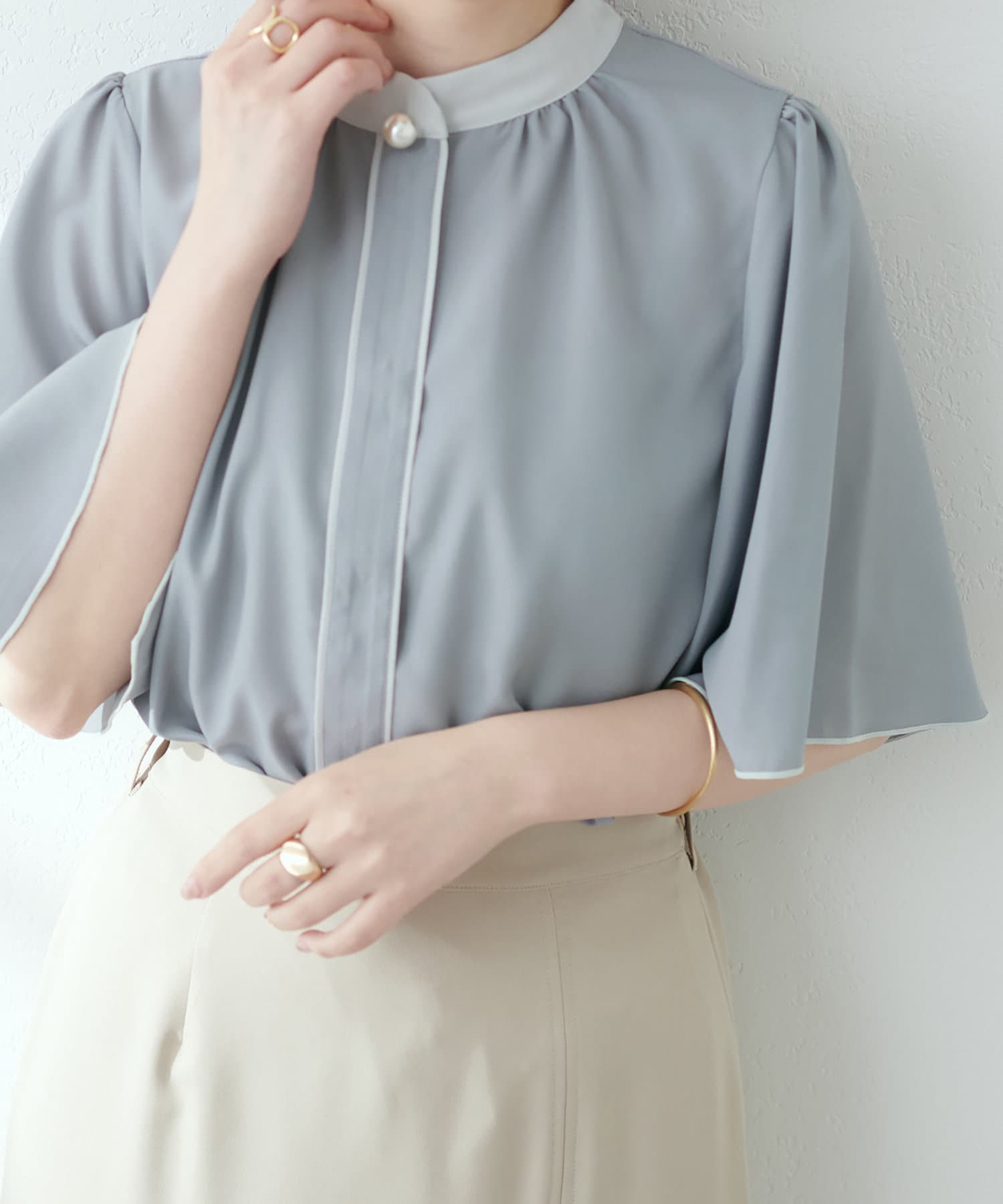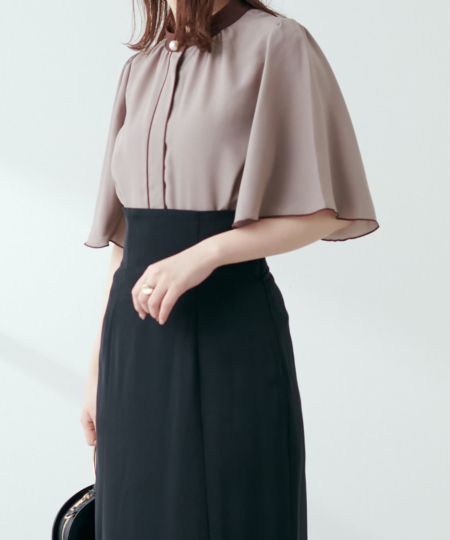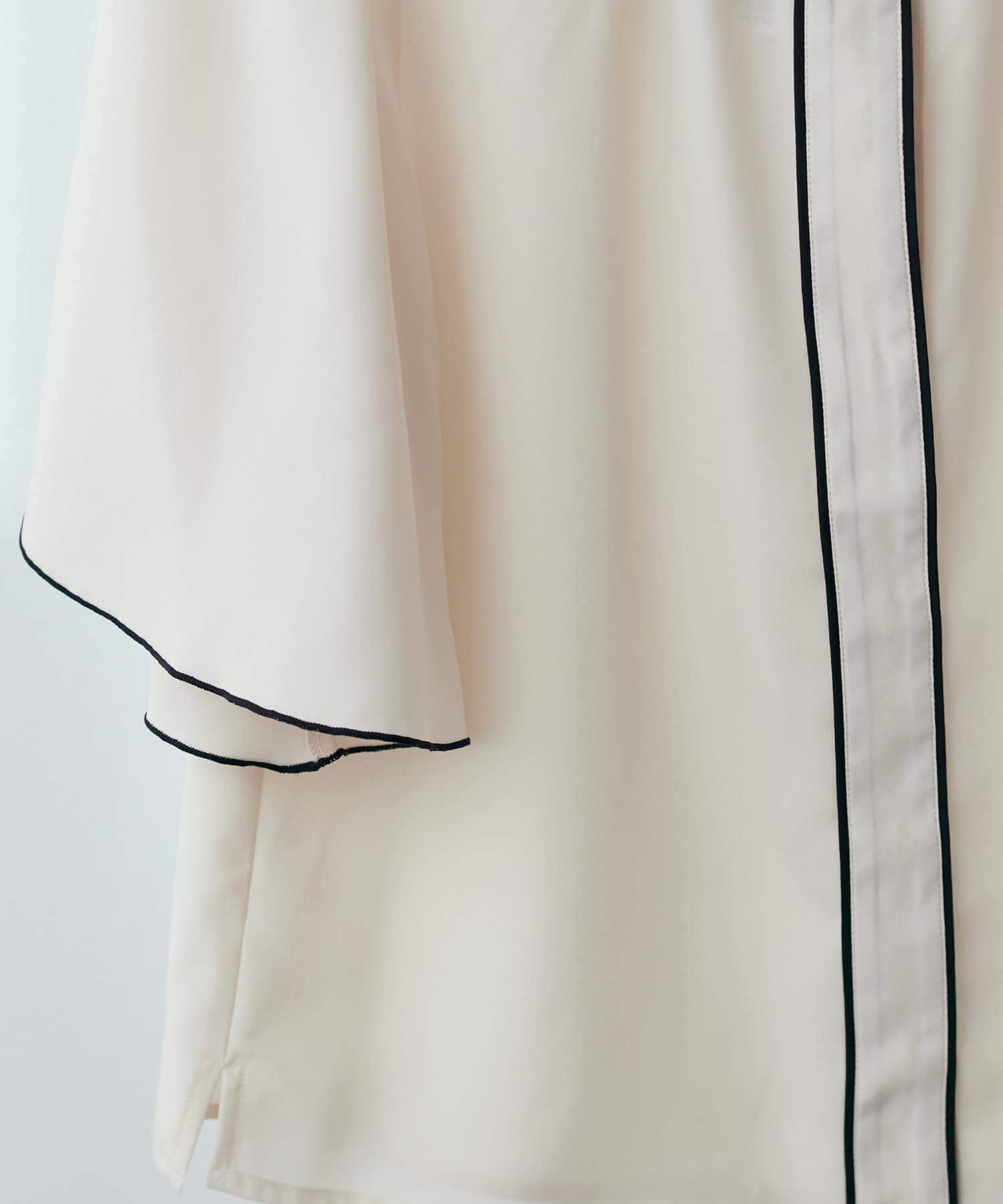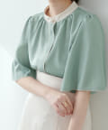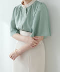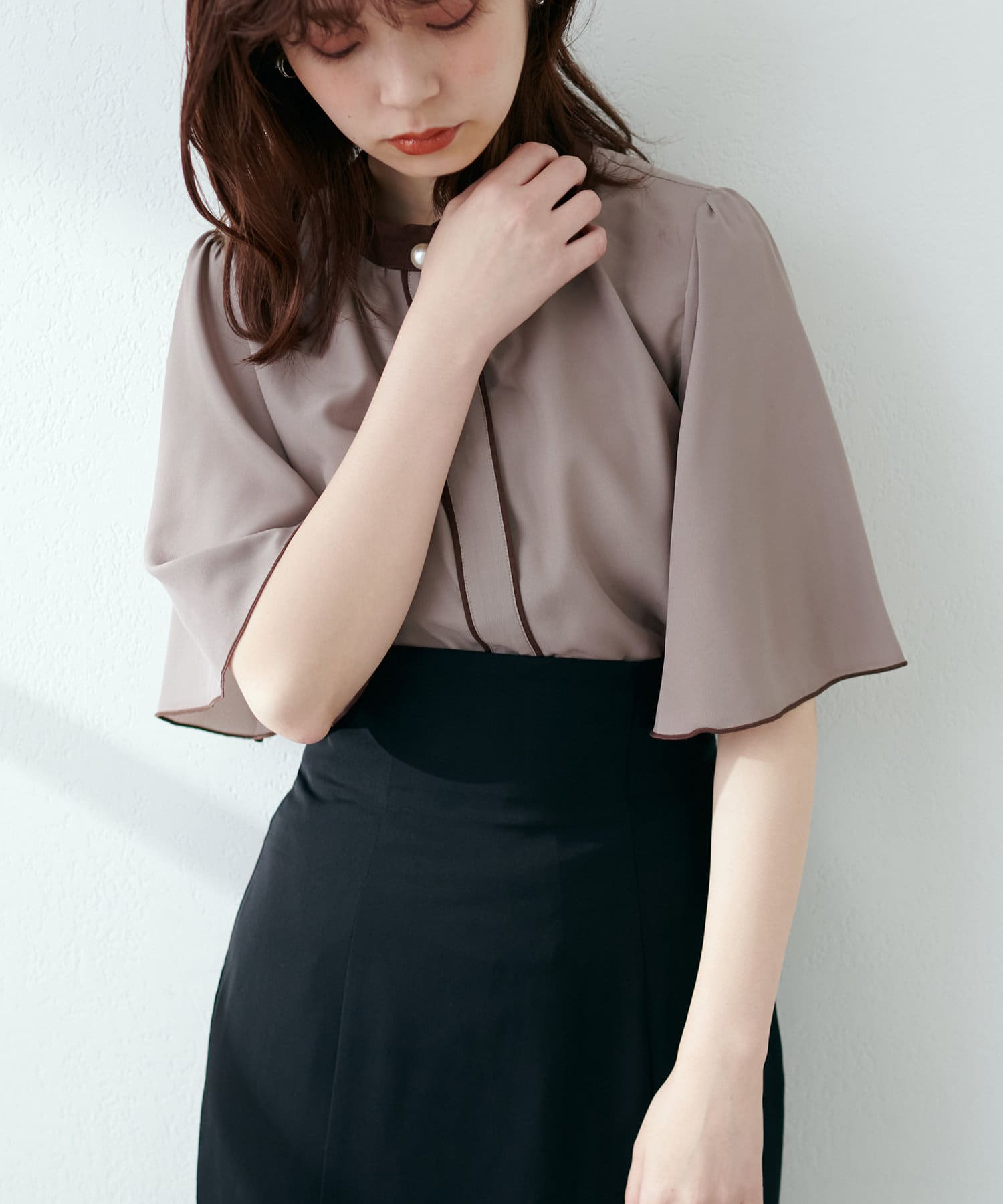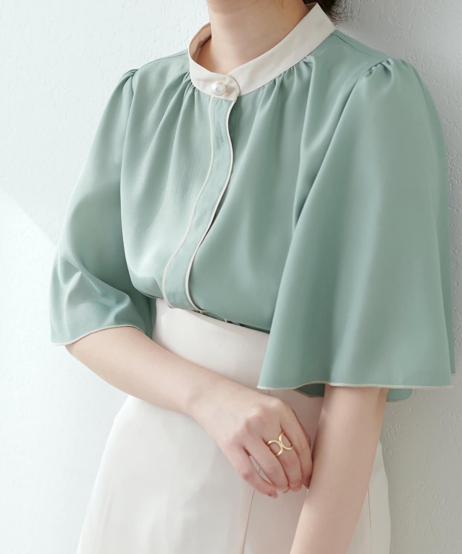 ■Series 351310360 パール釦ポイントバイカラーフレア5分袖ブラウス