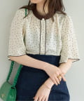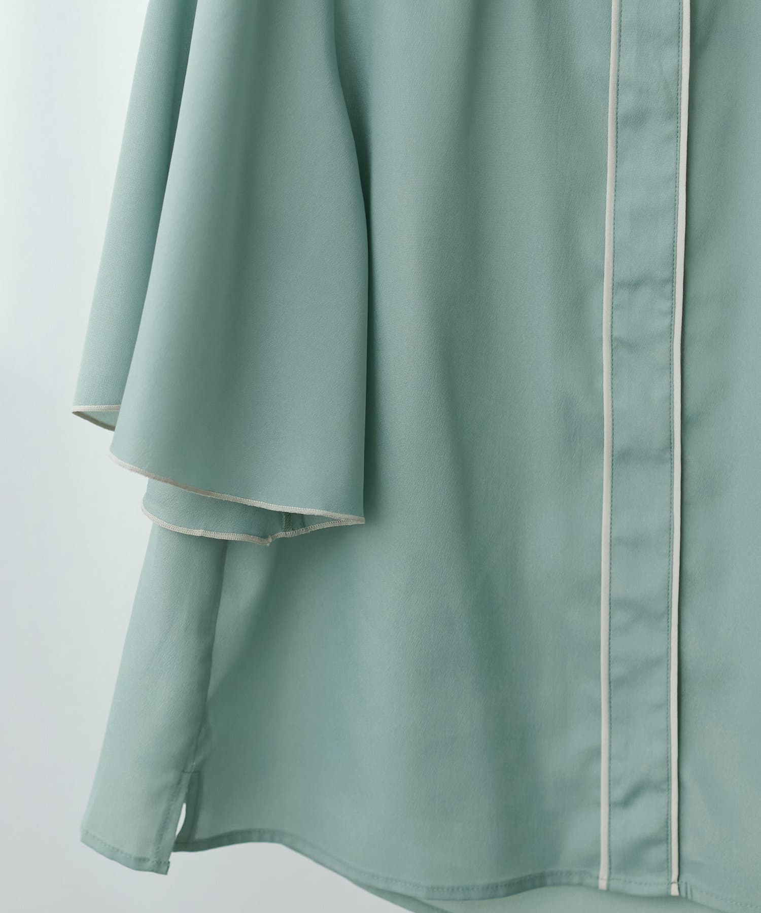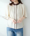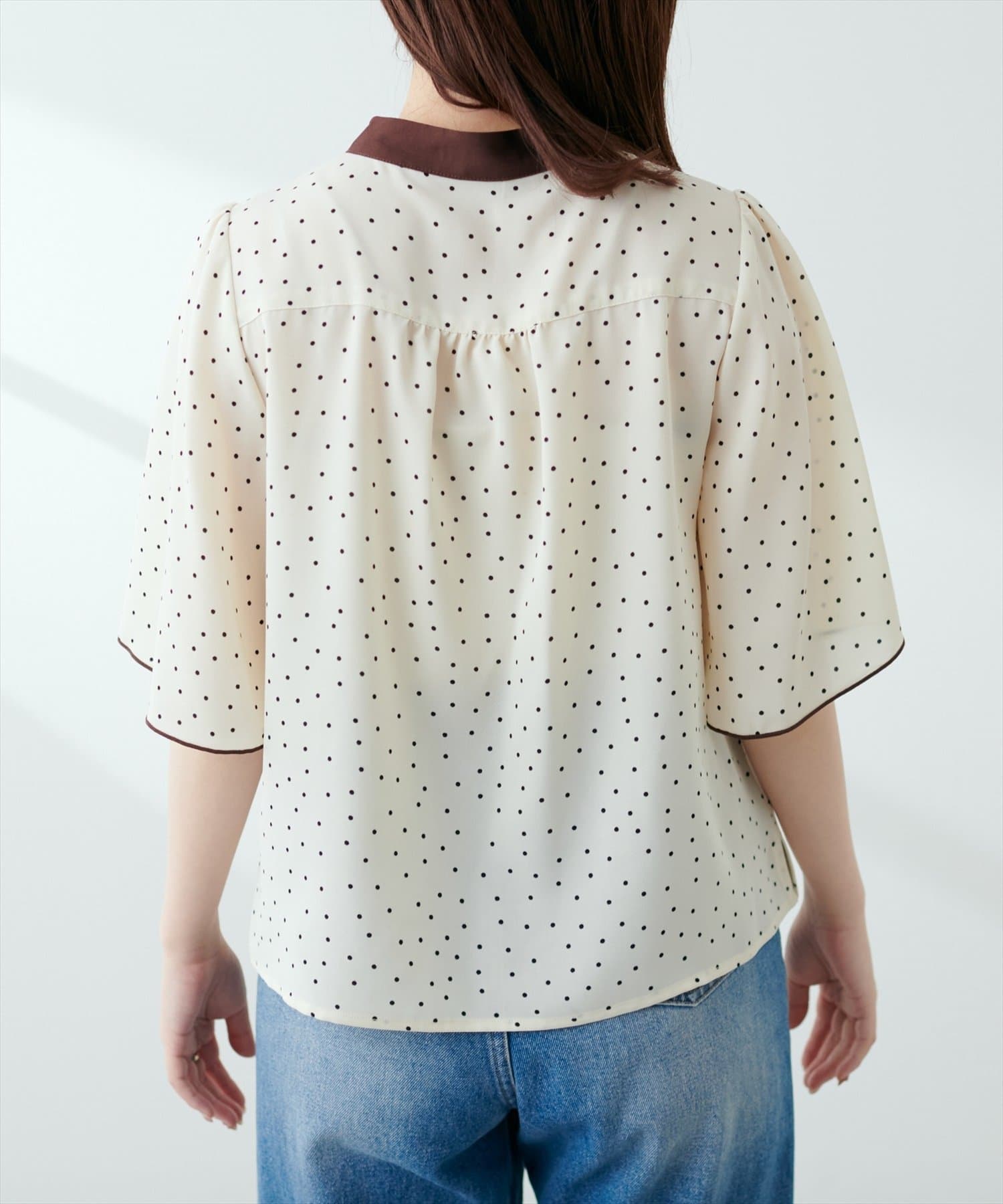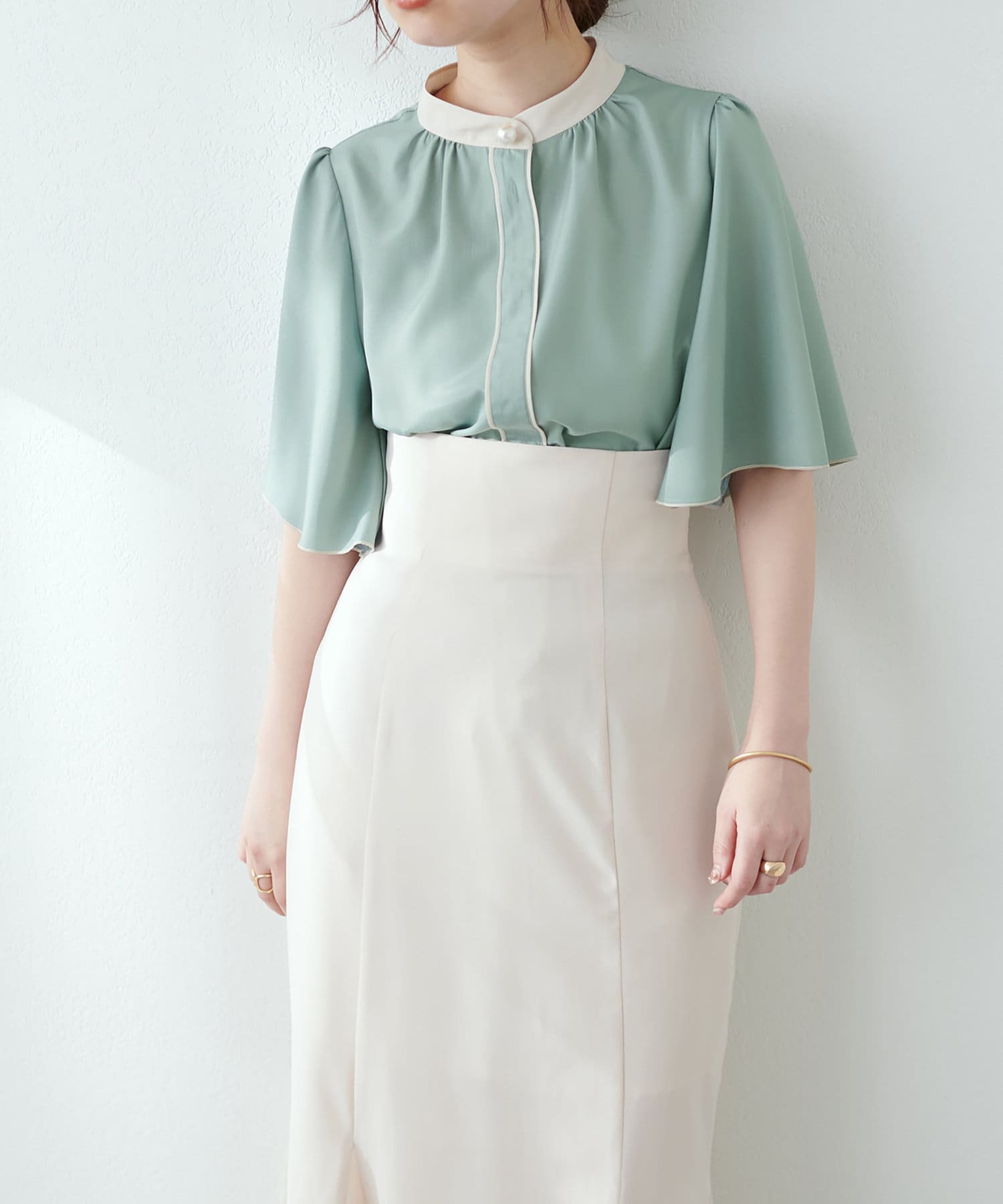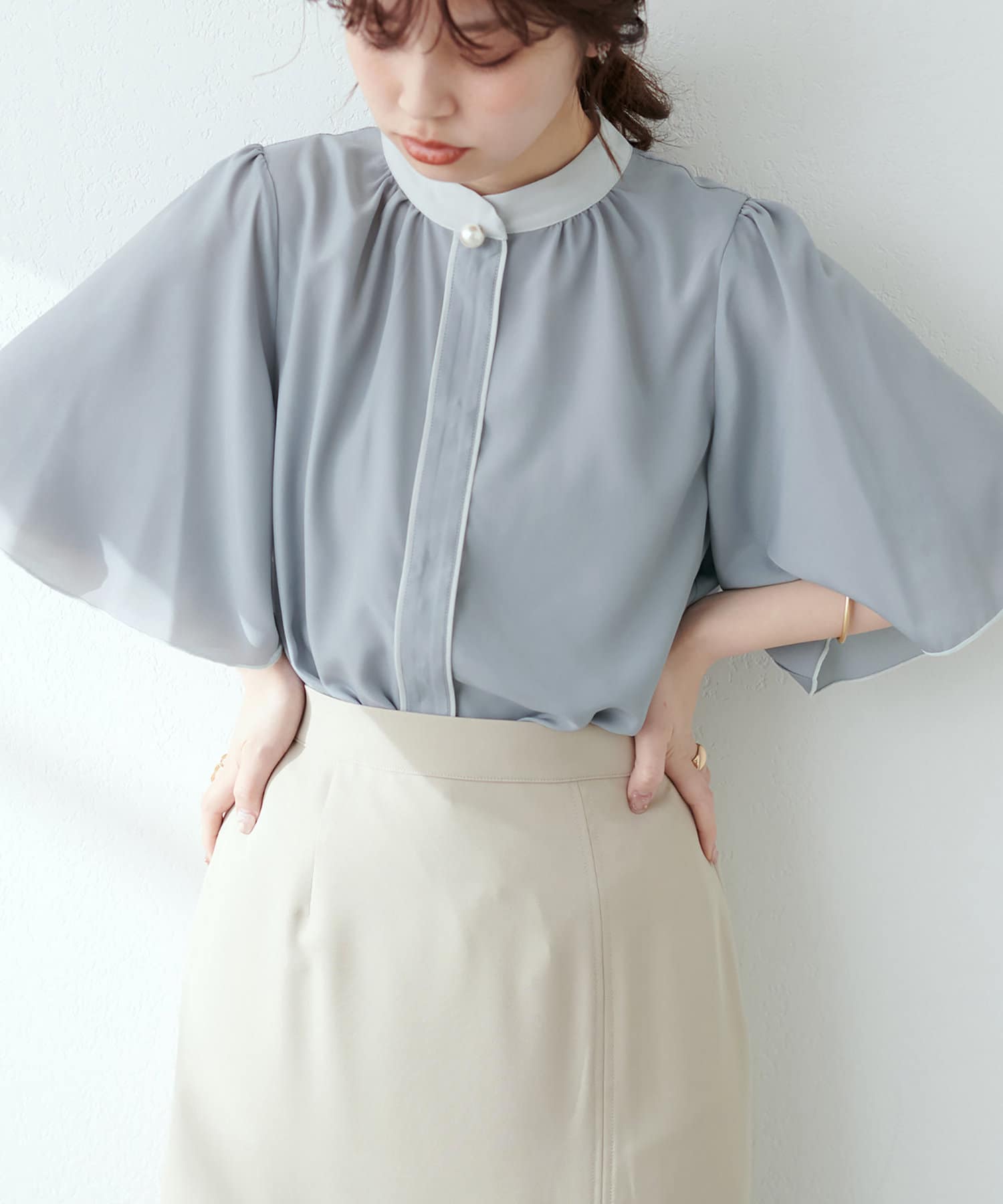 ■Series 351310360 パール釦ポイントバイカラーフレア5分袖ブラウス