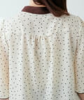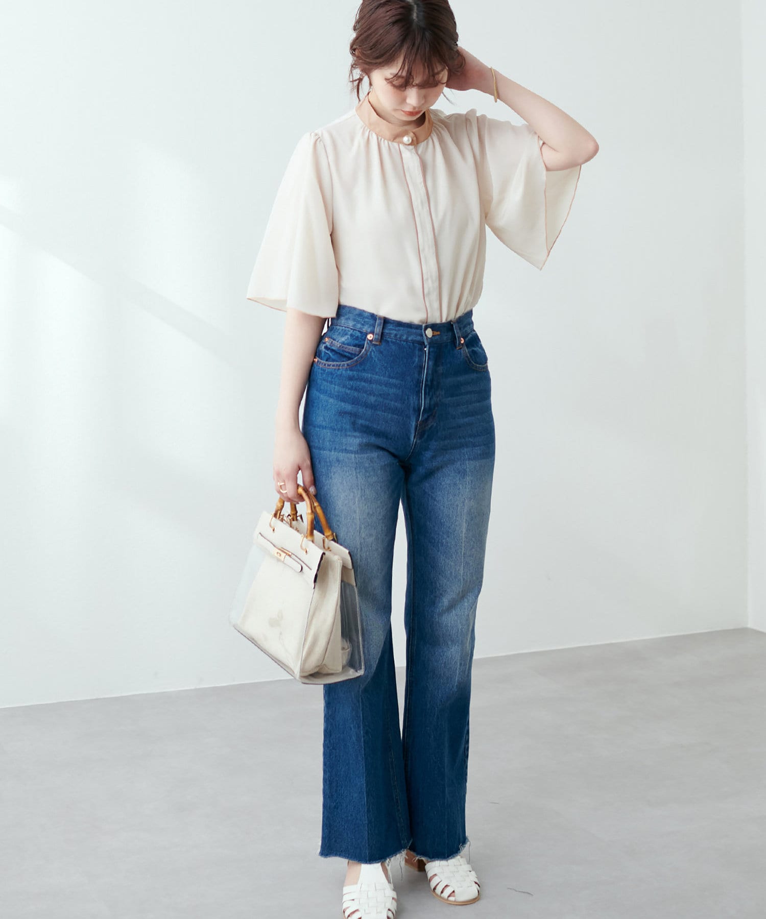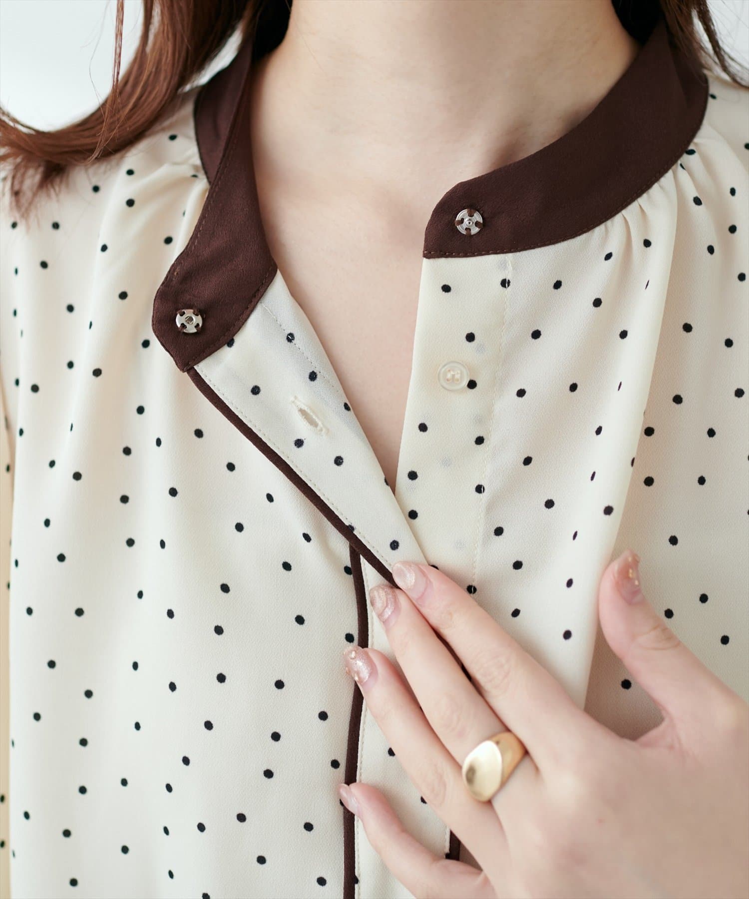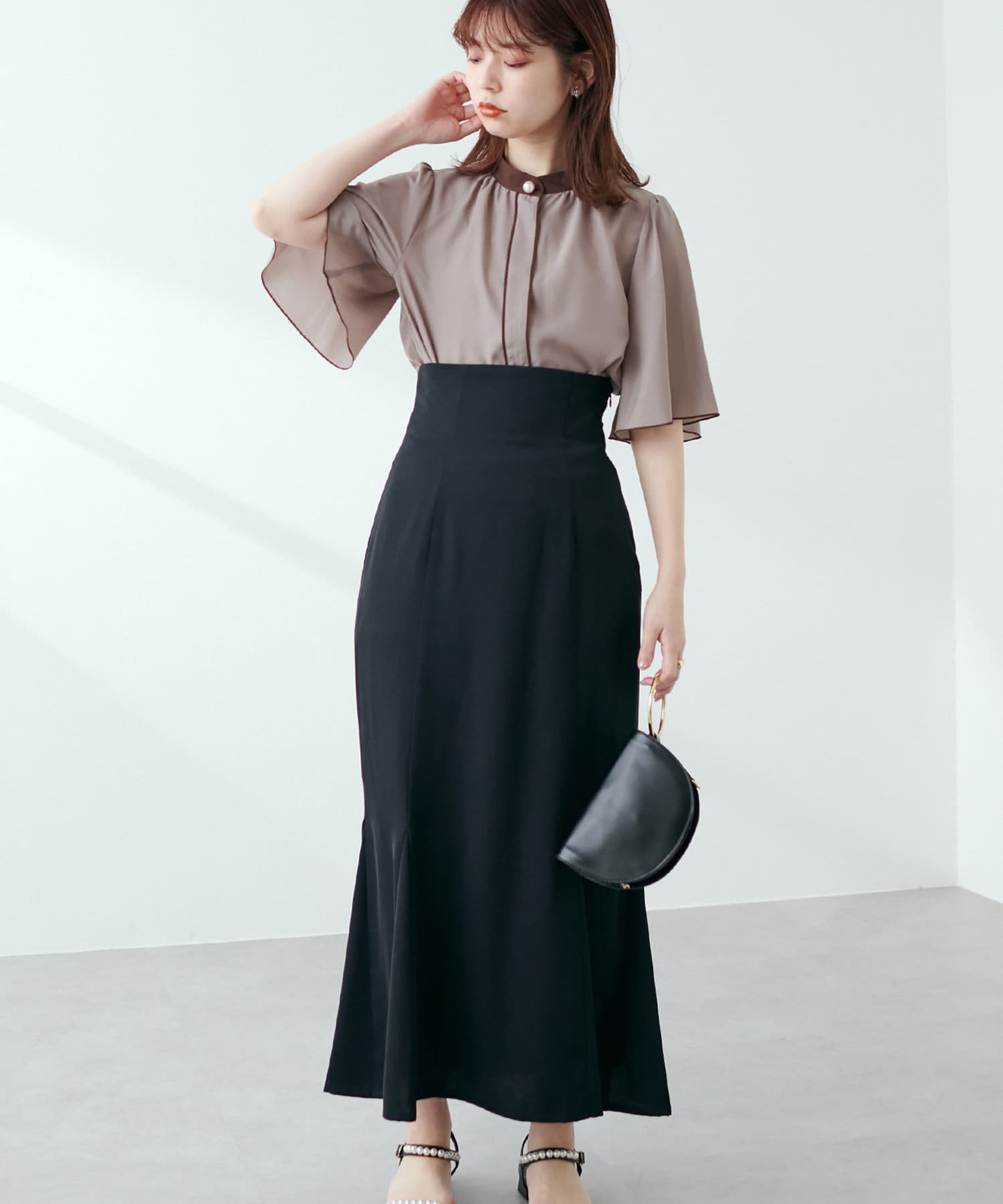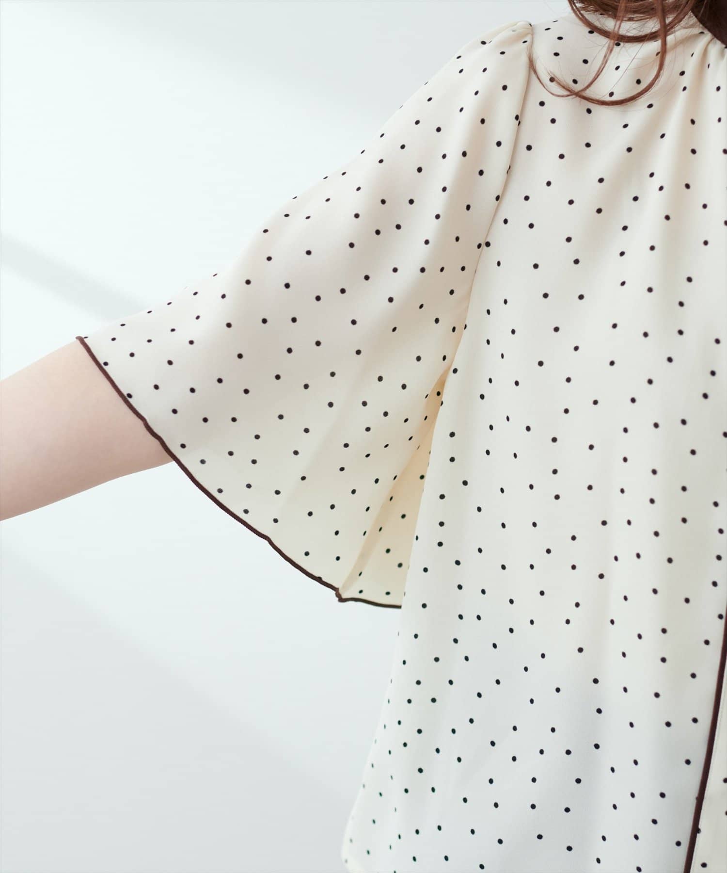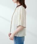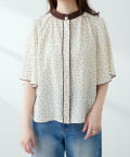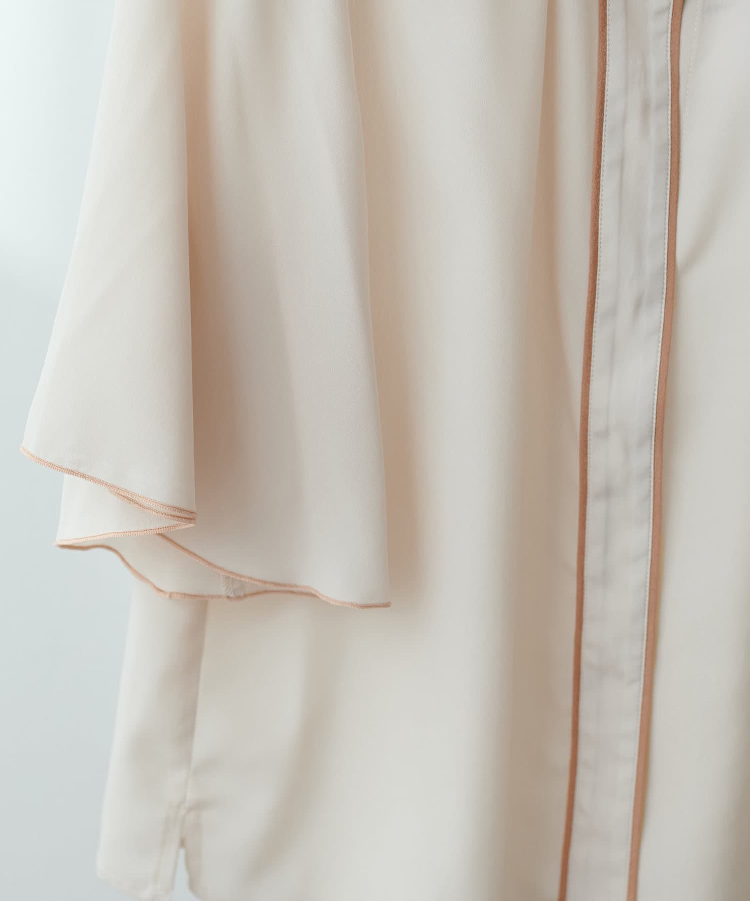 ■Series 351310360 パール釦ポイントバイカラーフレア5分袖ブラウス