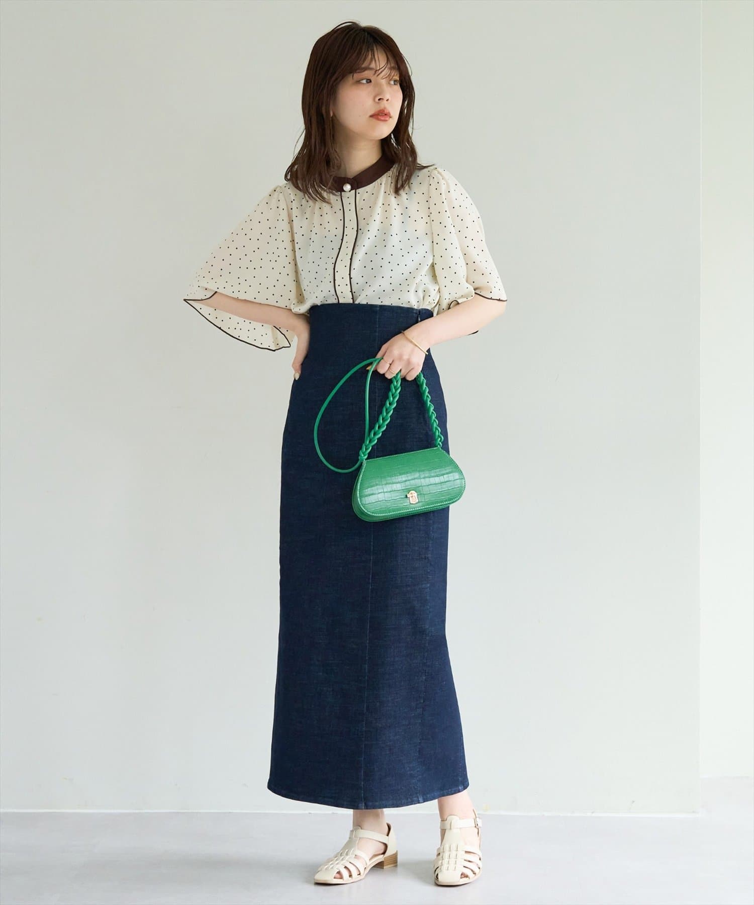 アクセントで添えたエレガントな大人の雰囲気のブラウス。
