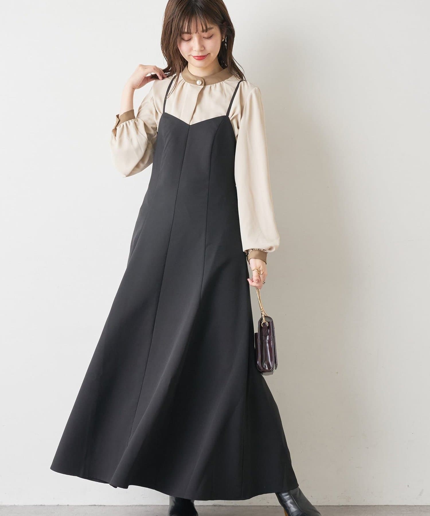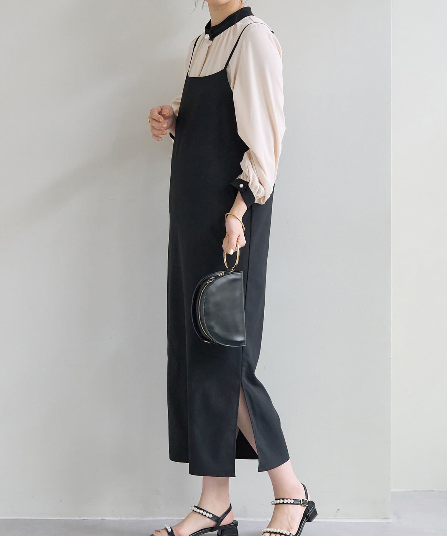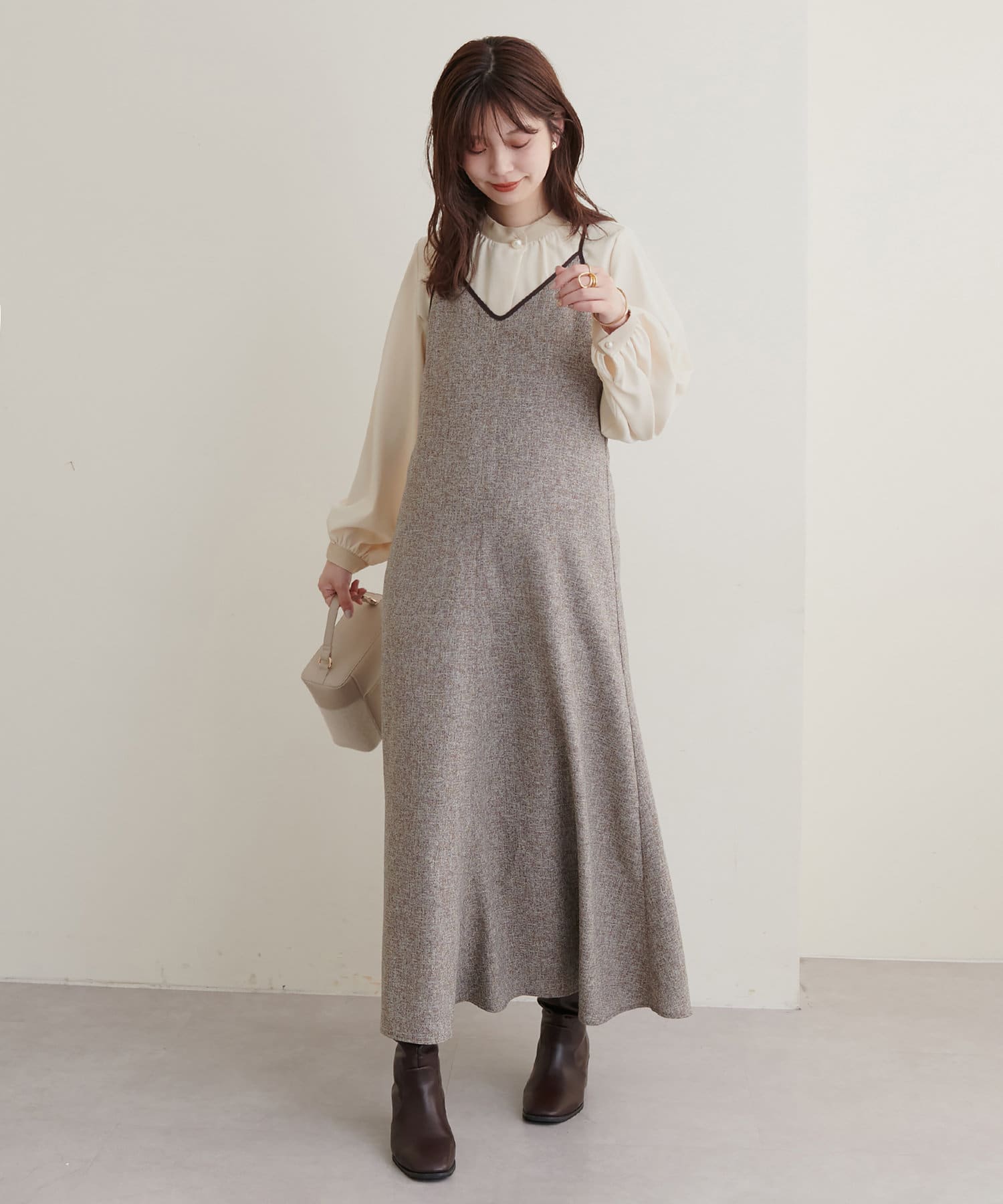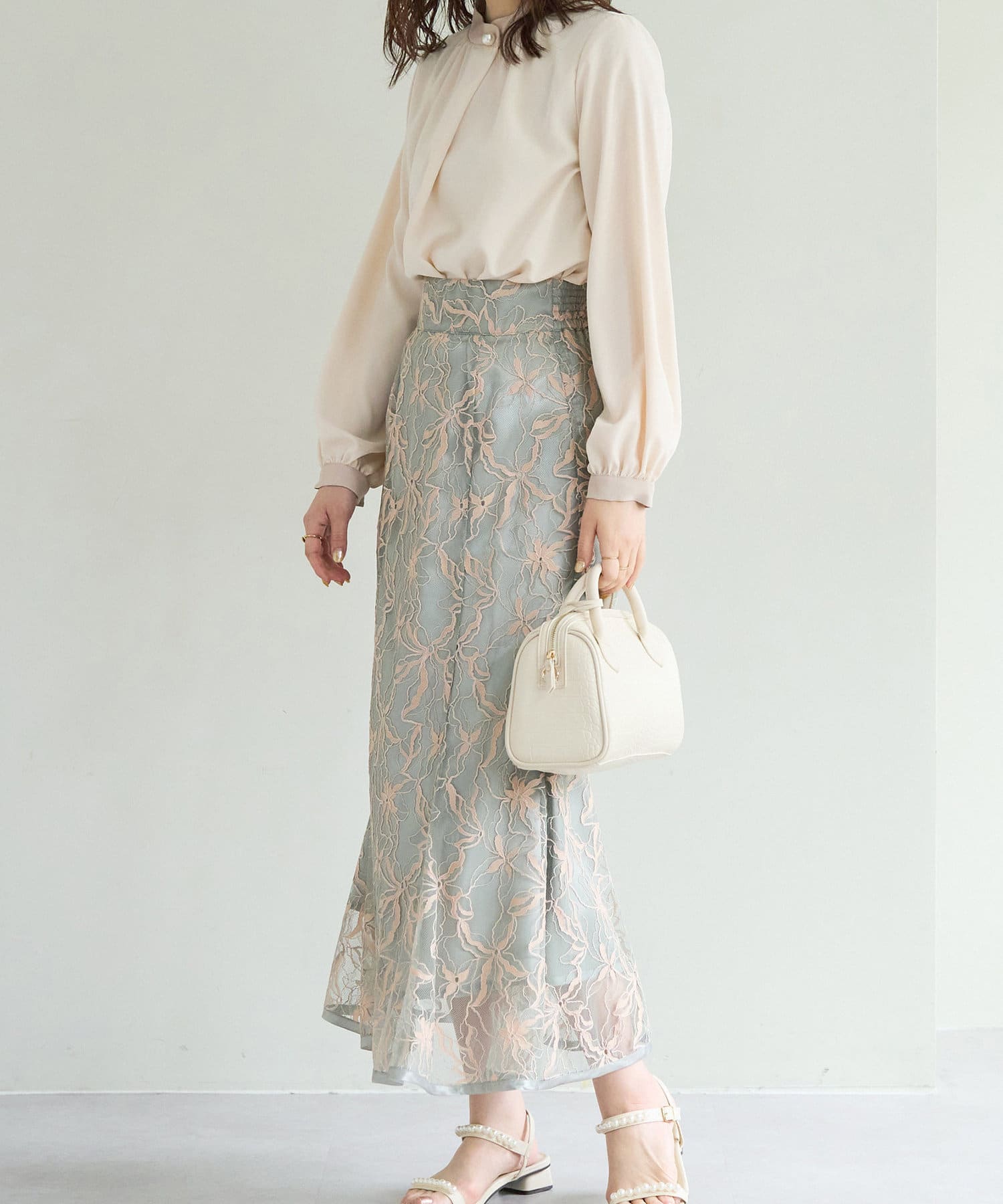 ジャンスカに合わせるブラウスを探してて、春にピッタリでカーデガンと合わせて着ようと思います。首元にパールがついているので華やかになりネックレスいらずです。