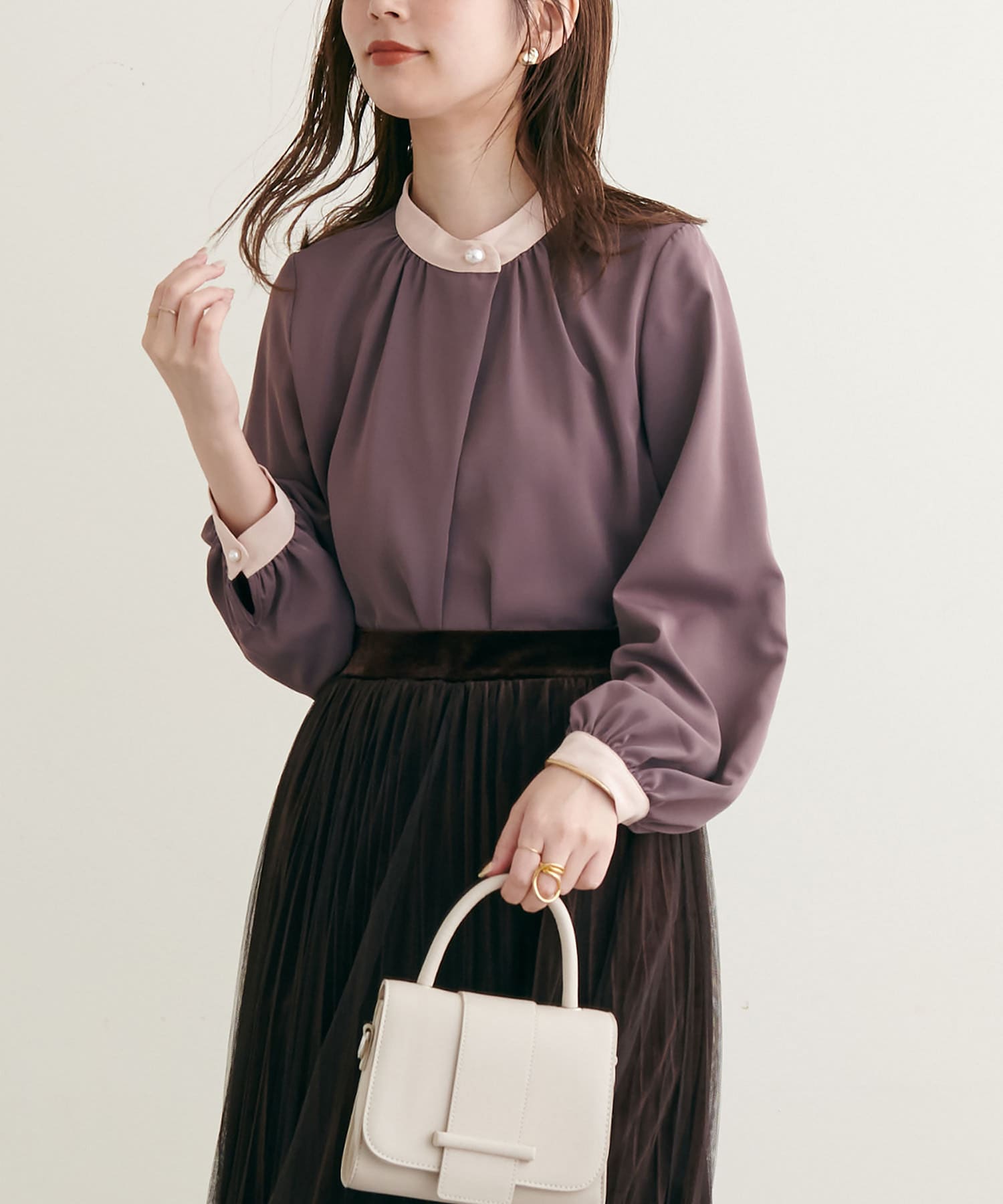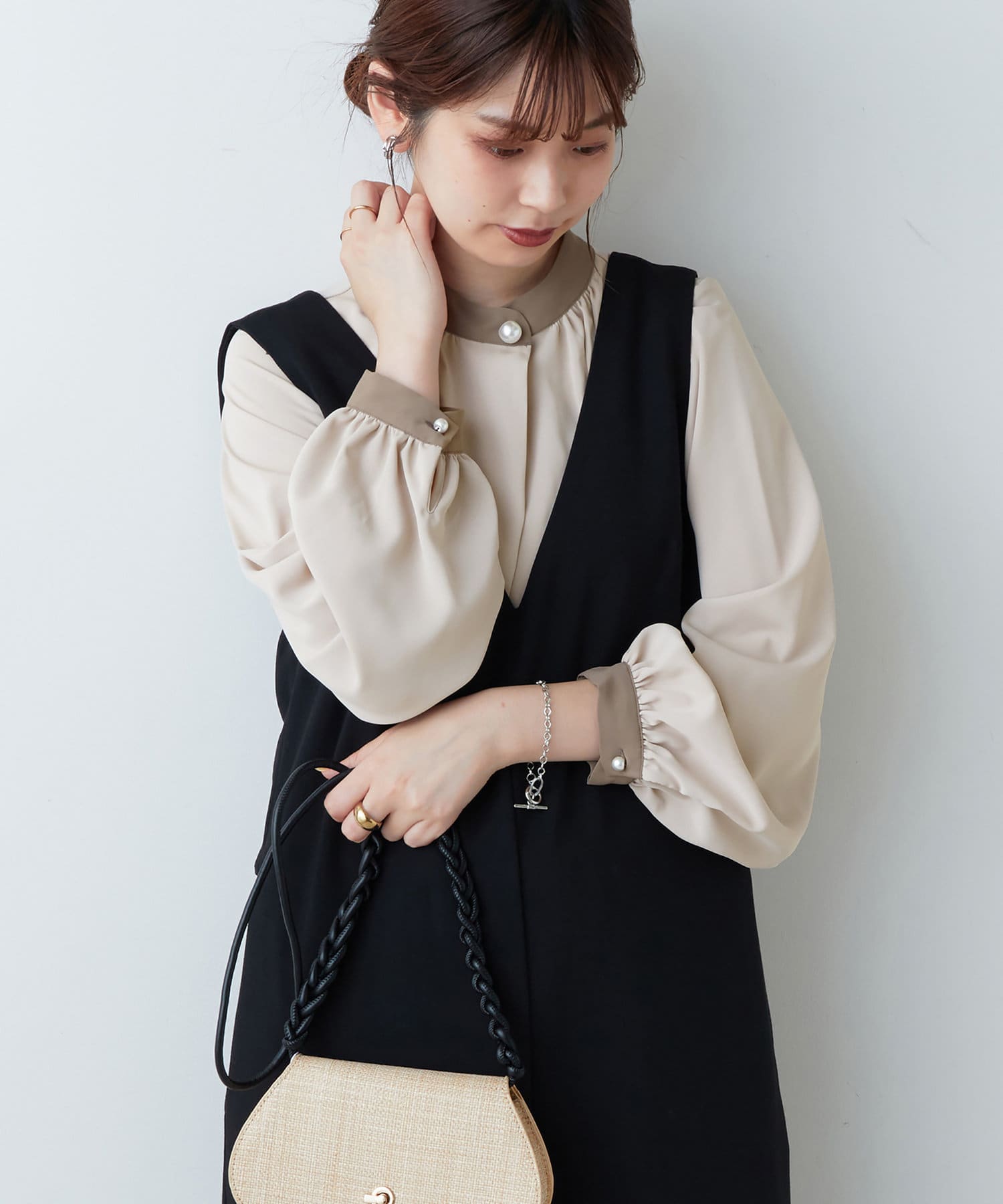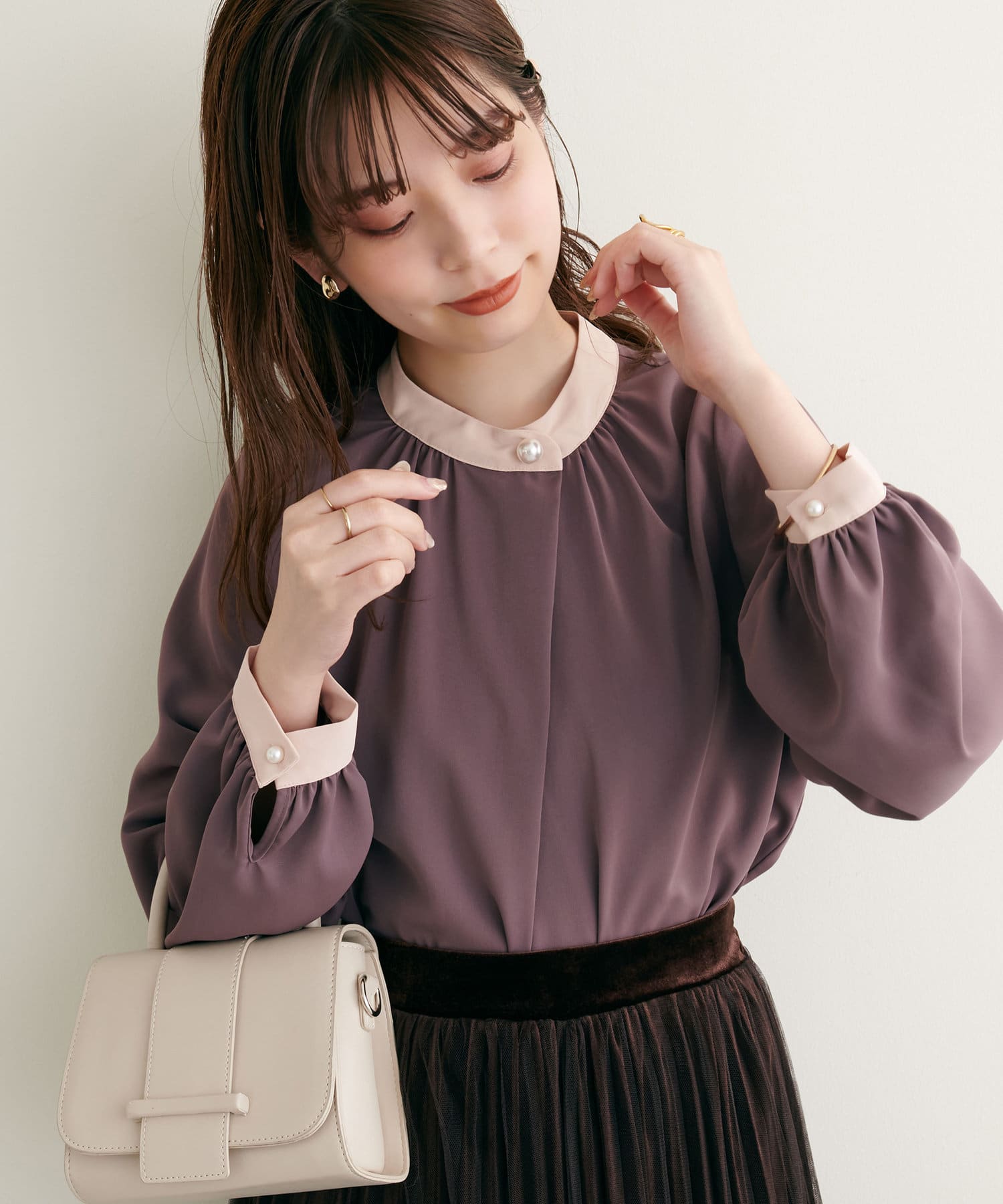 • natural couture(ナチュラルクチュール) 大好評!リバイバルアイテム/プチプラパールポイントバイカラーブラウス