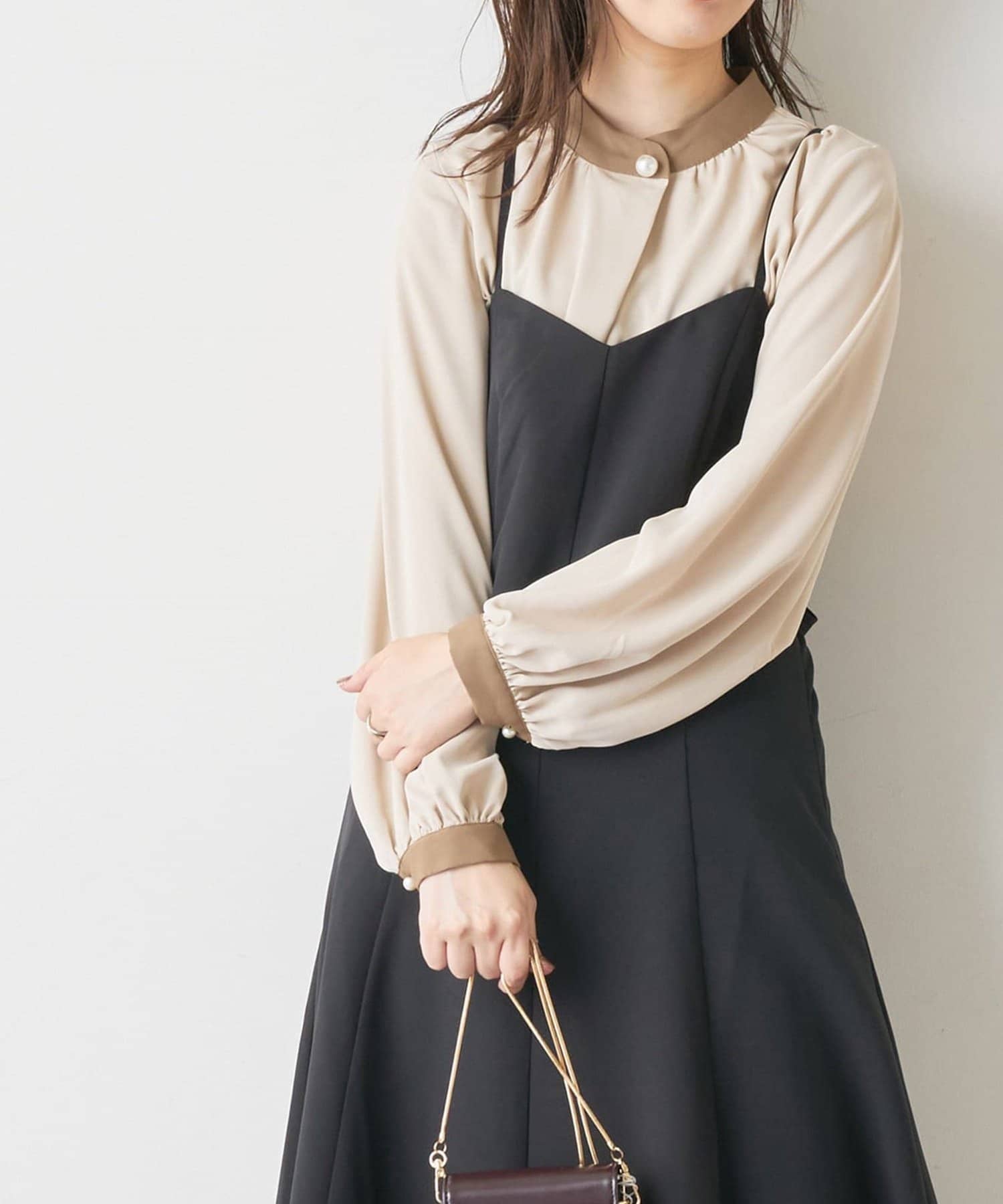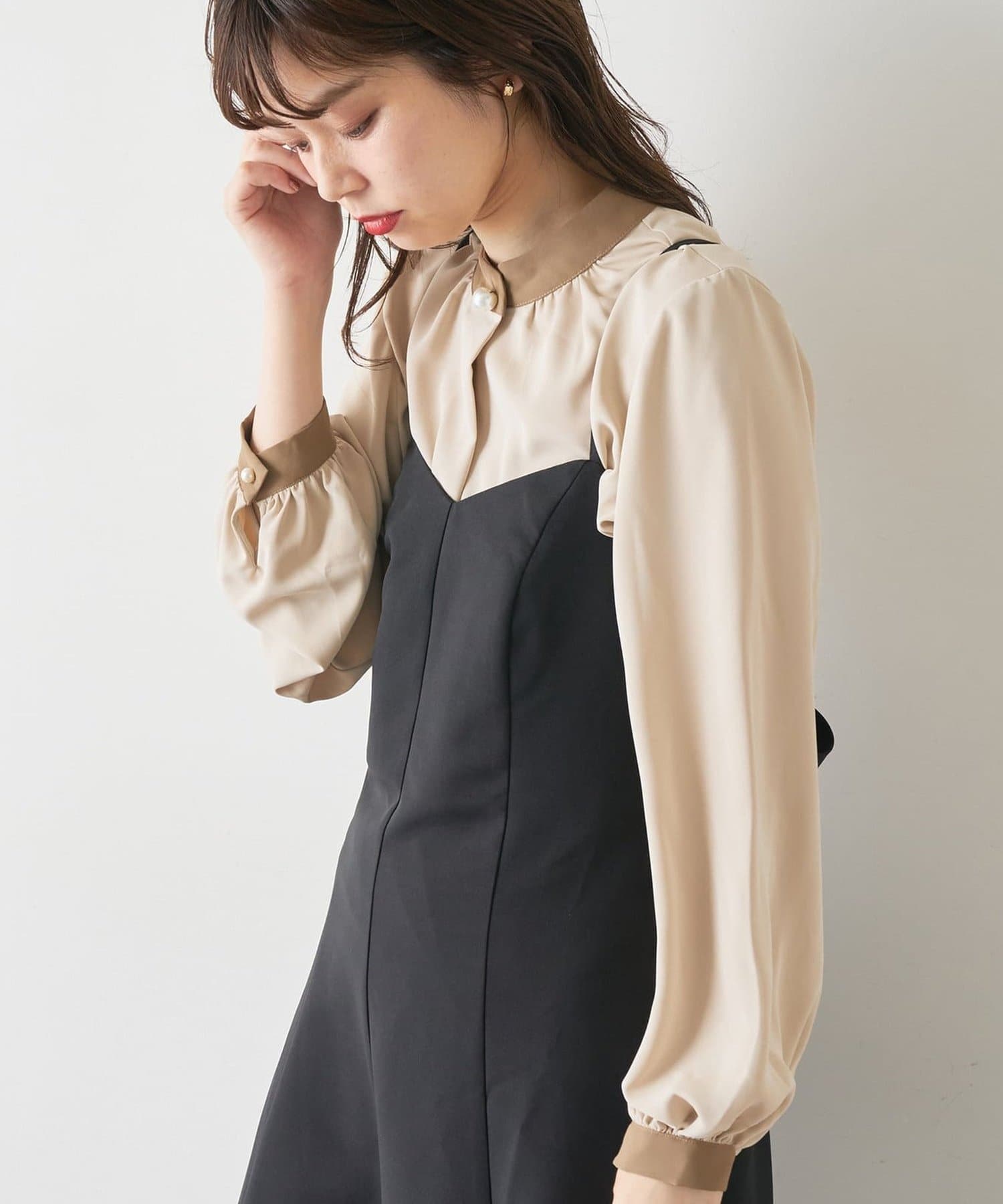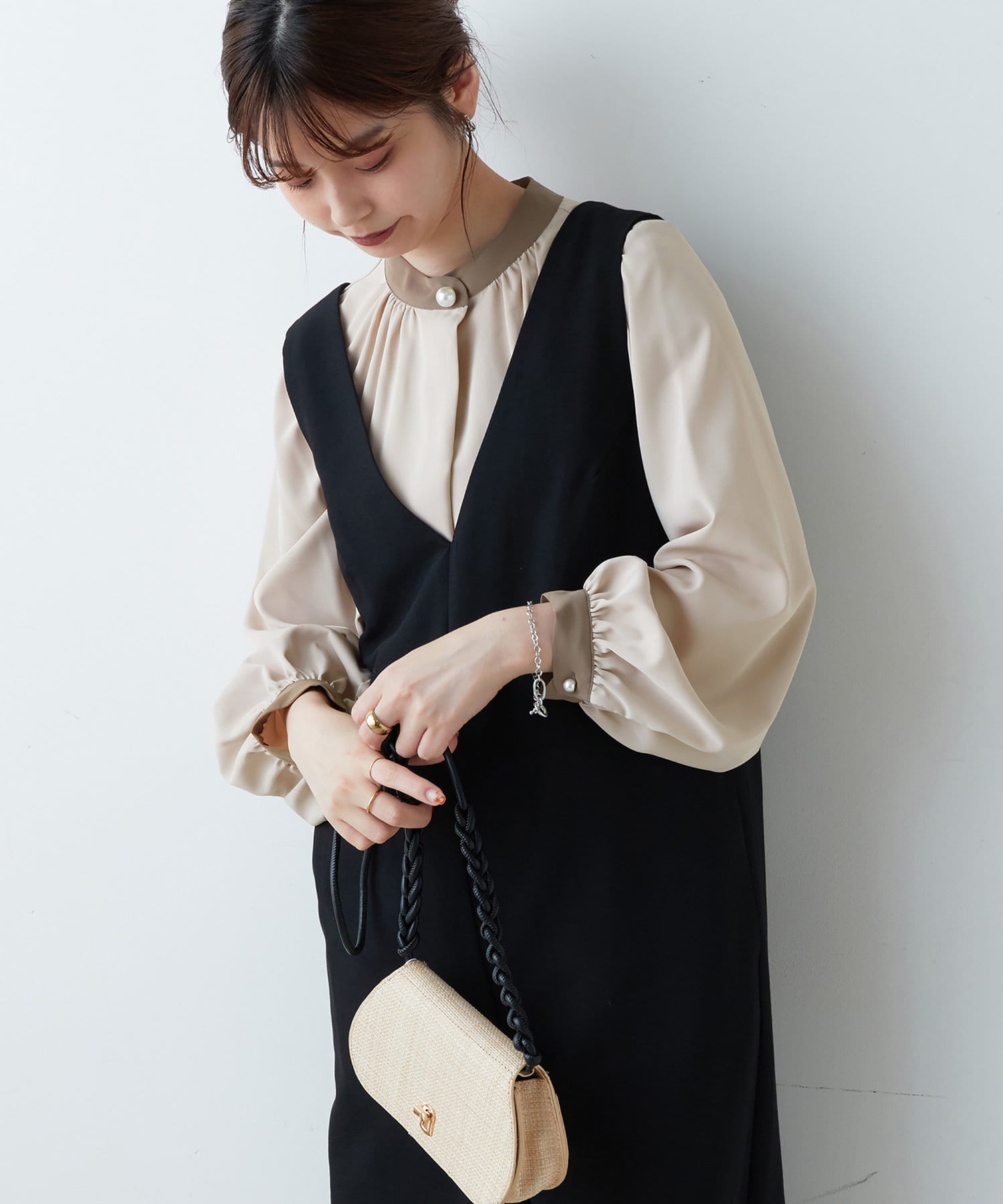 • natural couture(ナチュラルクチュール) 大好評!リバイバルアイテム/プチプラパールポイントバイカラーブラウス