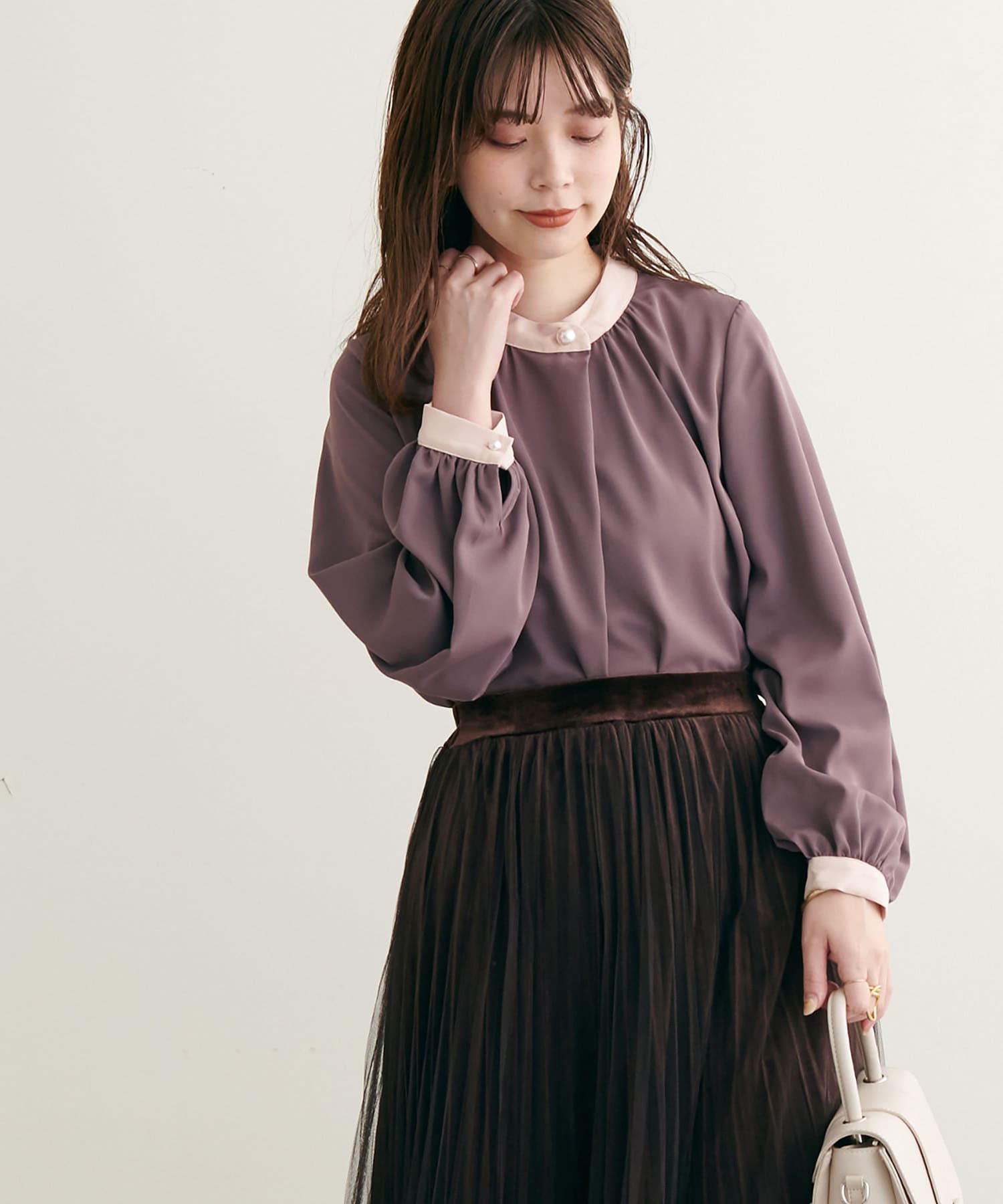 natural couture(ナチュラルクチュール) 大好評!リバイバルアイテム/プチプラパールポイントバイカラーブラウス