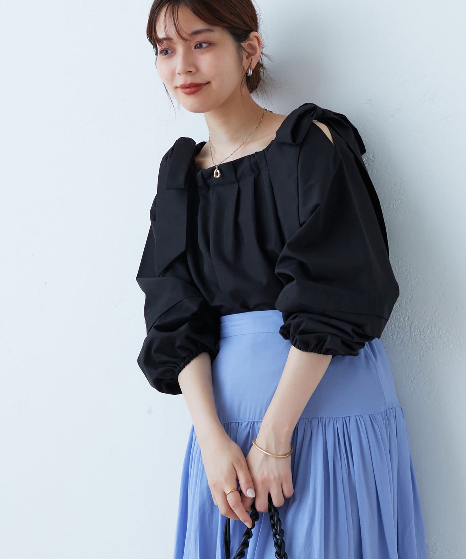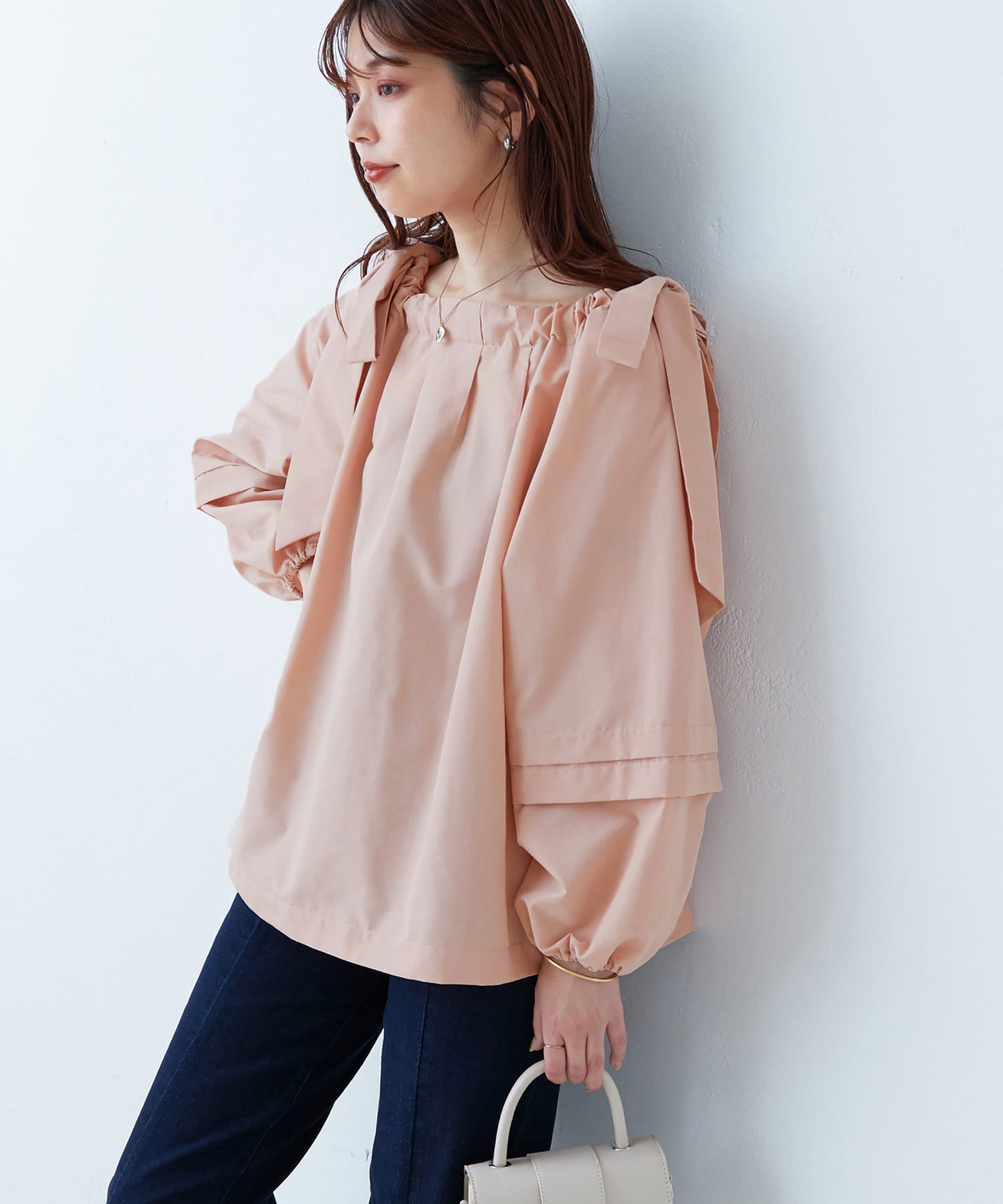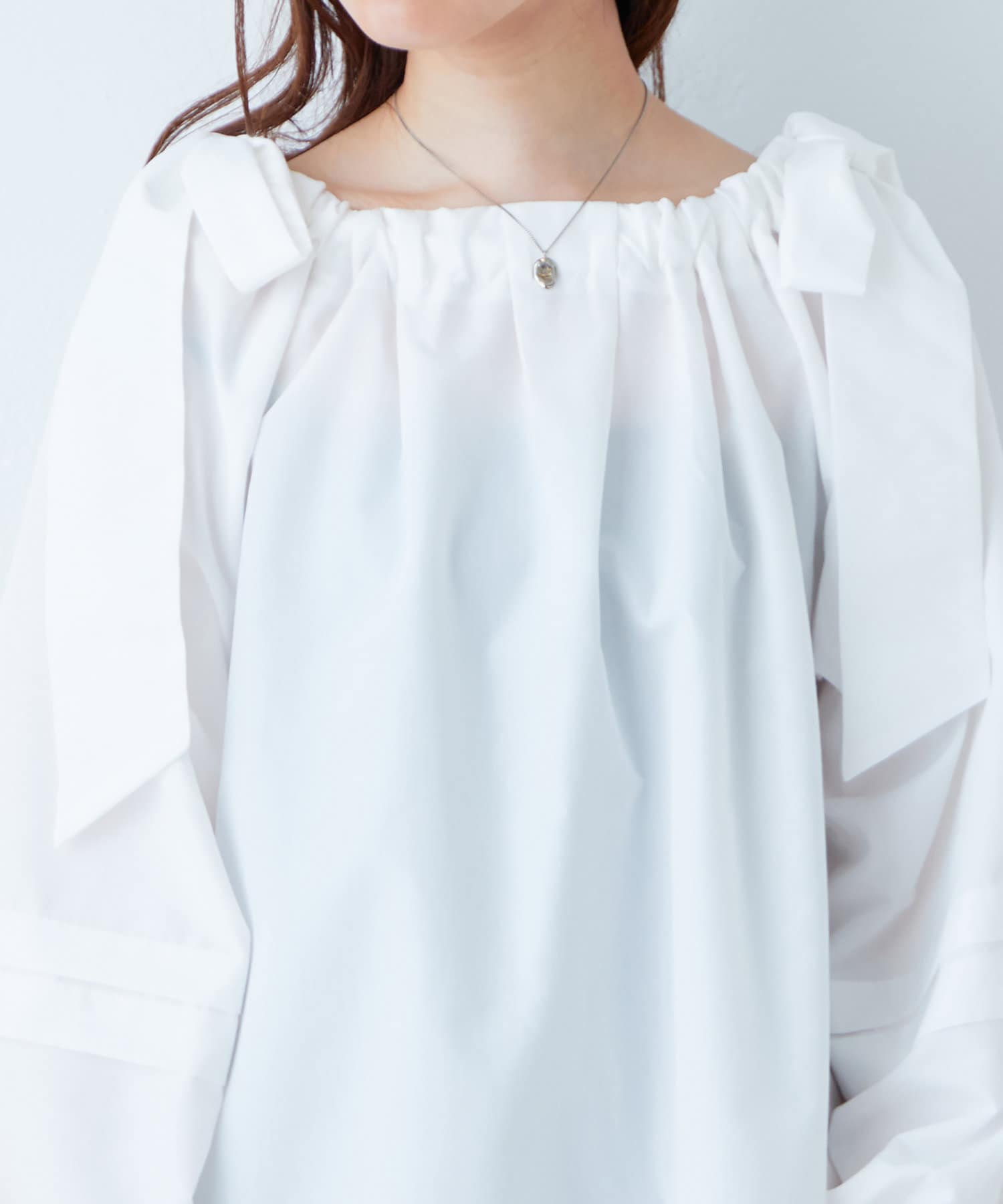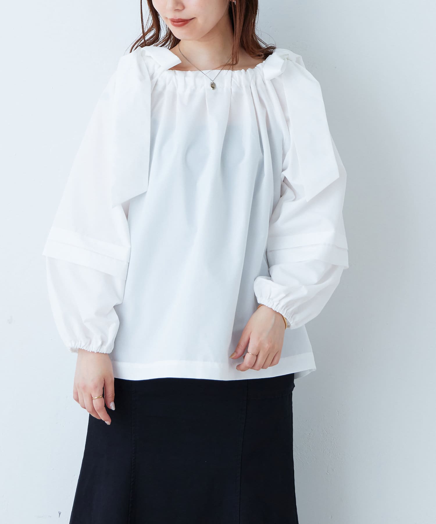 2022AWアイテム/WEB限定カラーあり/ビッグリボンボリュームタックブラウス