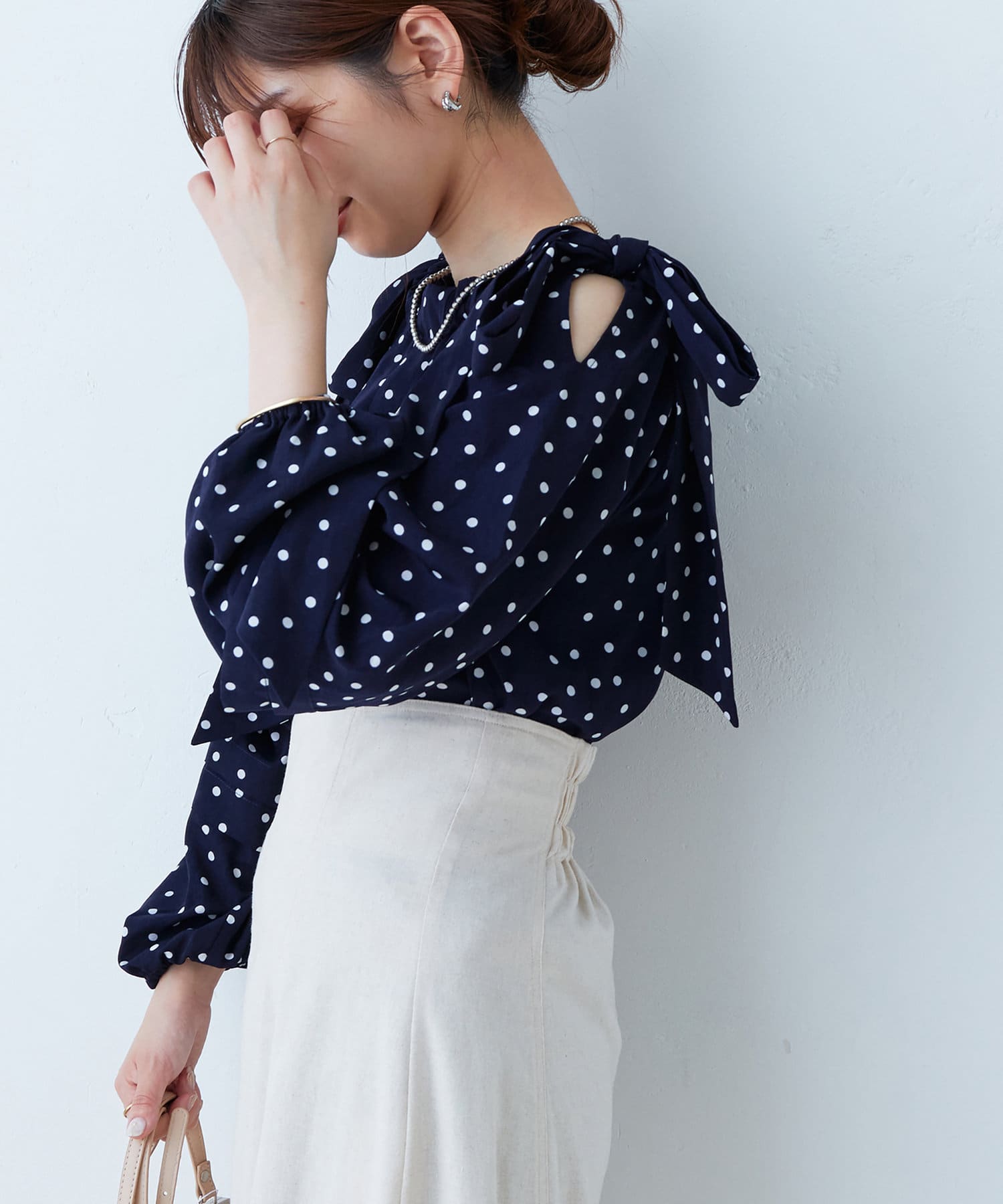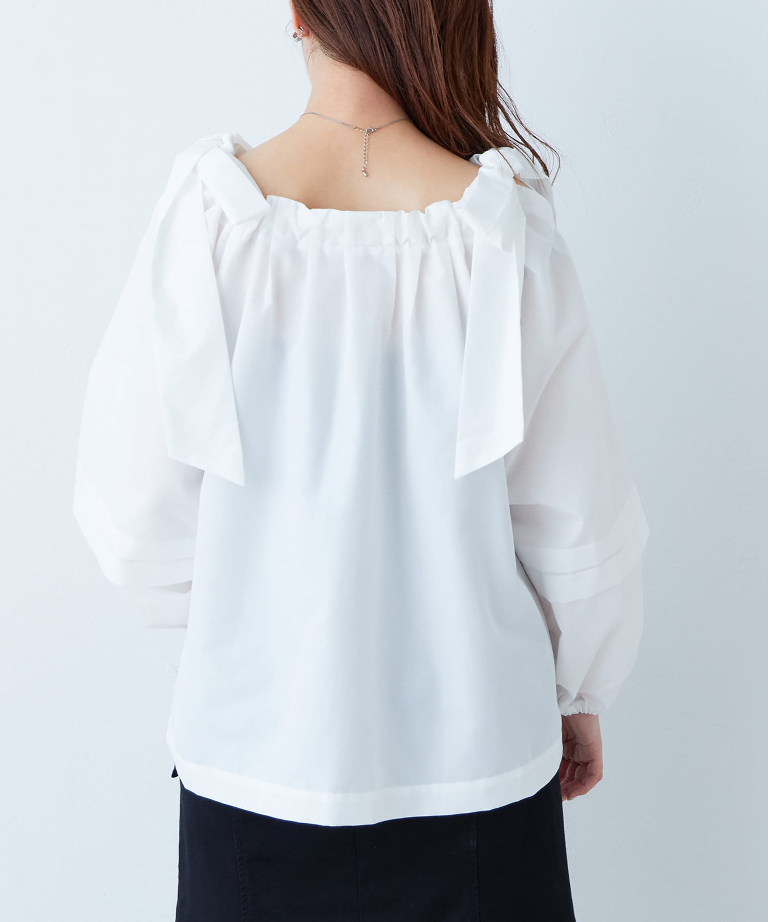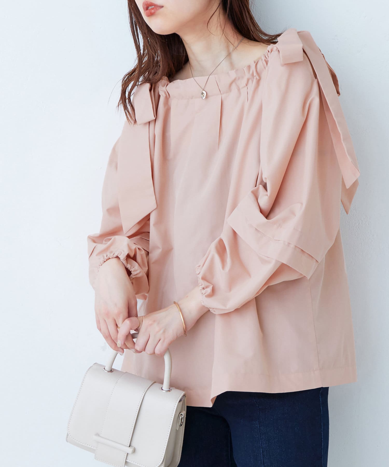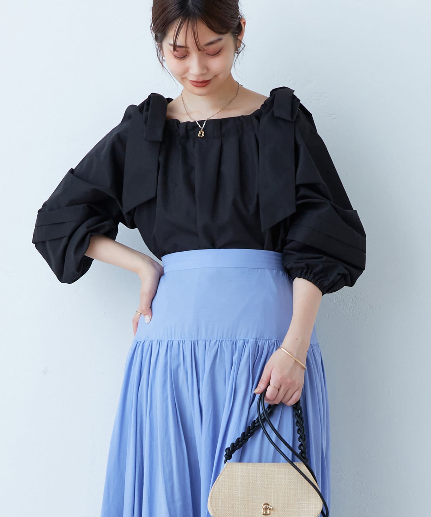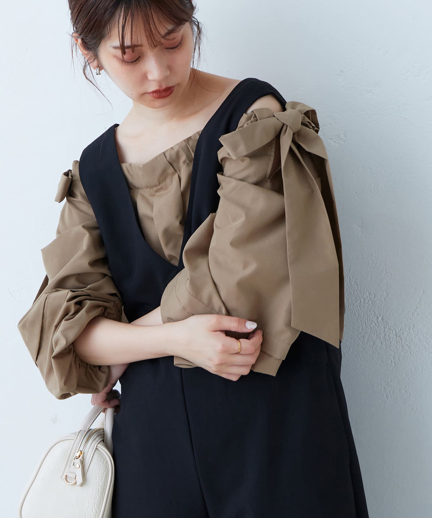 2022AWアイテム/WEB限定カラーあり/ビッグリボンボリュームタックブラウス