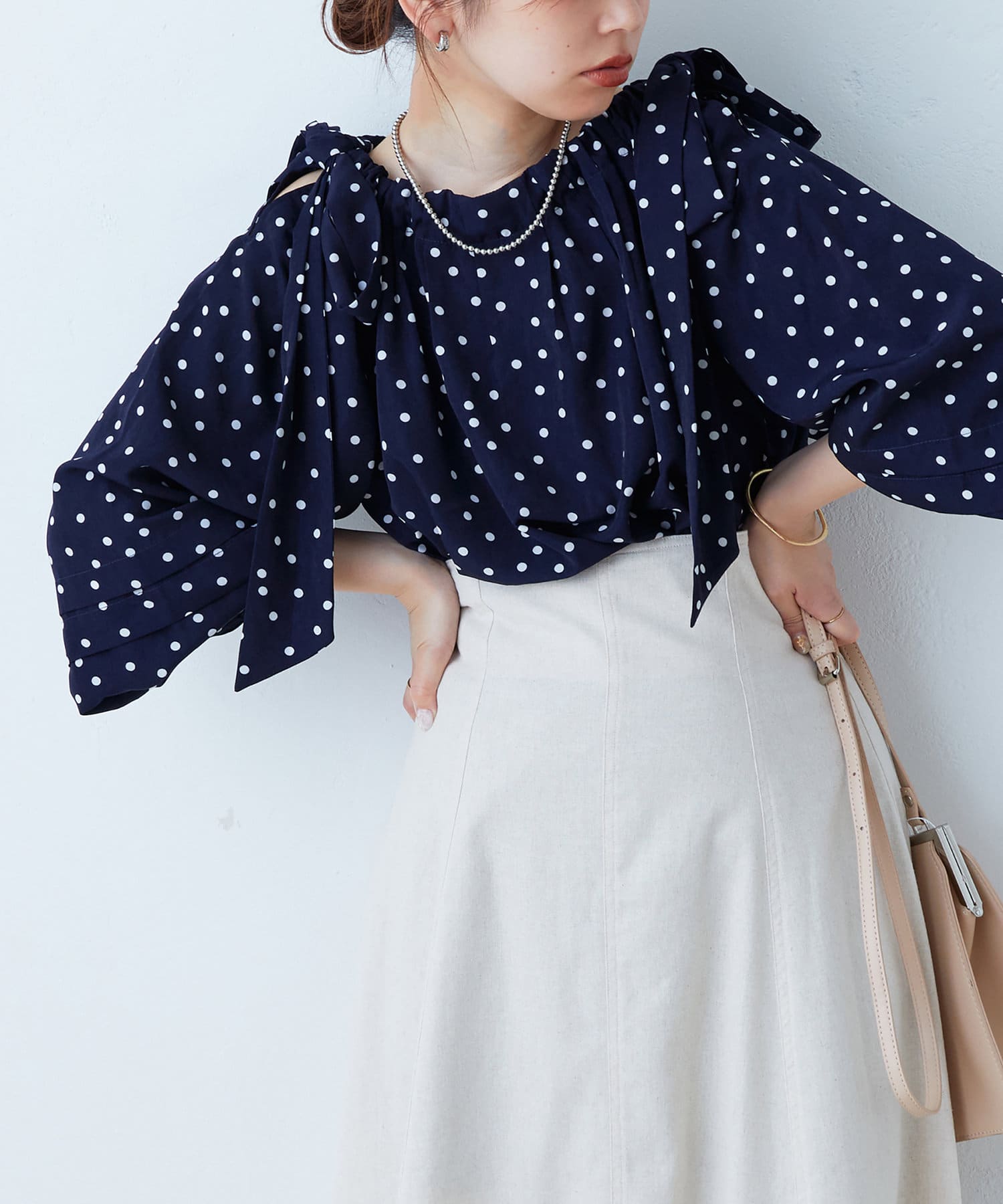 ショルダー部分がゴムになっているので、オフショルとしても着ていただけます。