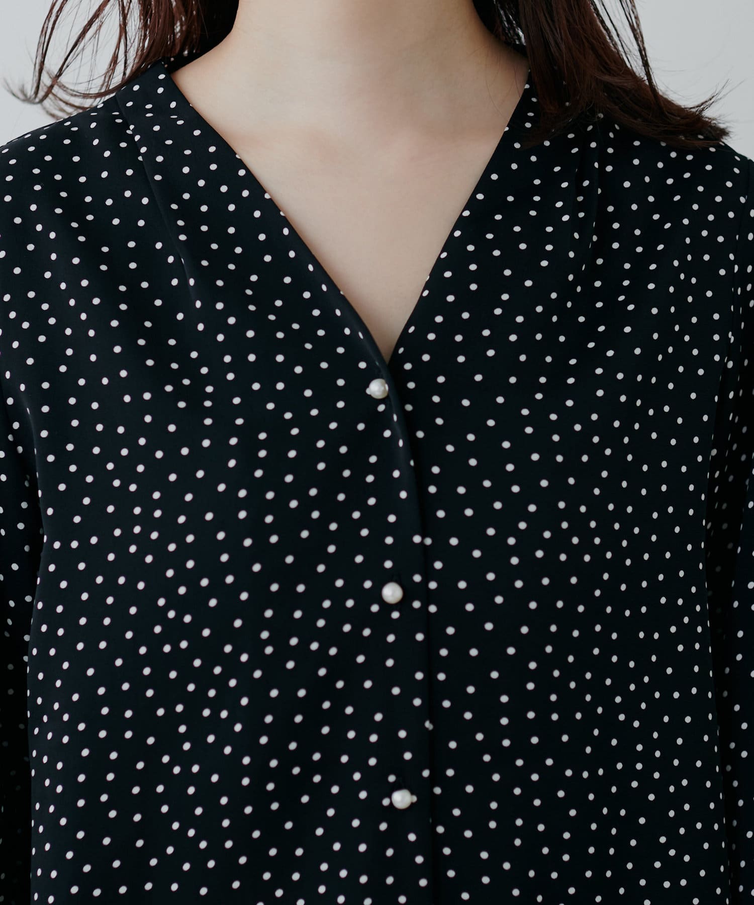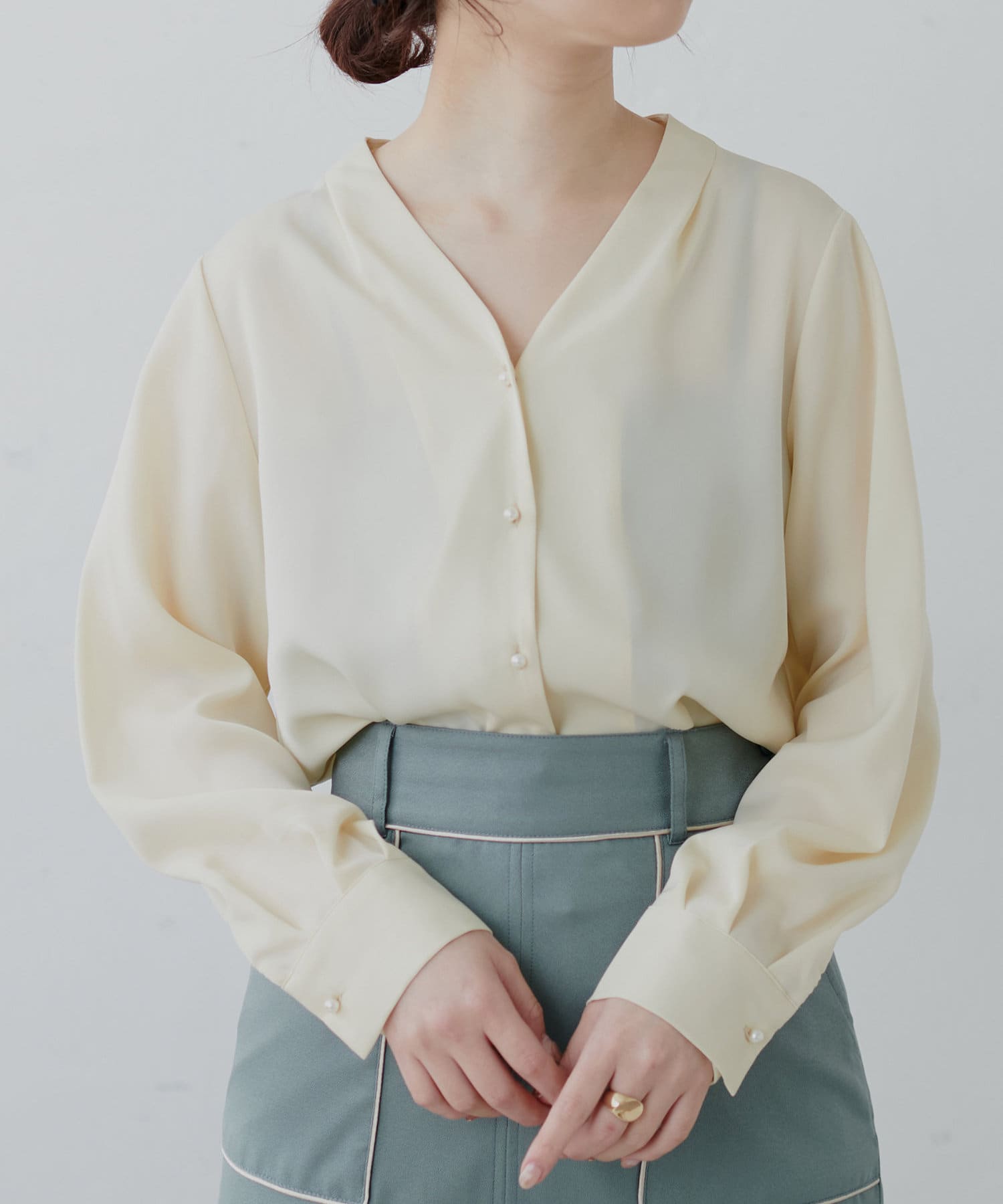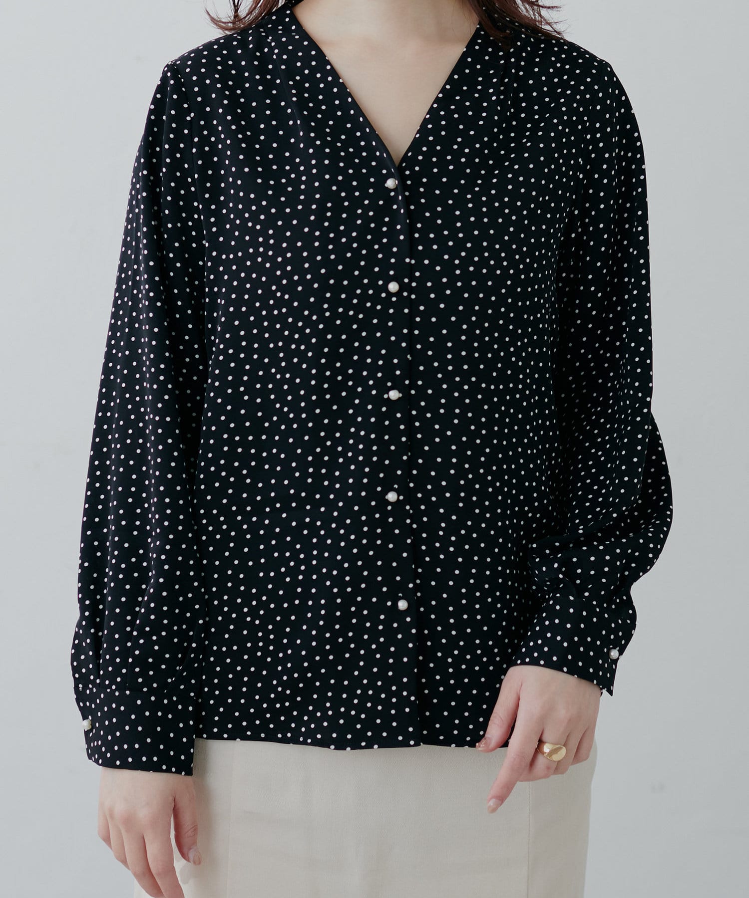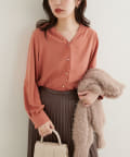 プチプラちびパール釦とろみブラウス