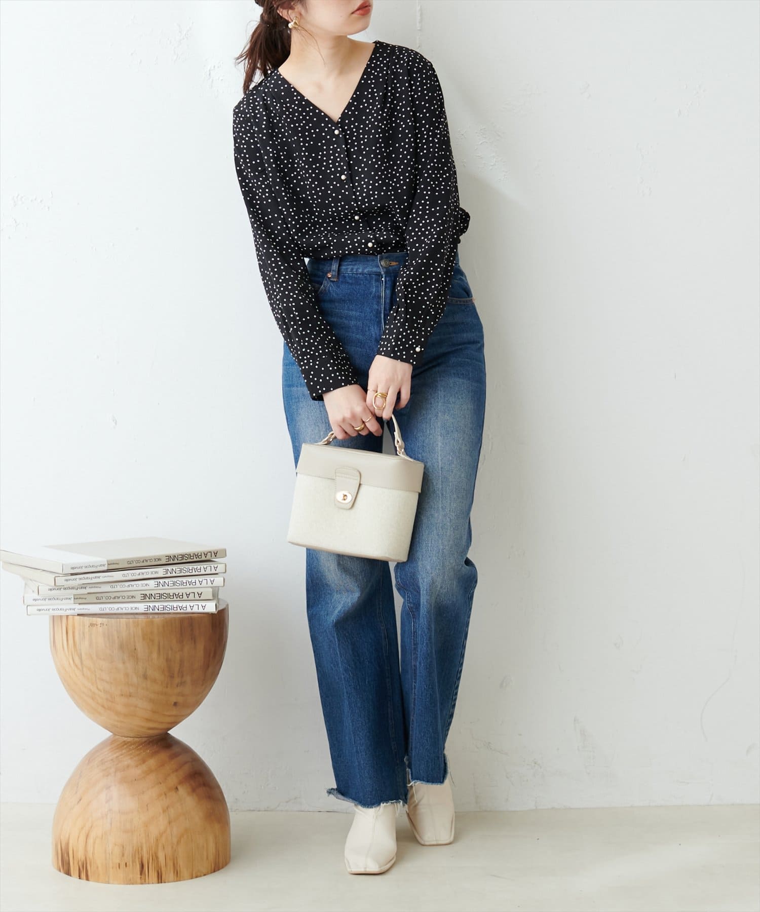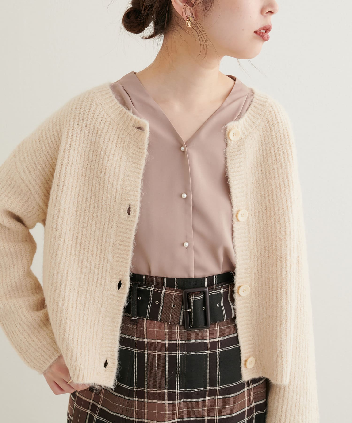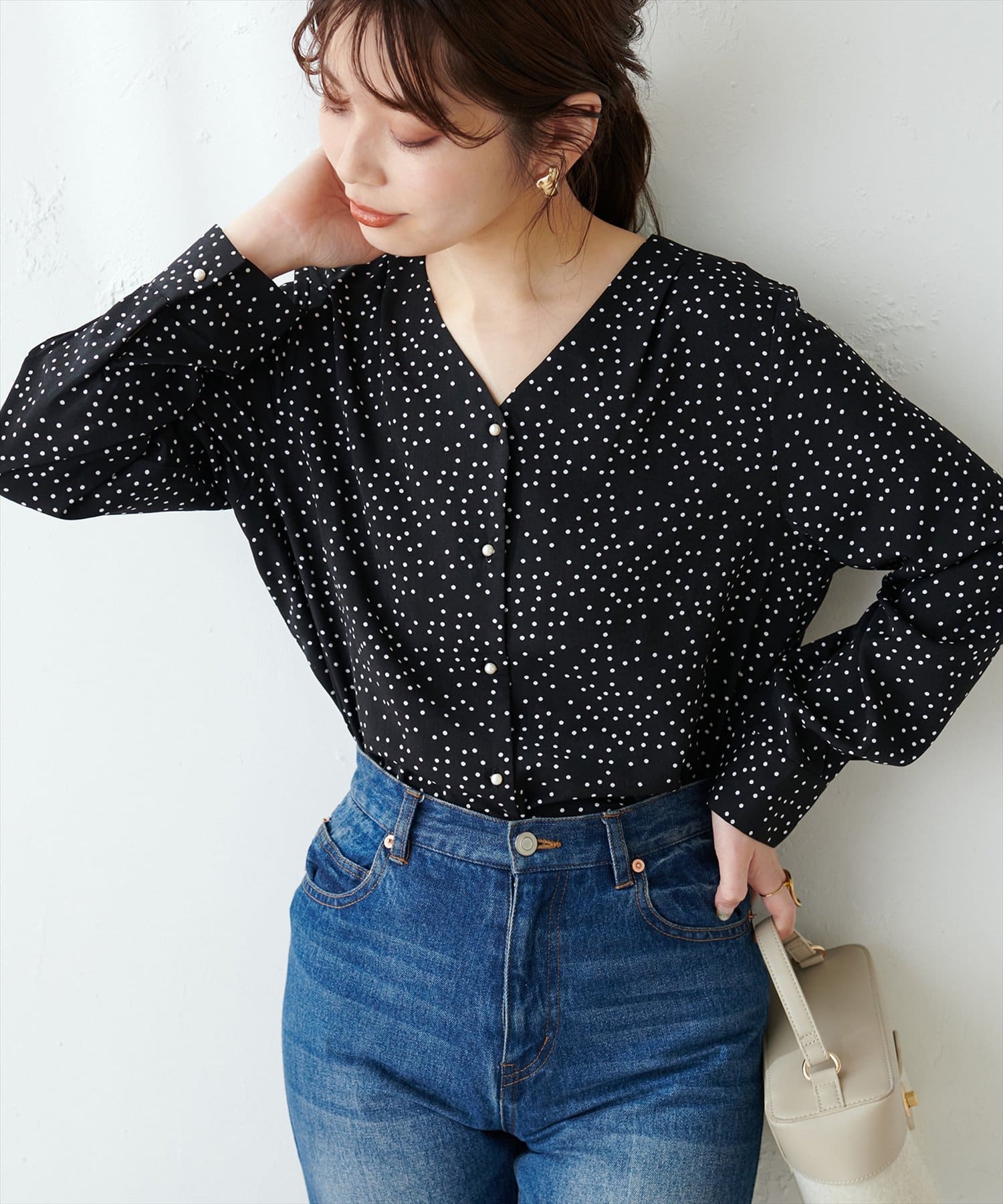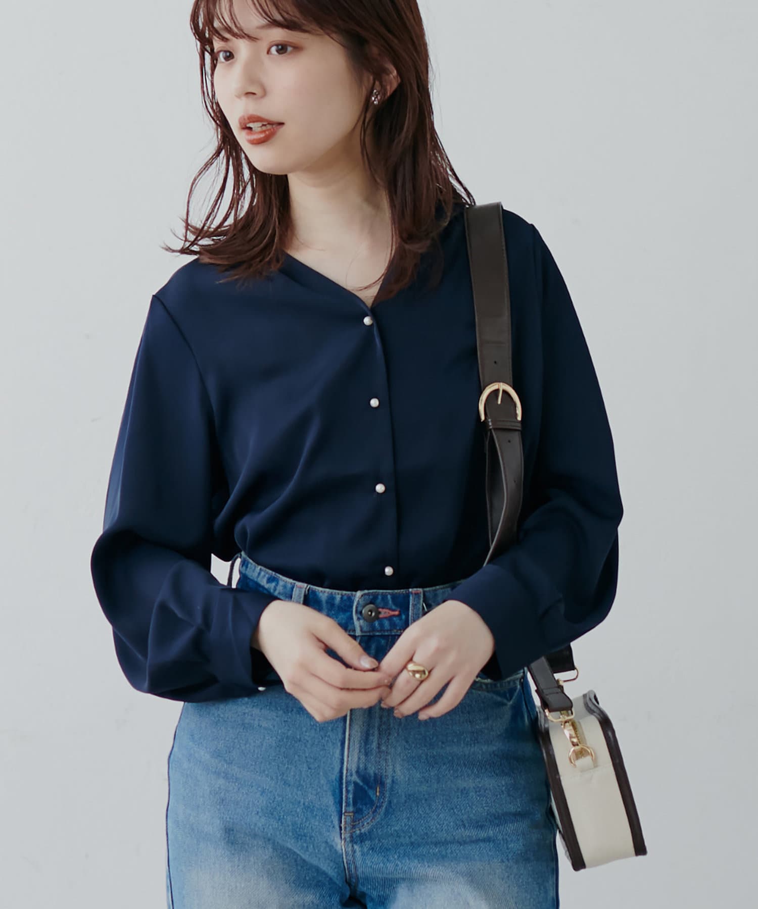 プチプラちびパール釦とろみブラウス