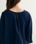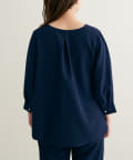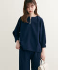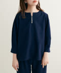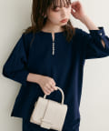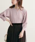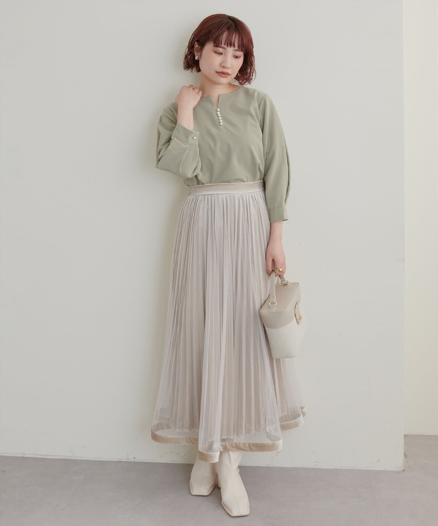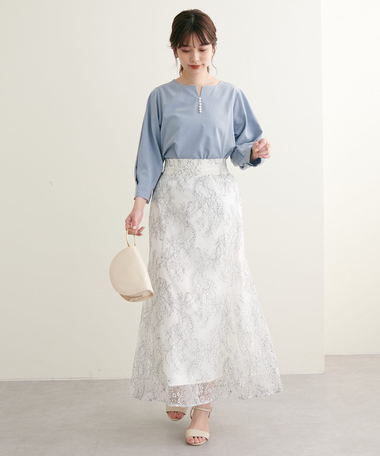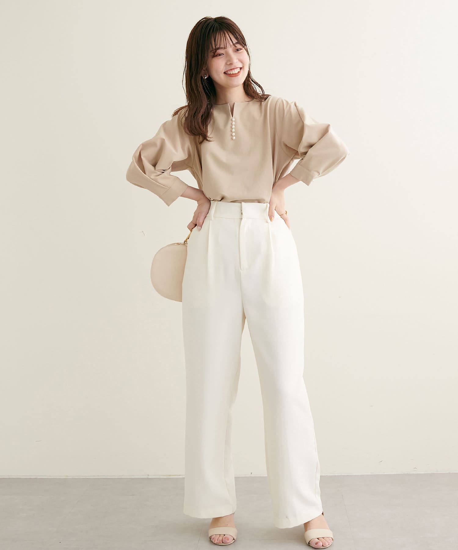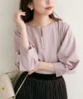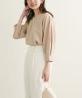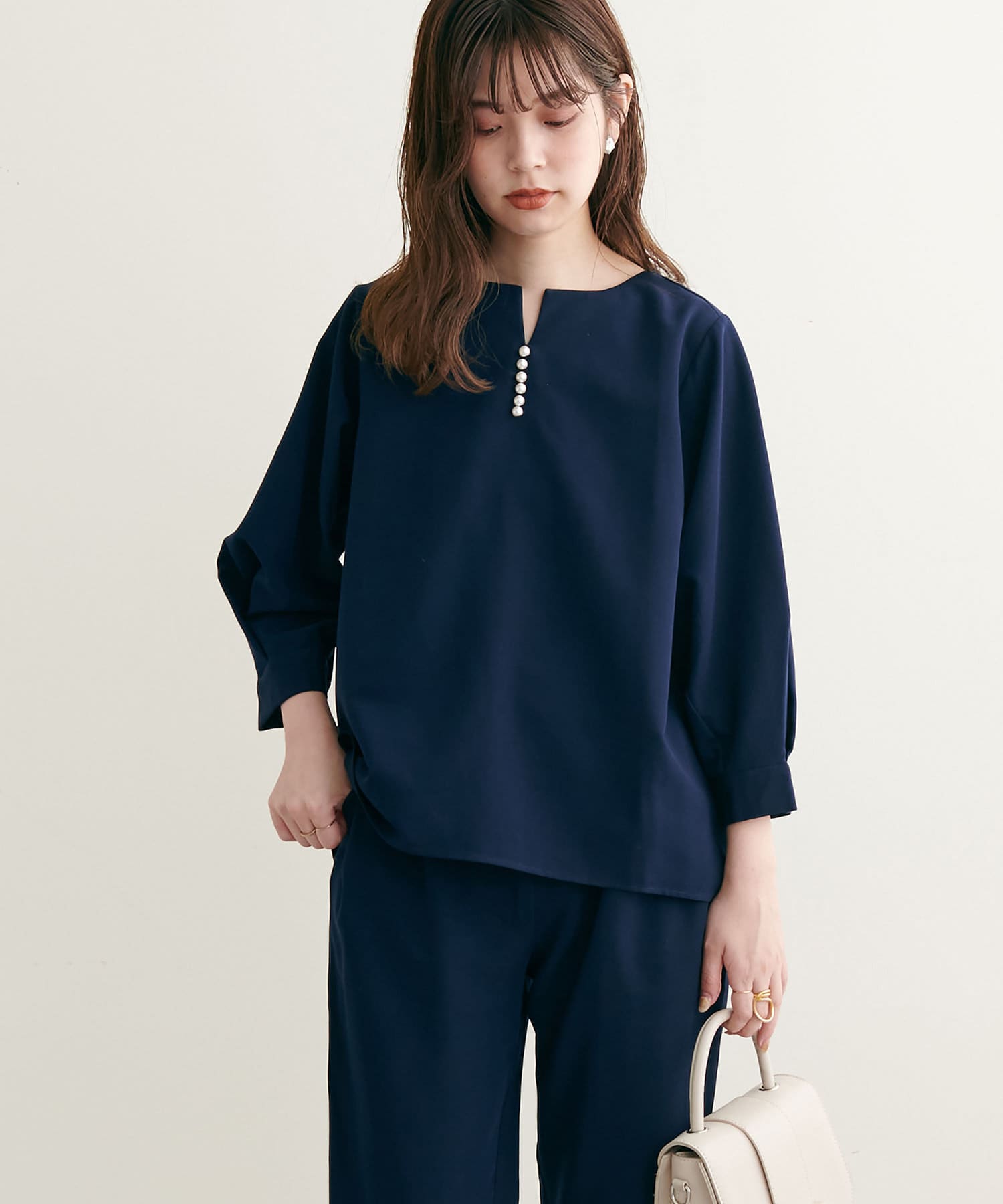 ネックラインをすっきりと見せてくれる程良いスキッパーデザインに、パールを施した大人上品なブラウス。