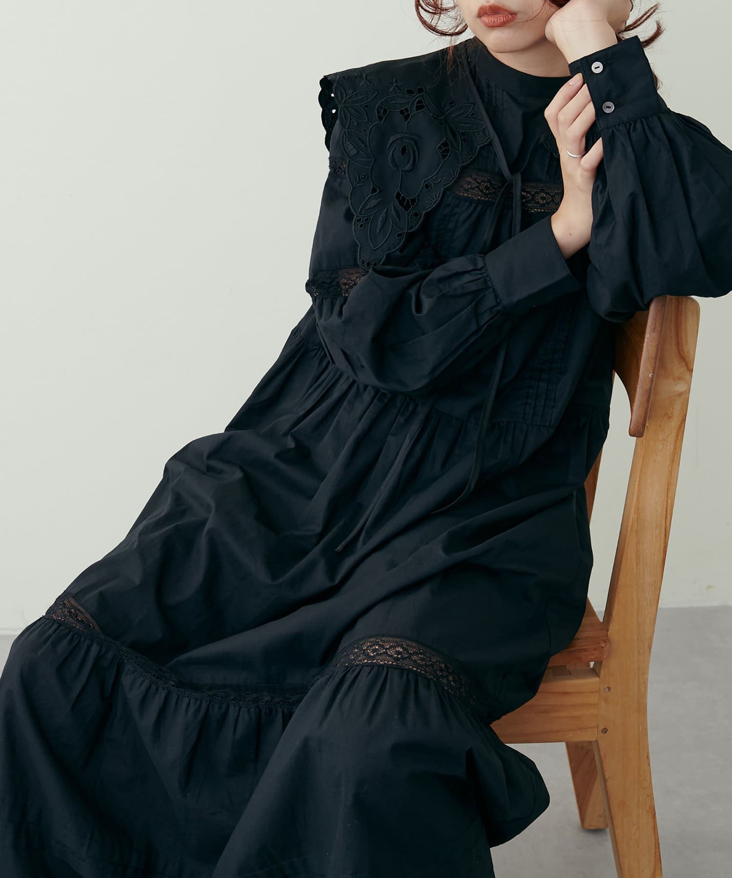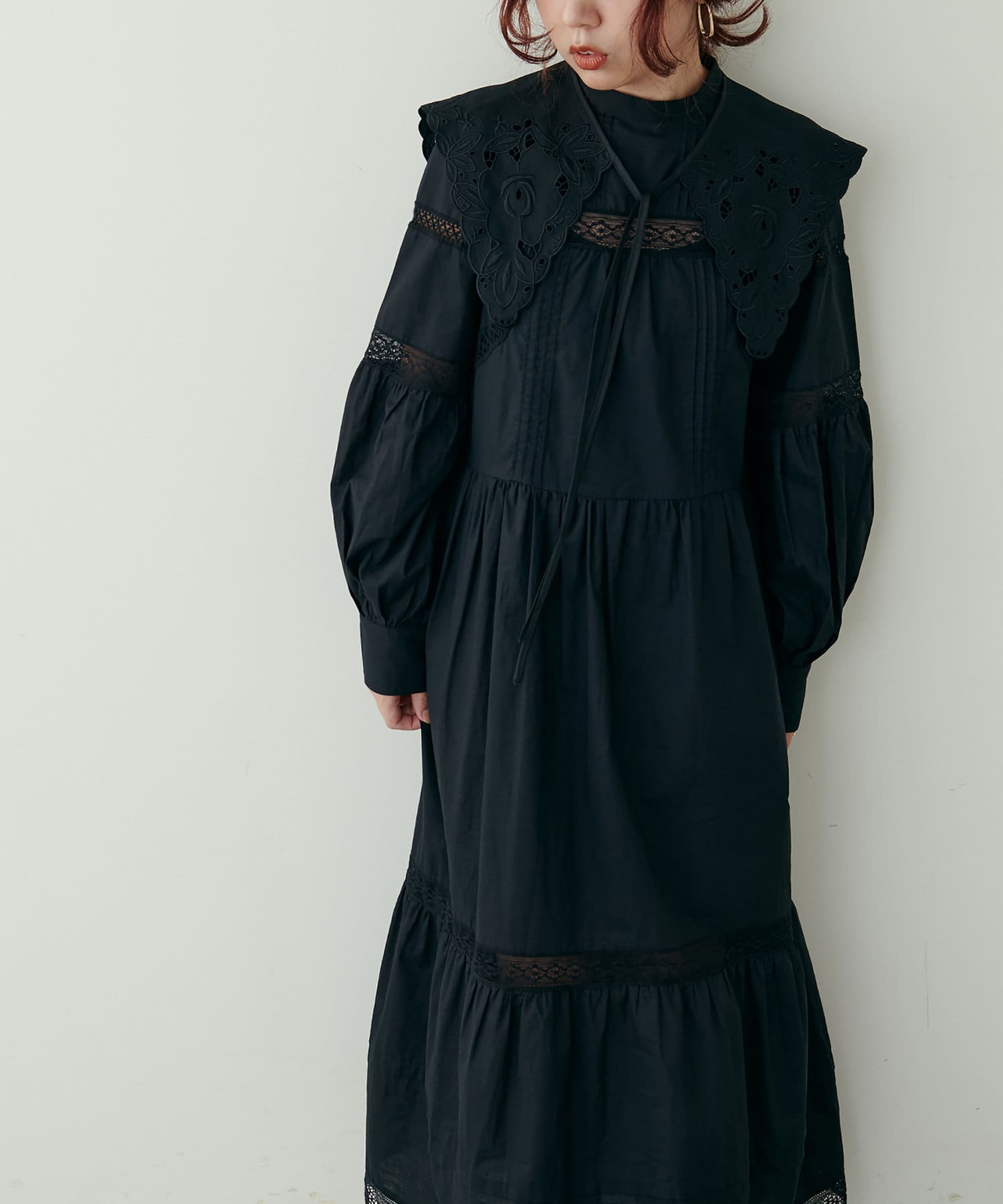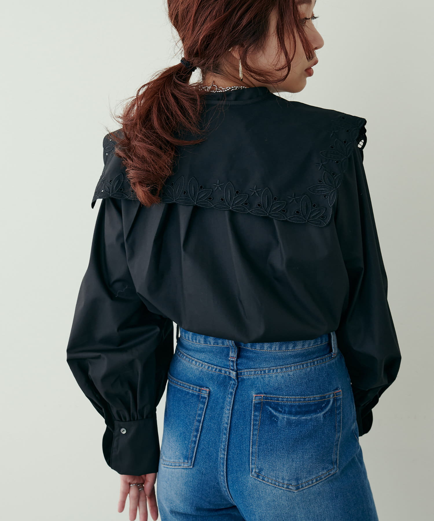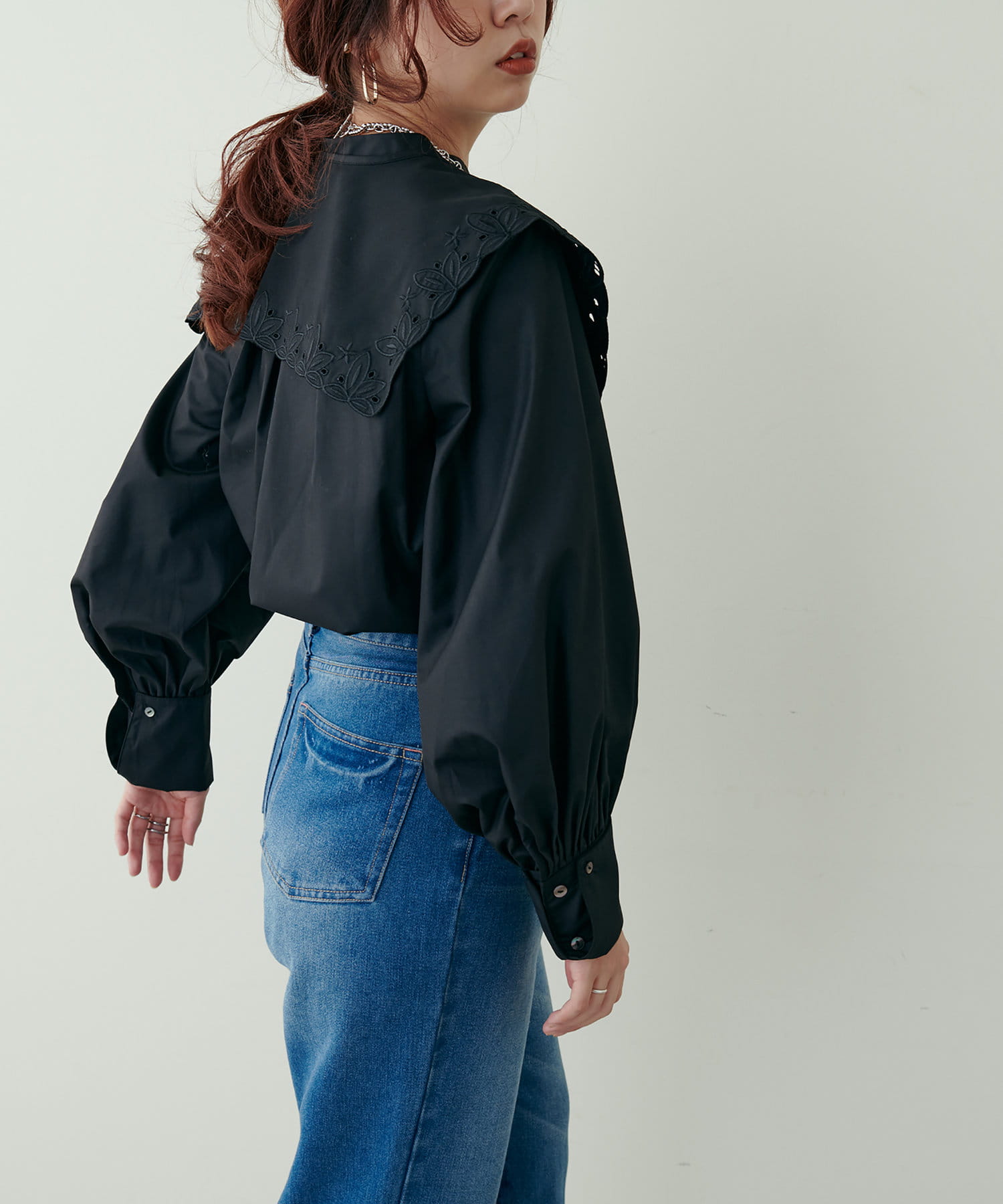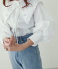 大人ナチュ/レース衿付き大人のボリューム袖ブラウス