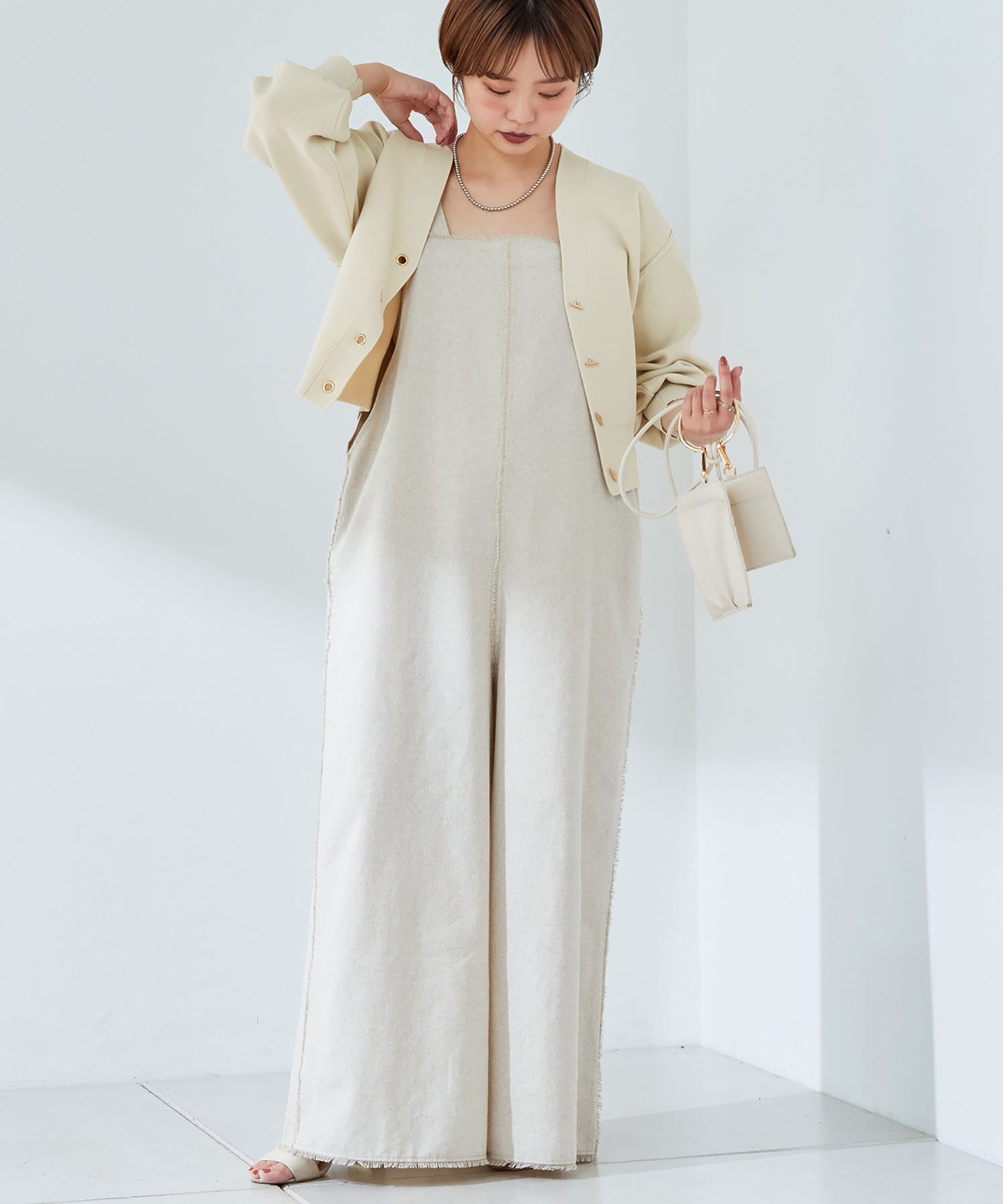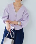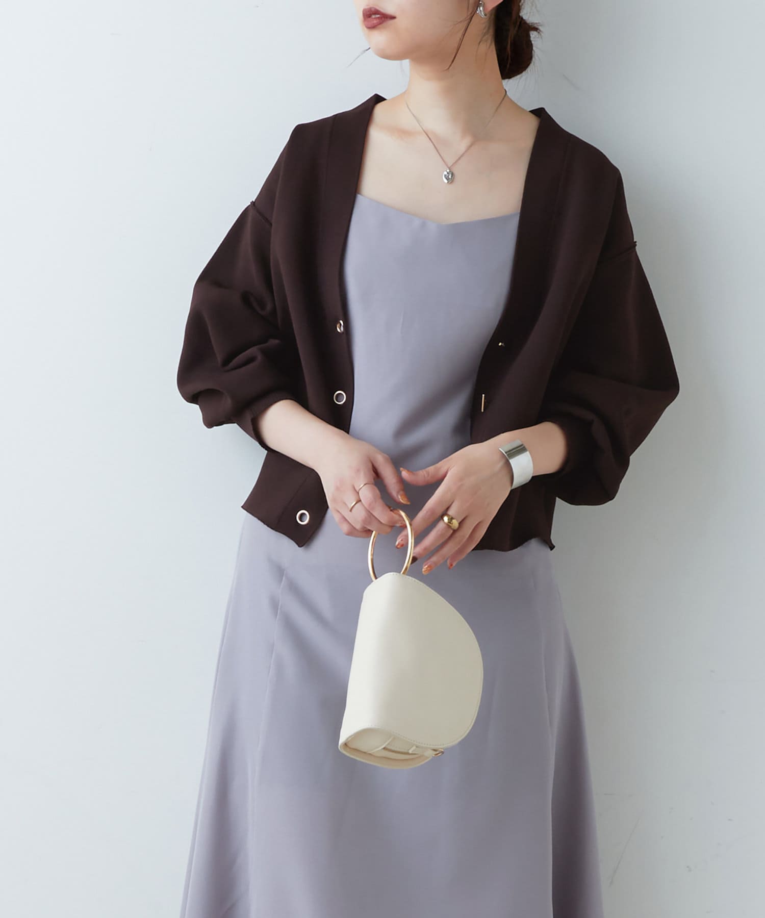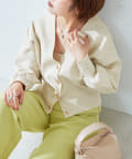 羽織りとしてはもちろん、1枚着のトップスとして後ろに抜いて着るのがオススメ!