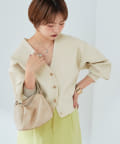 袖ぐりのアウトリンキングや、程良いボリューム感のあるシルエットが羽織るだけでオシャレな印象。