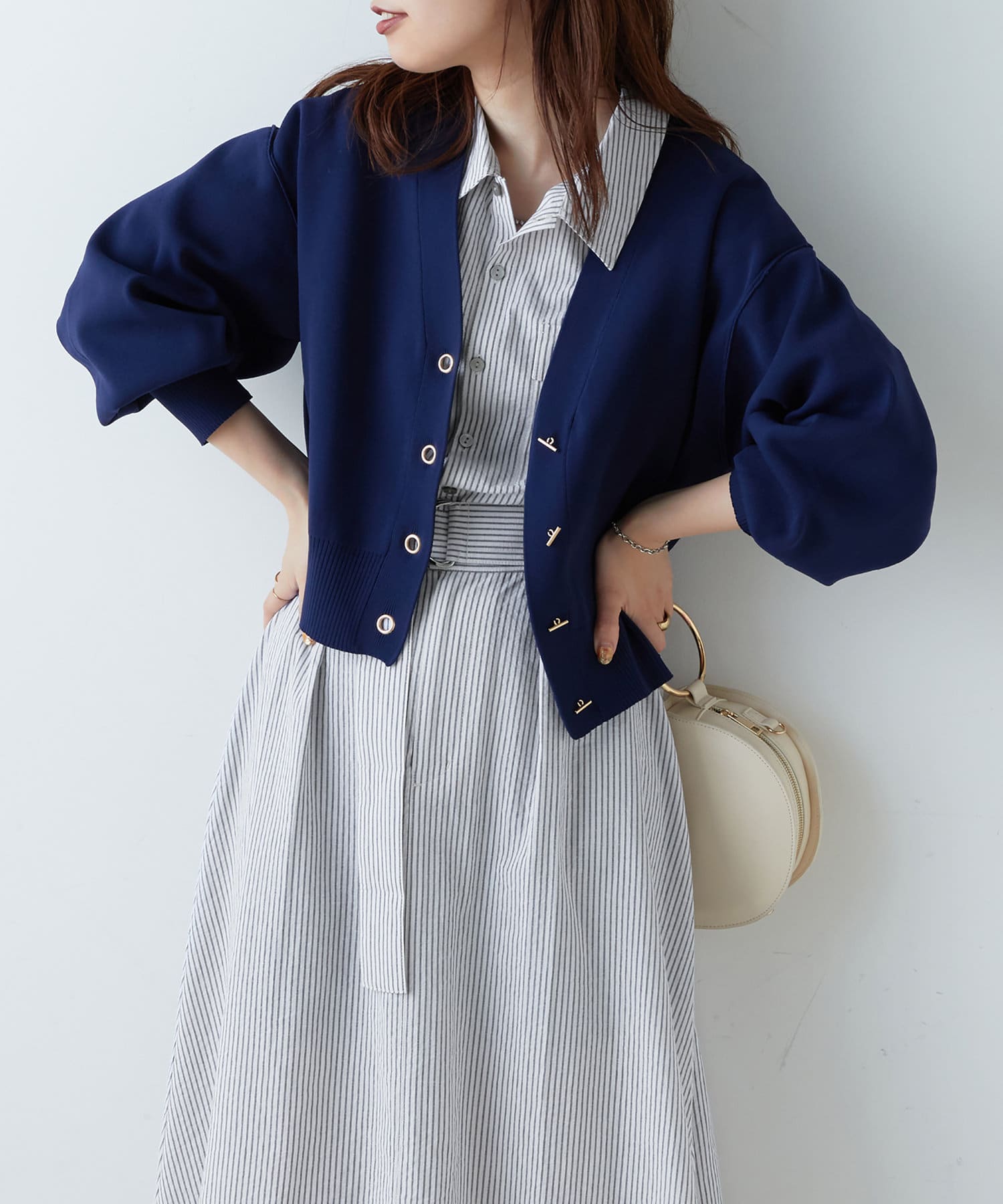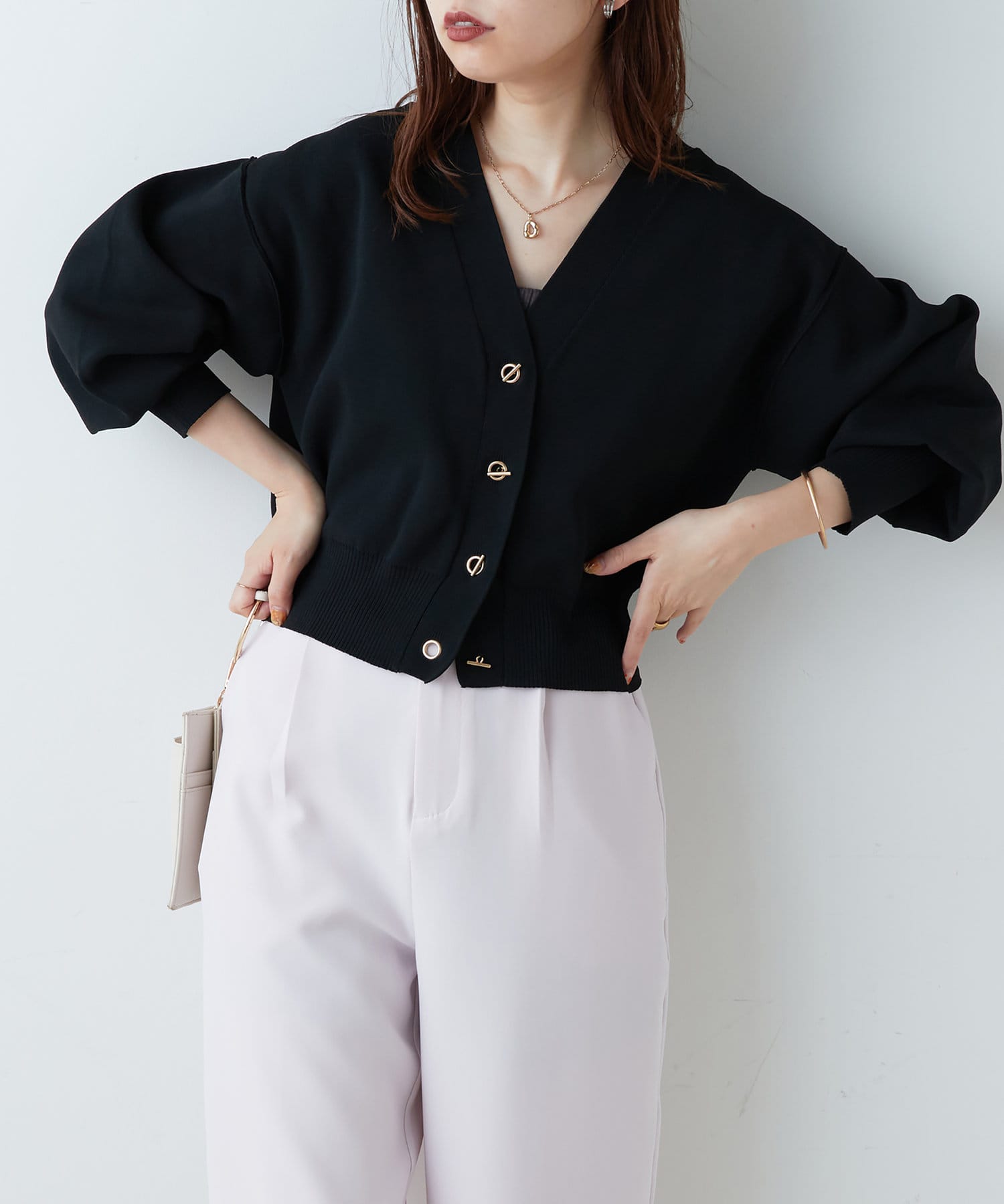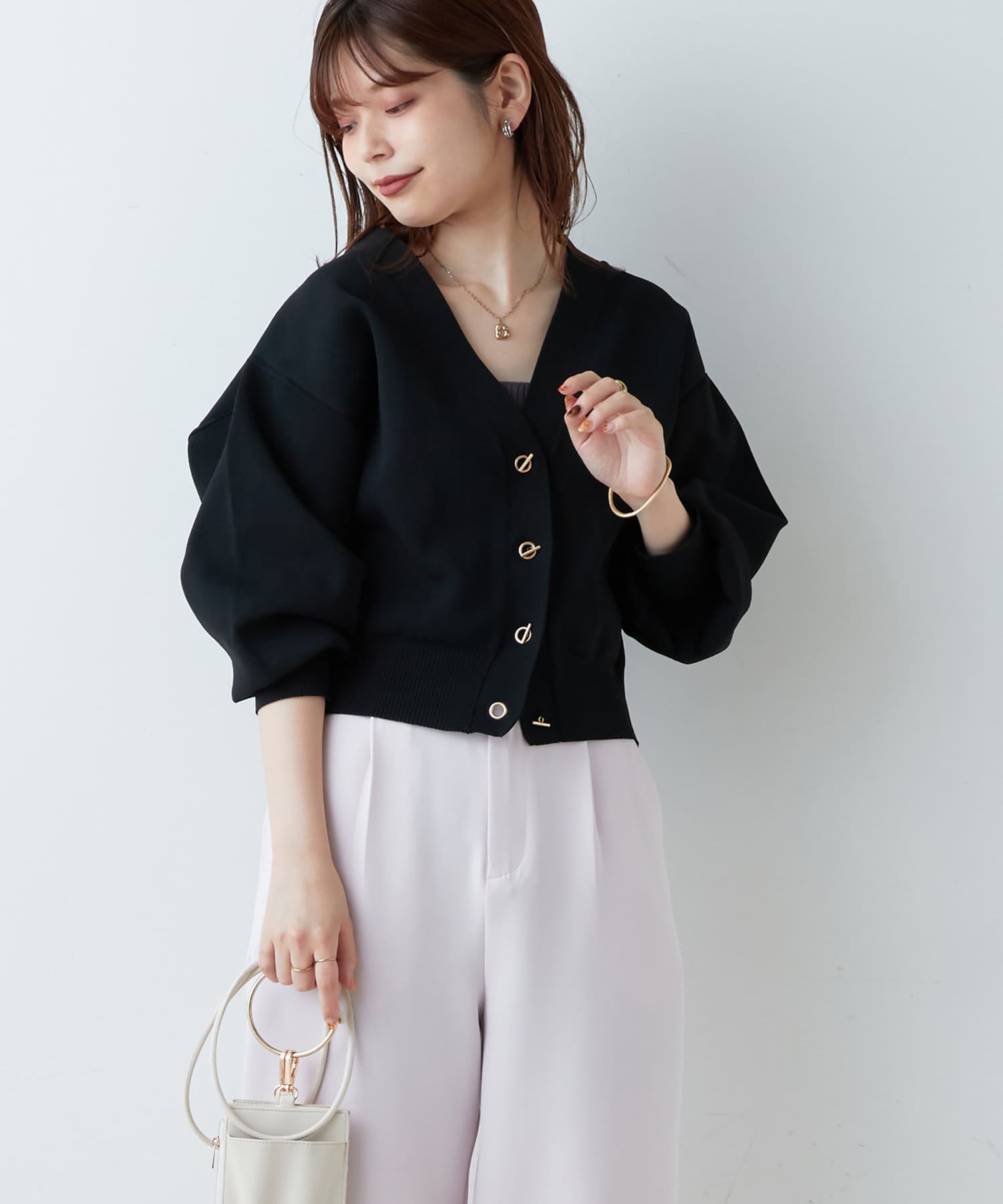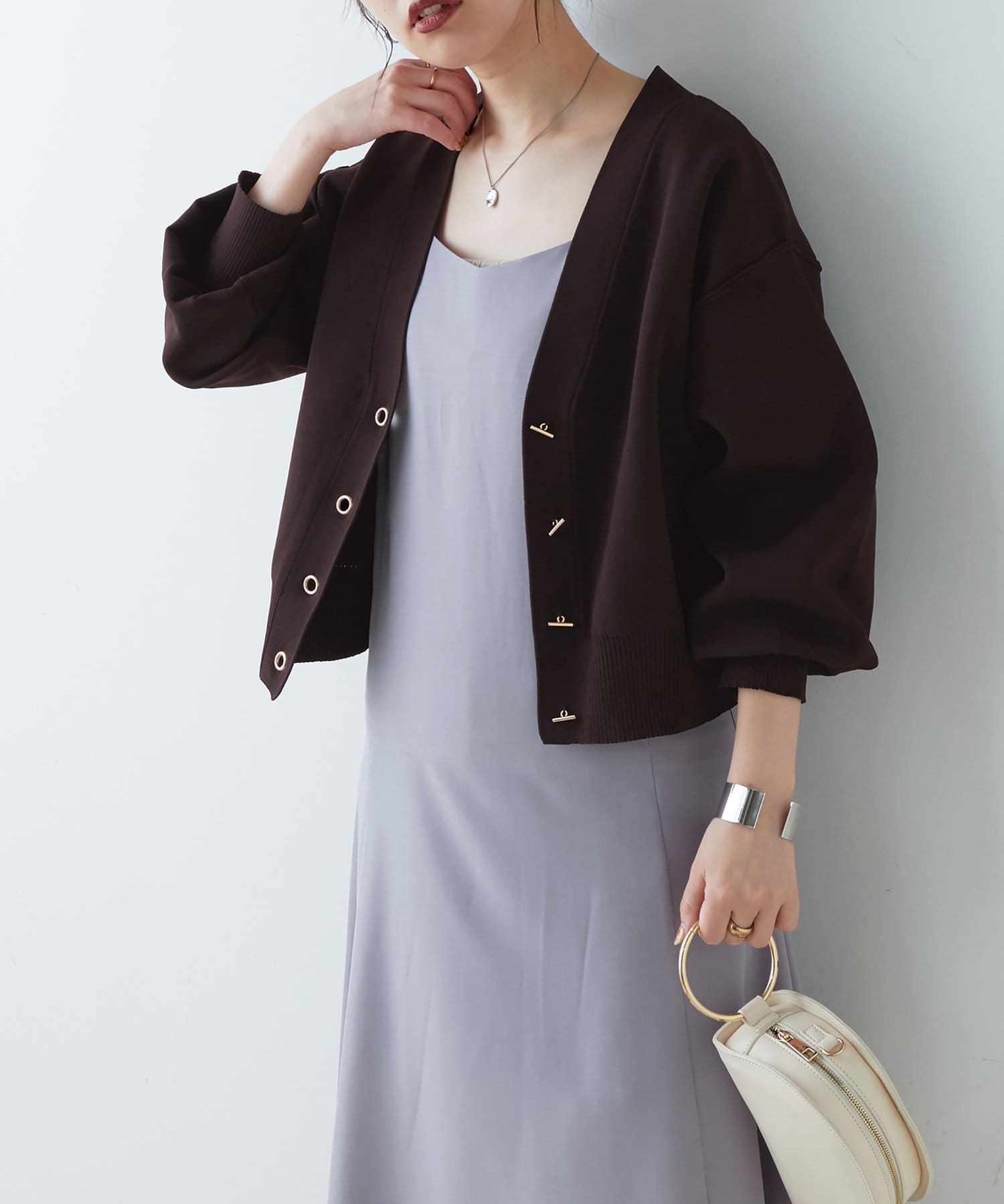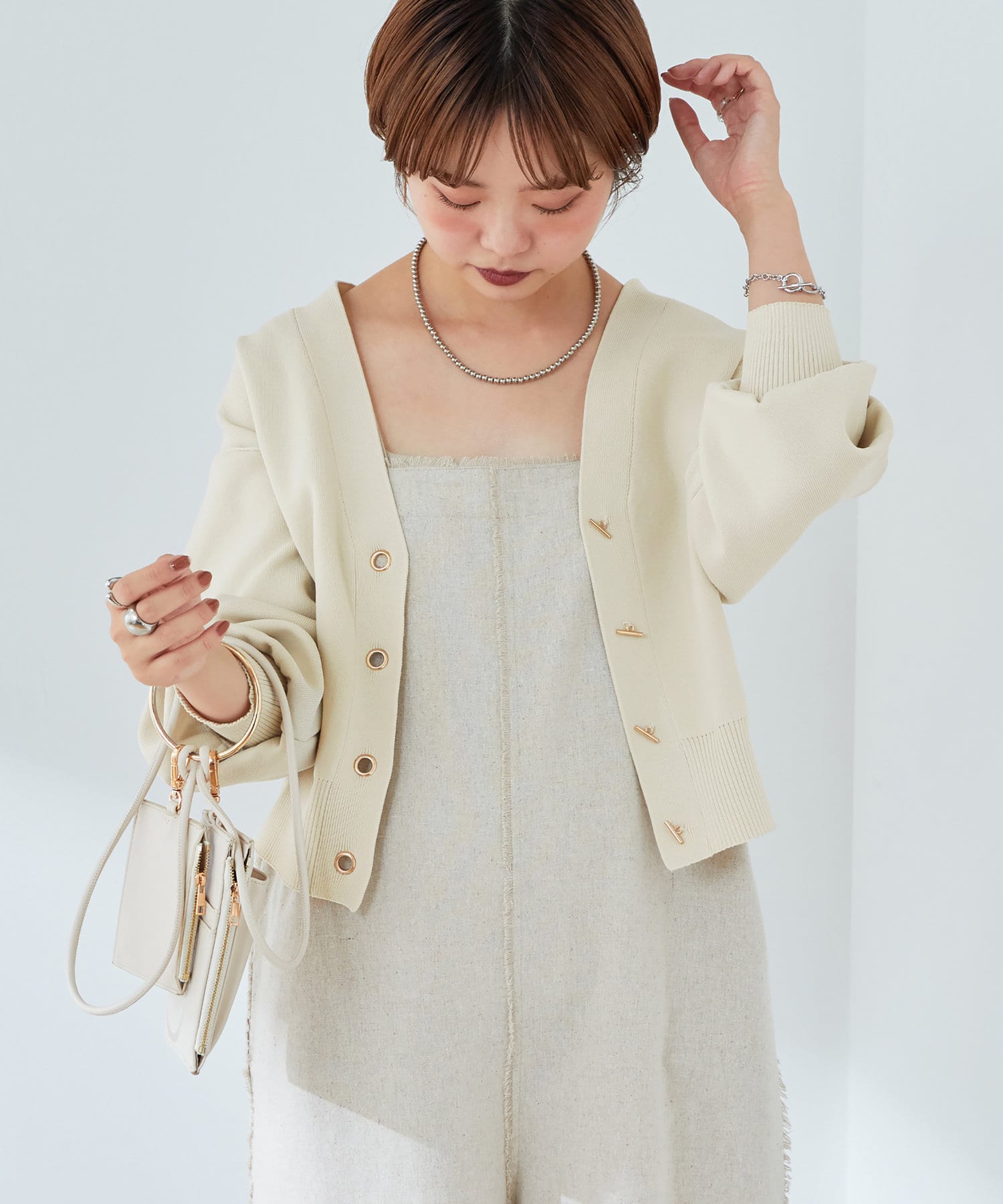 348830041 【WEB限定】プチプラハトメバー釦おしゃれカーデ