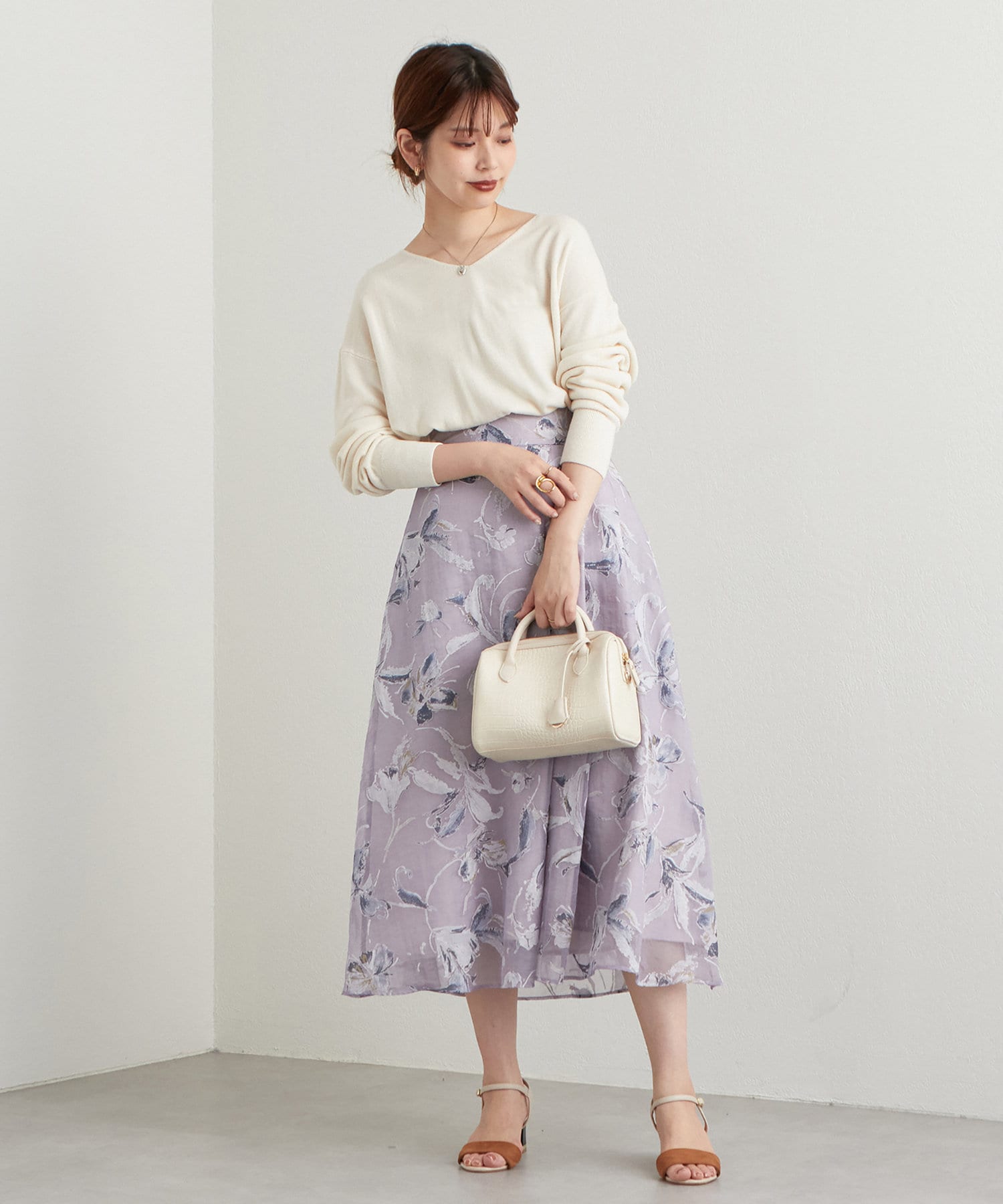 シンプルなアイテムなので柄ボトムスやレーススカートと相性◎