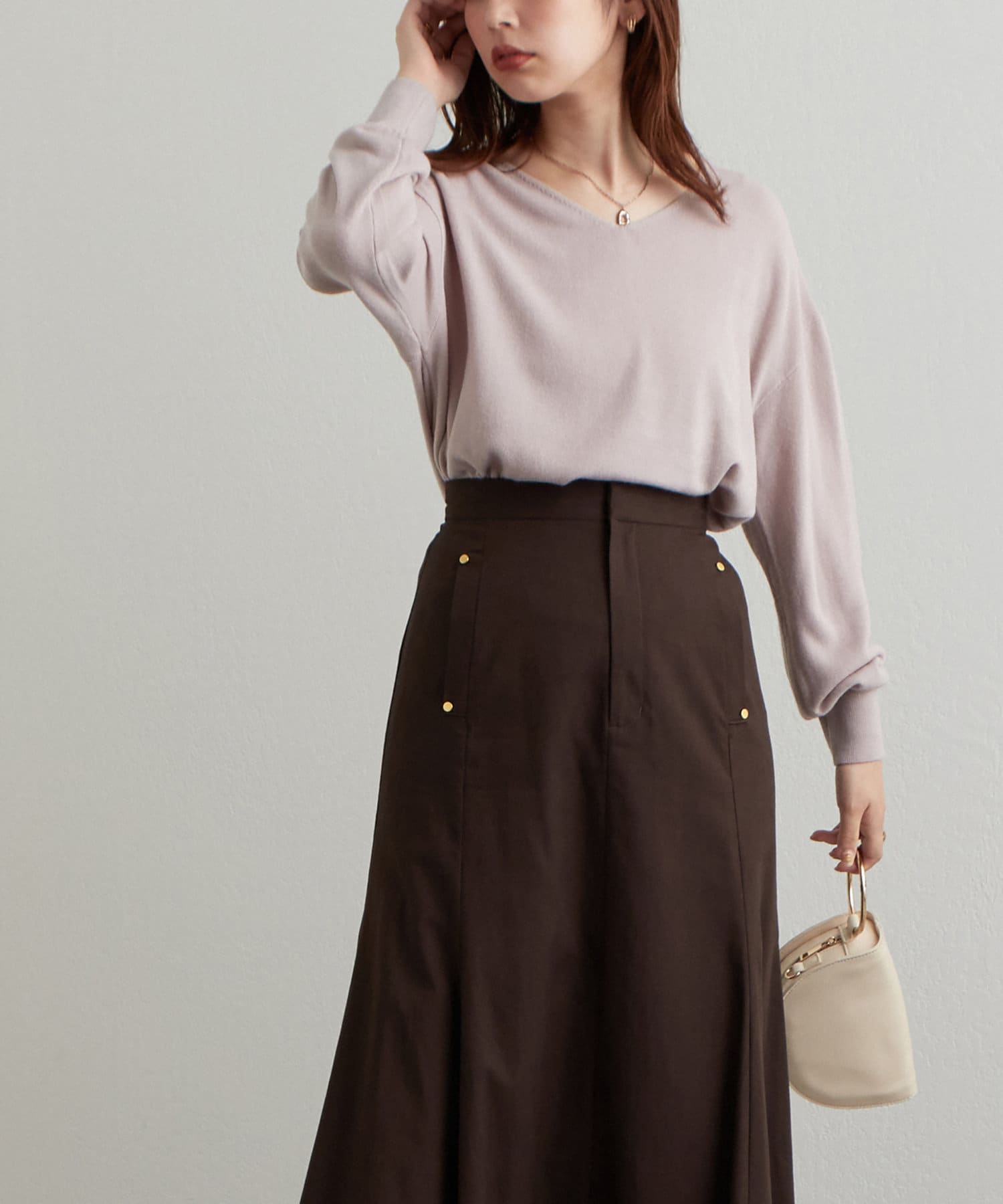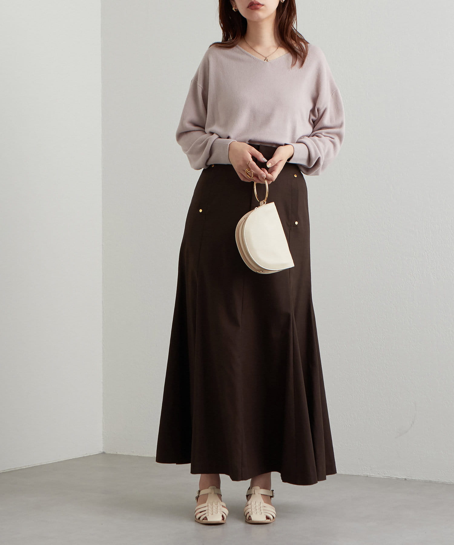 厚地すぎない生地感は今季トレンドのハイウエストマーメイドスカートにINもしやすくオススメです。