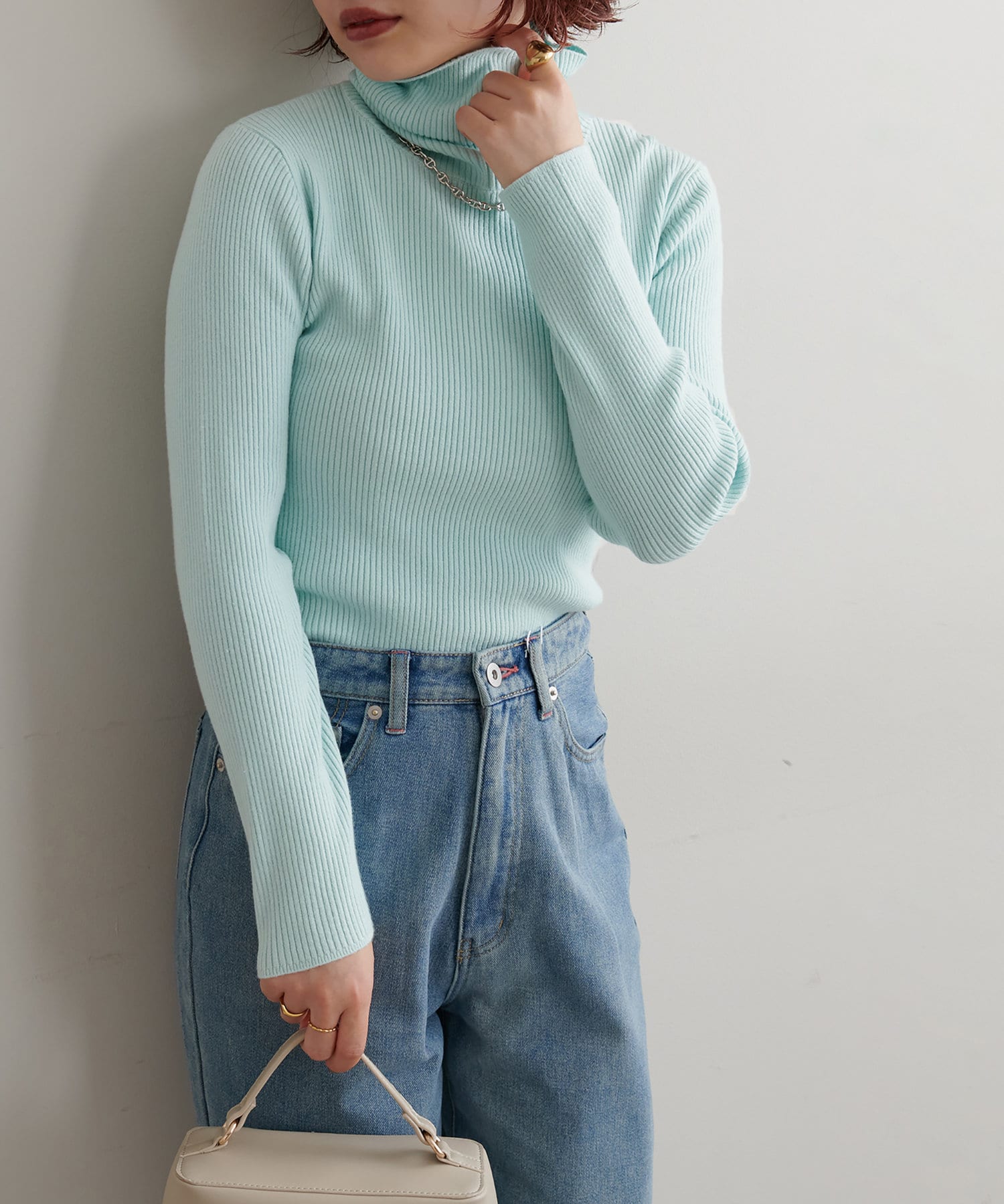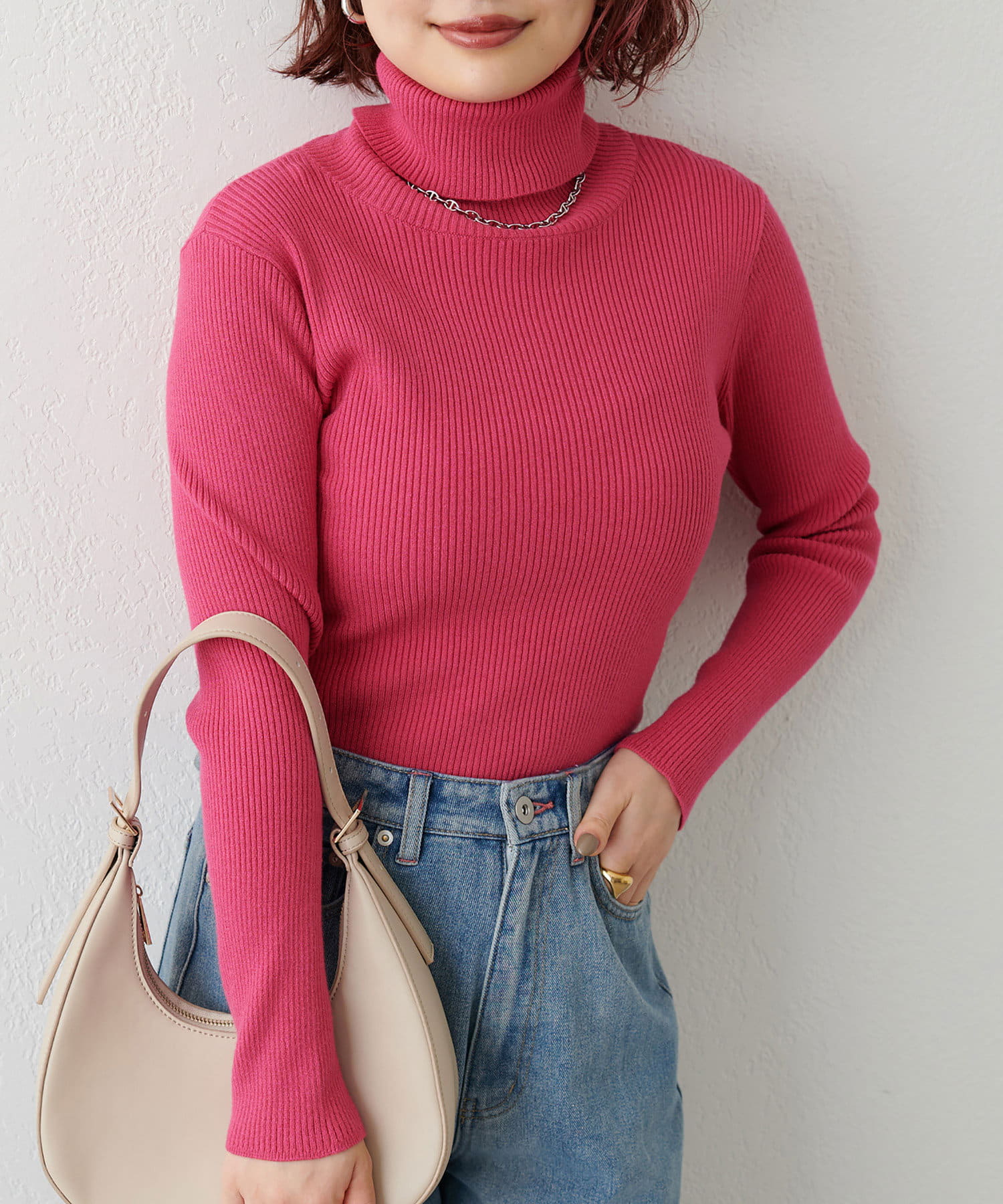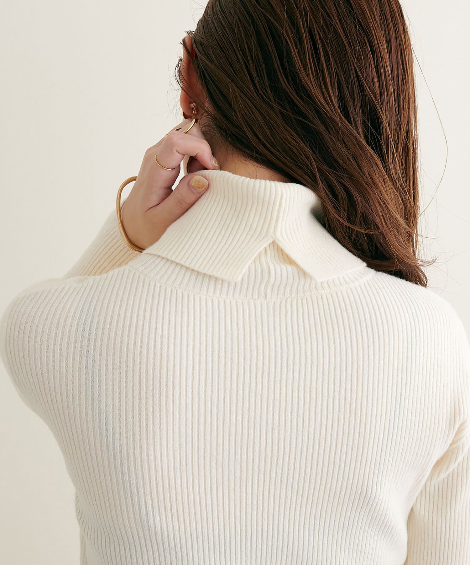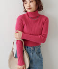 すっきりシンプルなデザインで着回しのきくリブタートルネック。