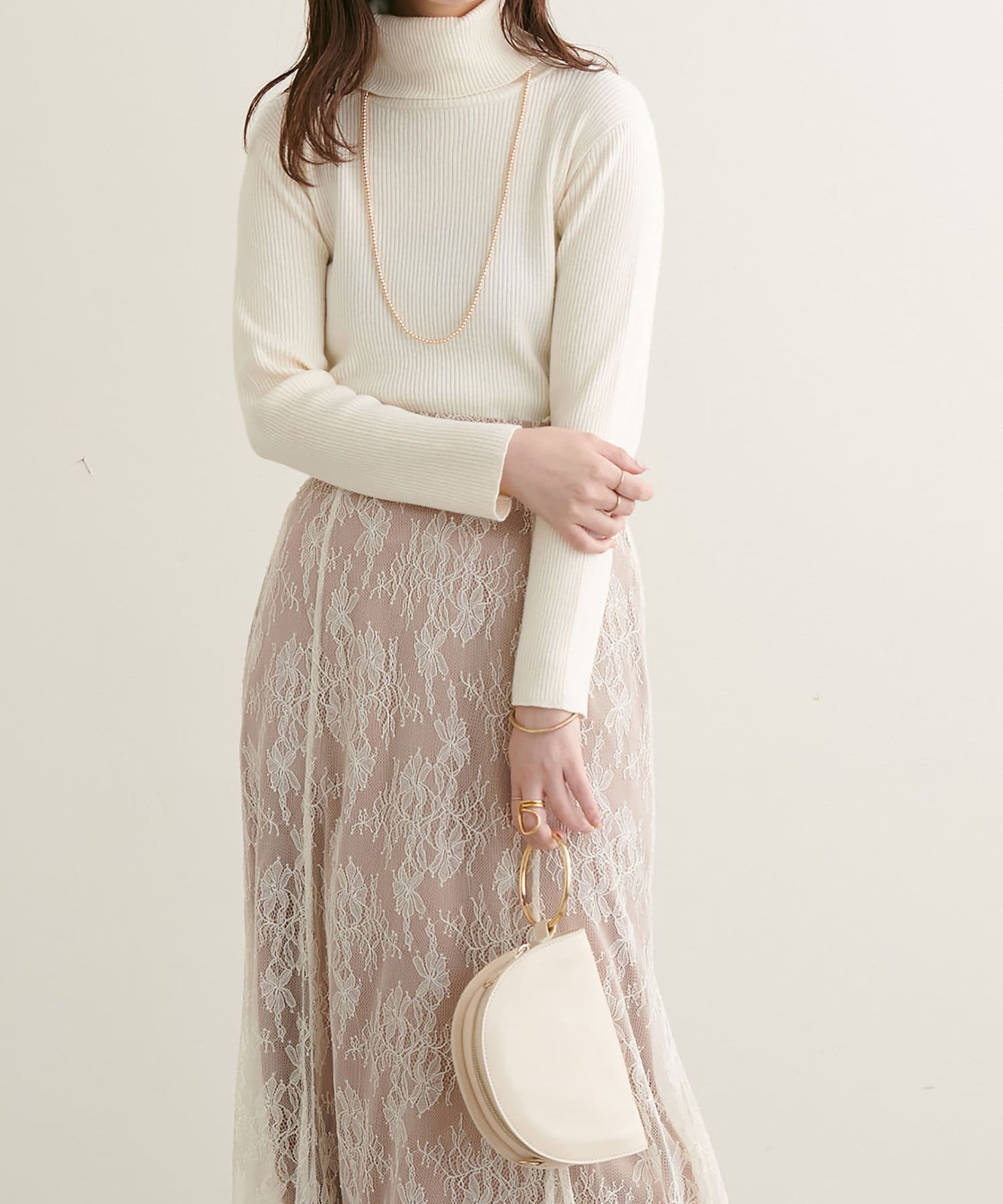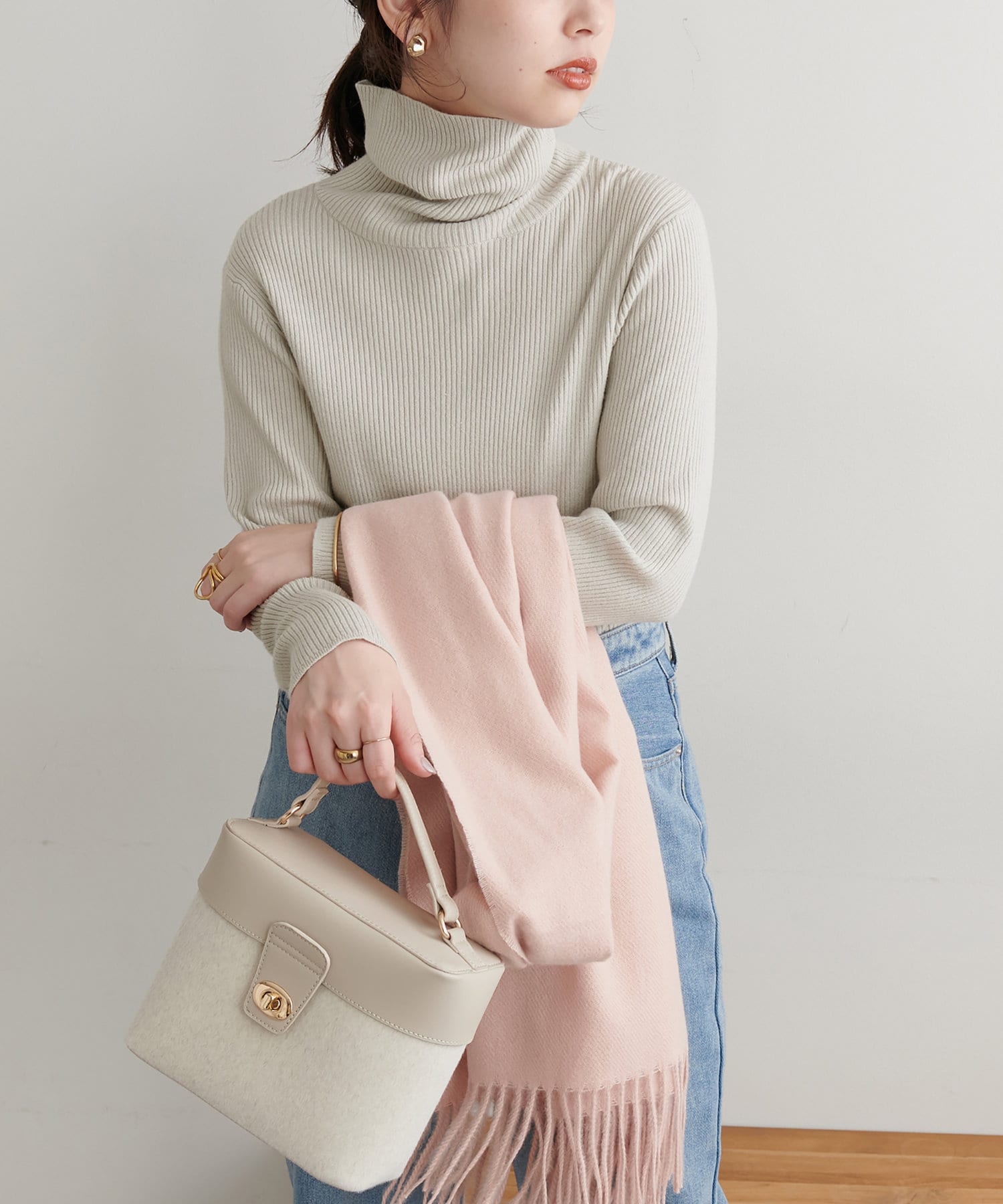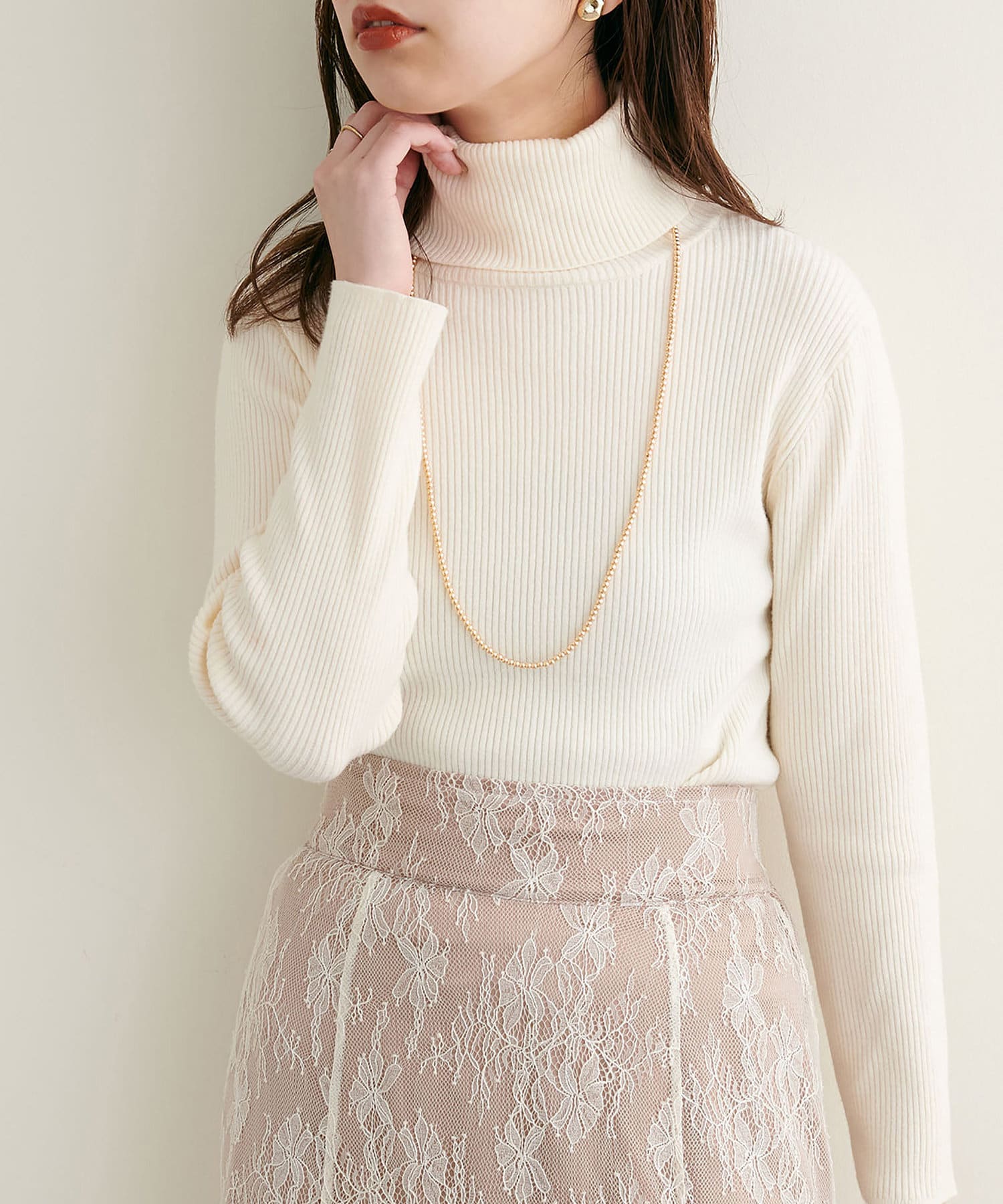 すっきりシンプルなデザインで着回しのきくリブタートルネック。