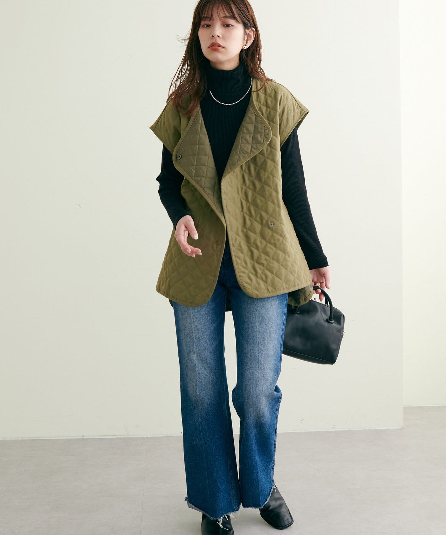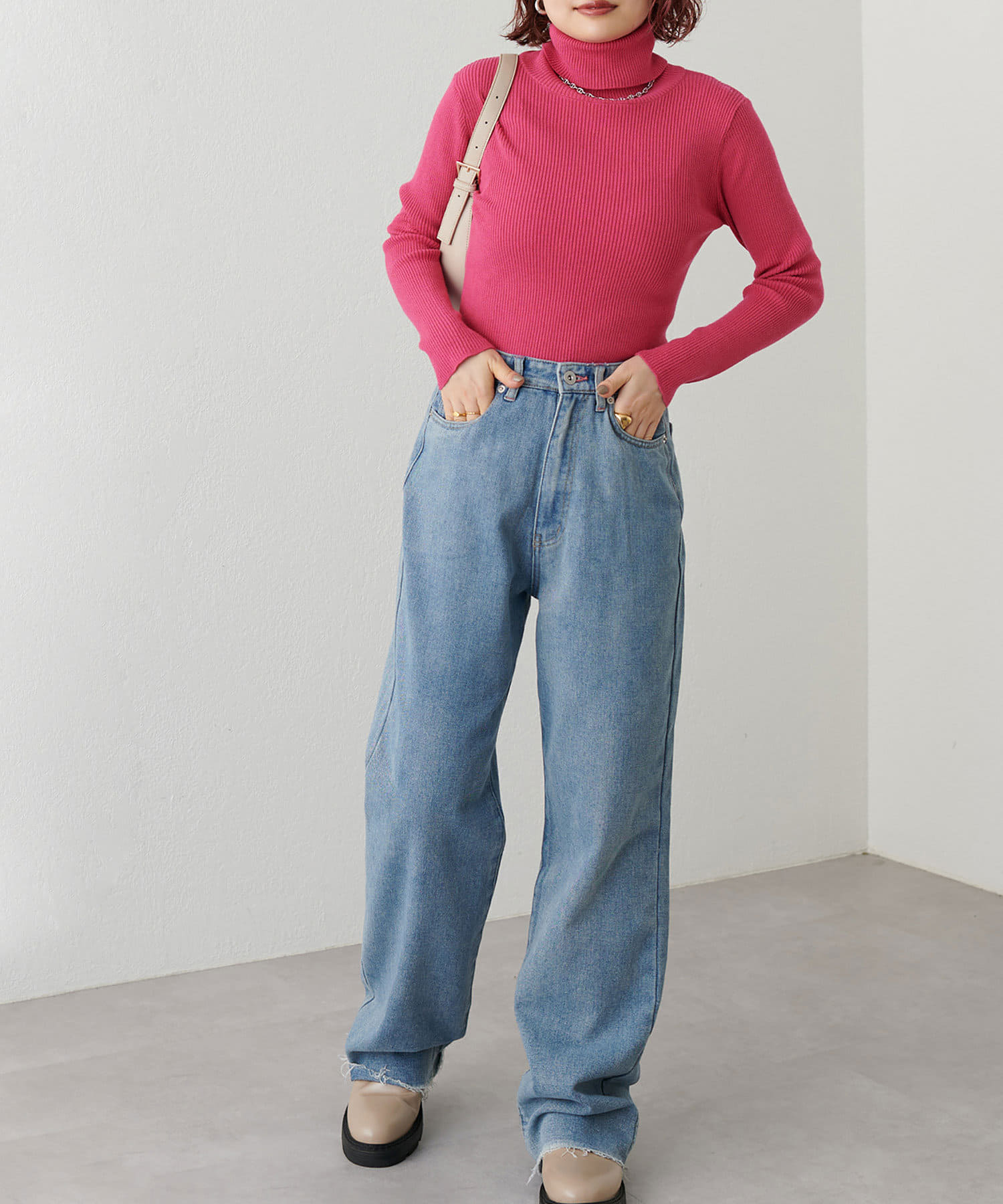 シンプルなデザインなので、ボトムスのテイストを選ばず着回しできます。