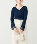 ニットの袖口には大きく切り込みをいれ、内側のレースでほんのり甘さもプラス。