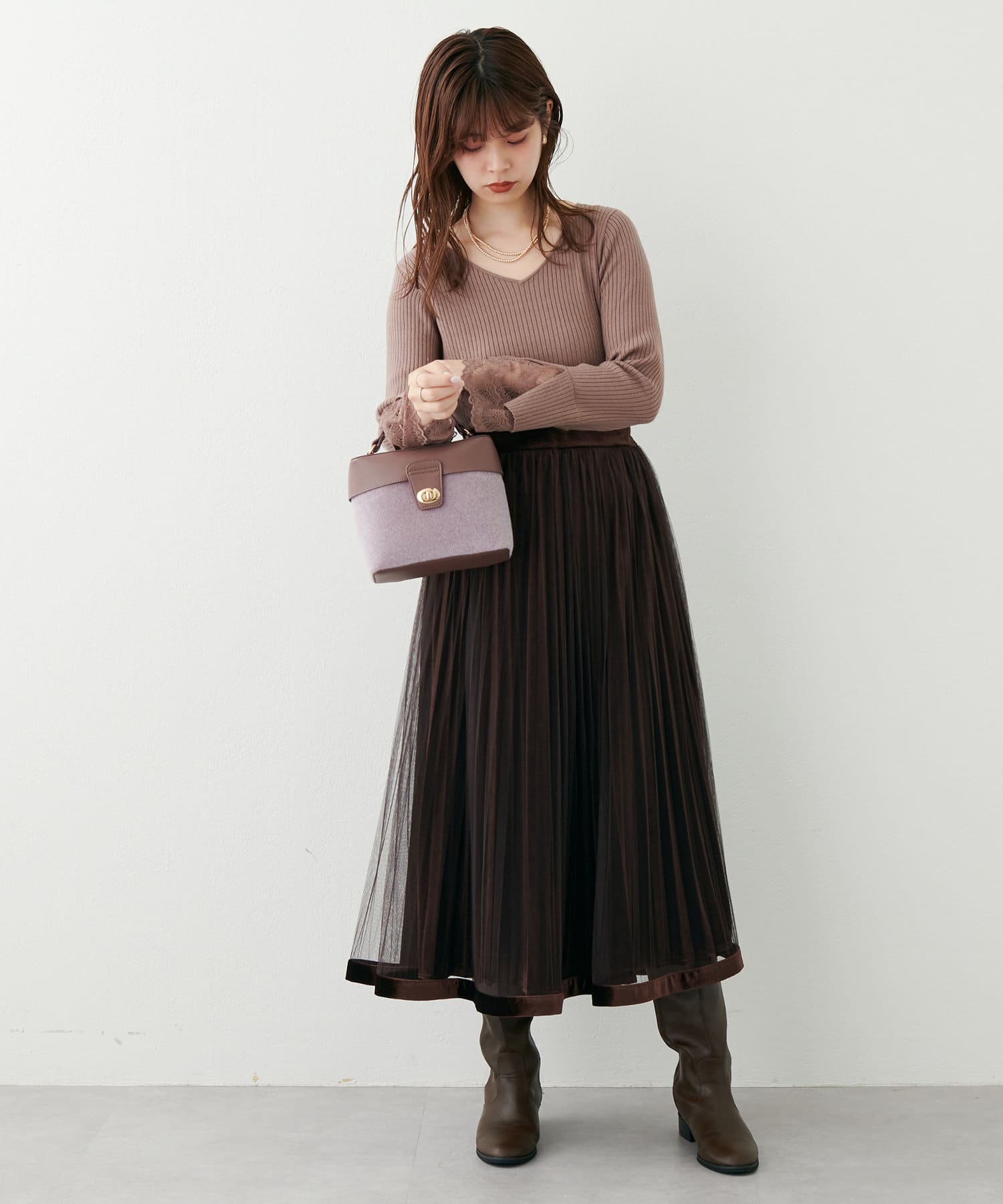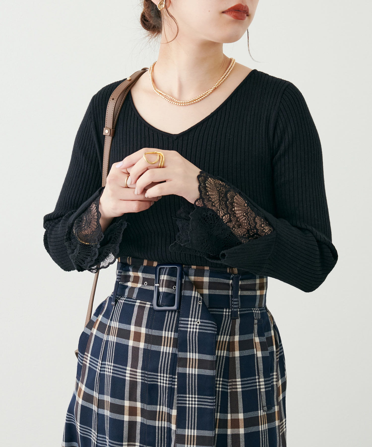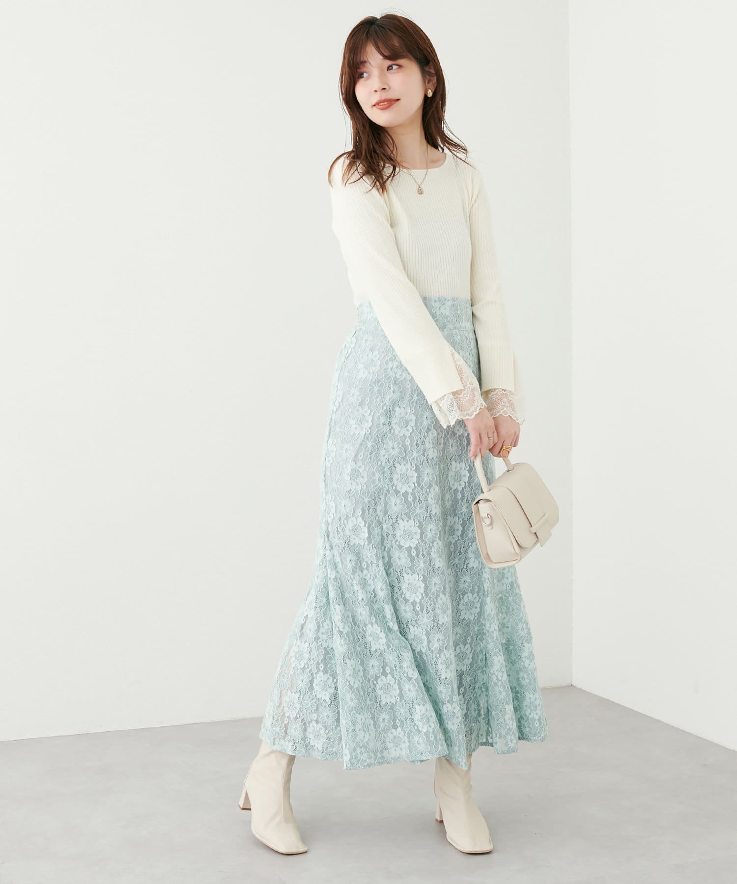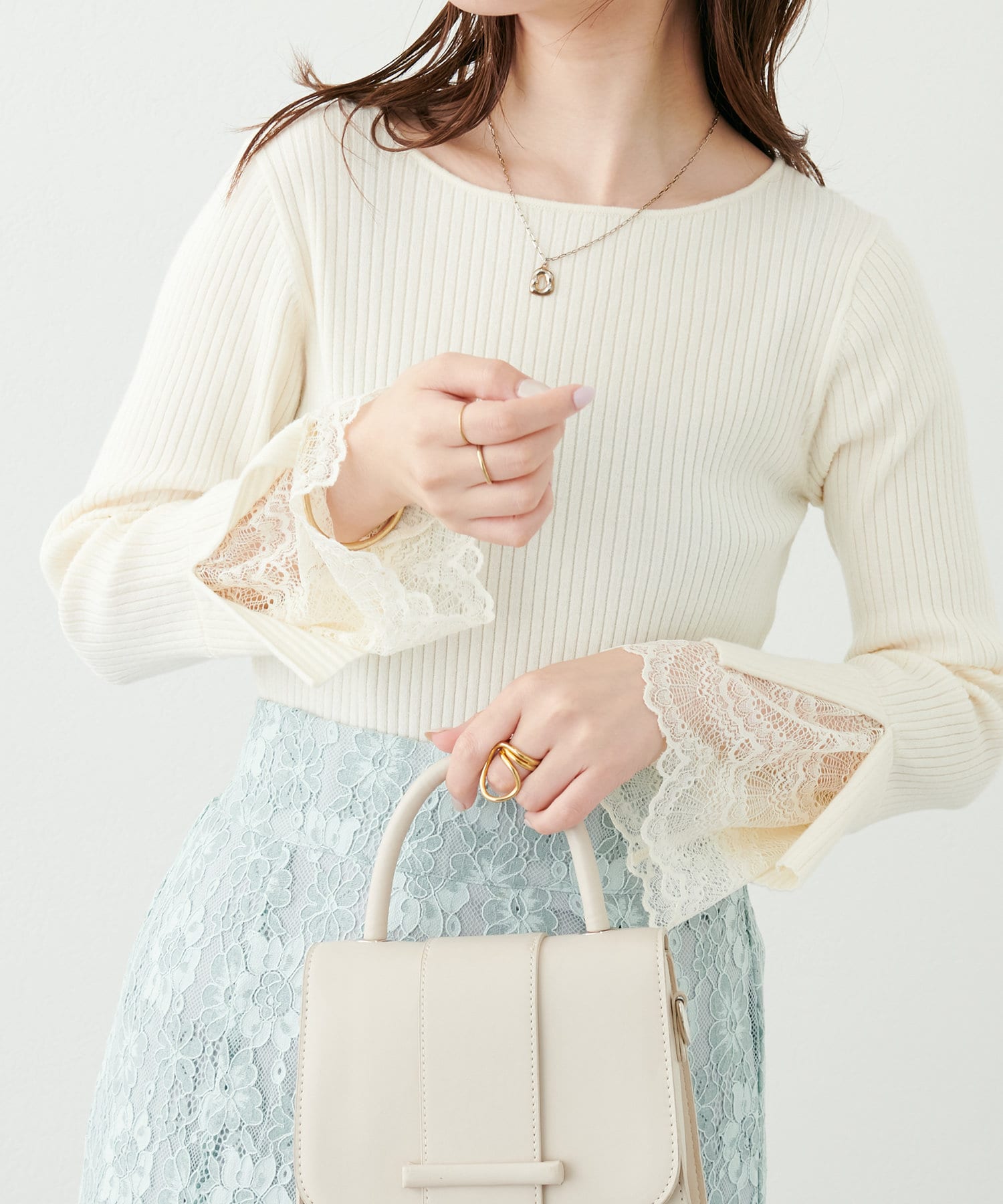 冬の季節はアウターの袖からレースがのぞくレイヤードもおすすめです。