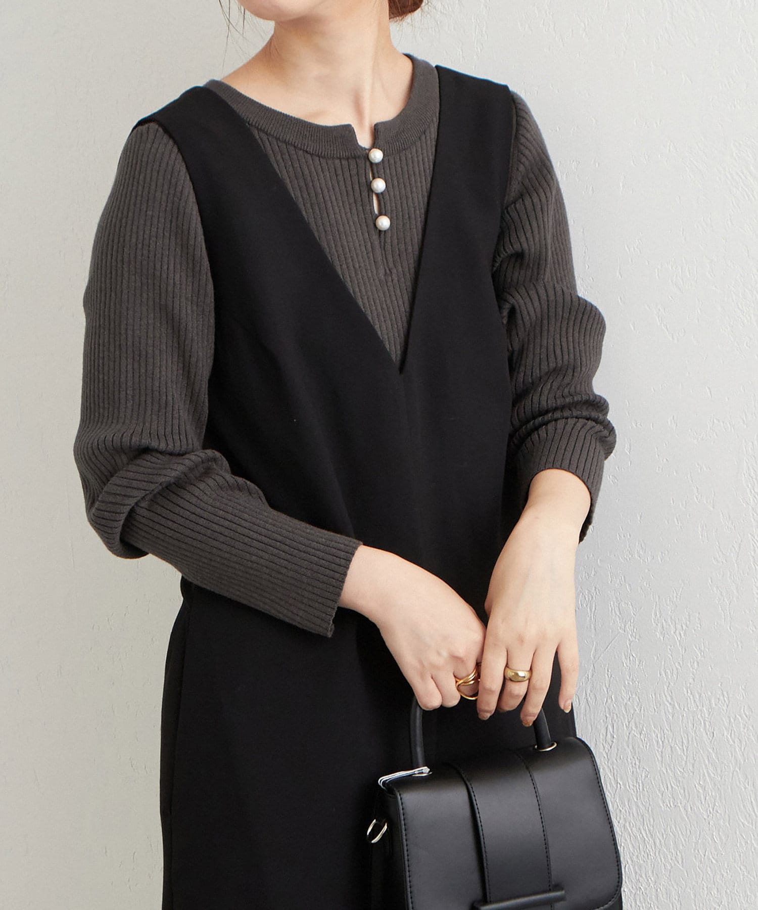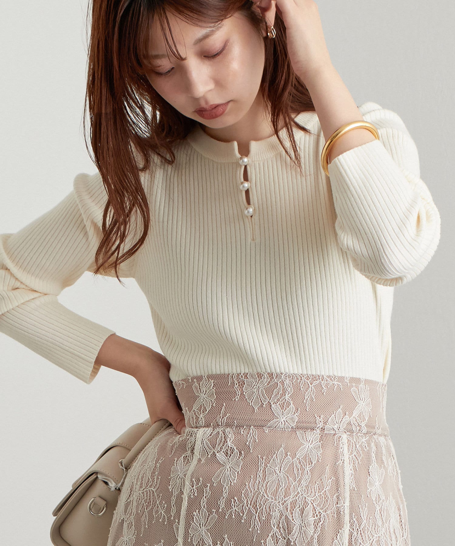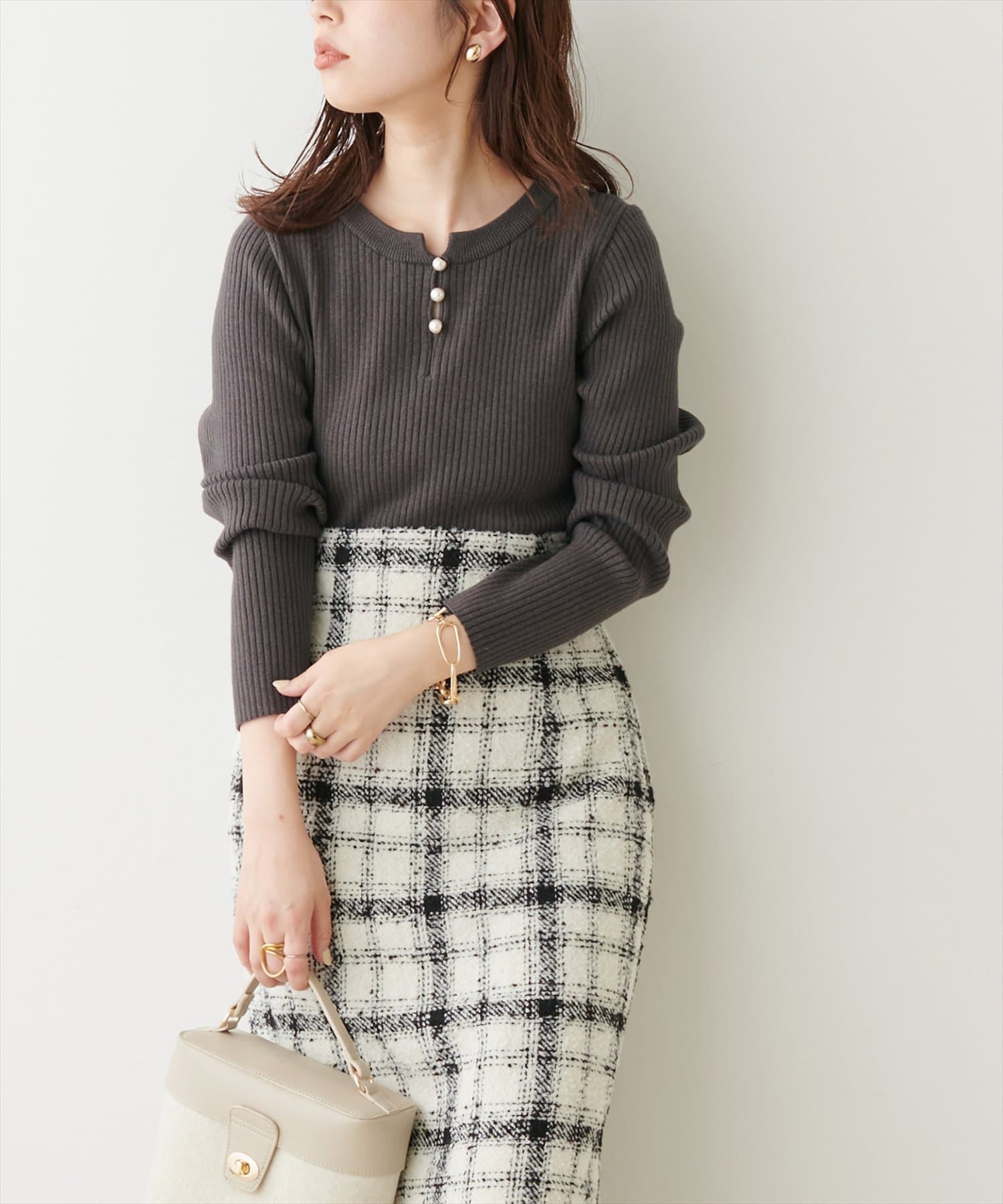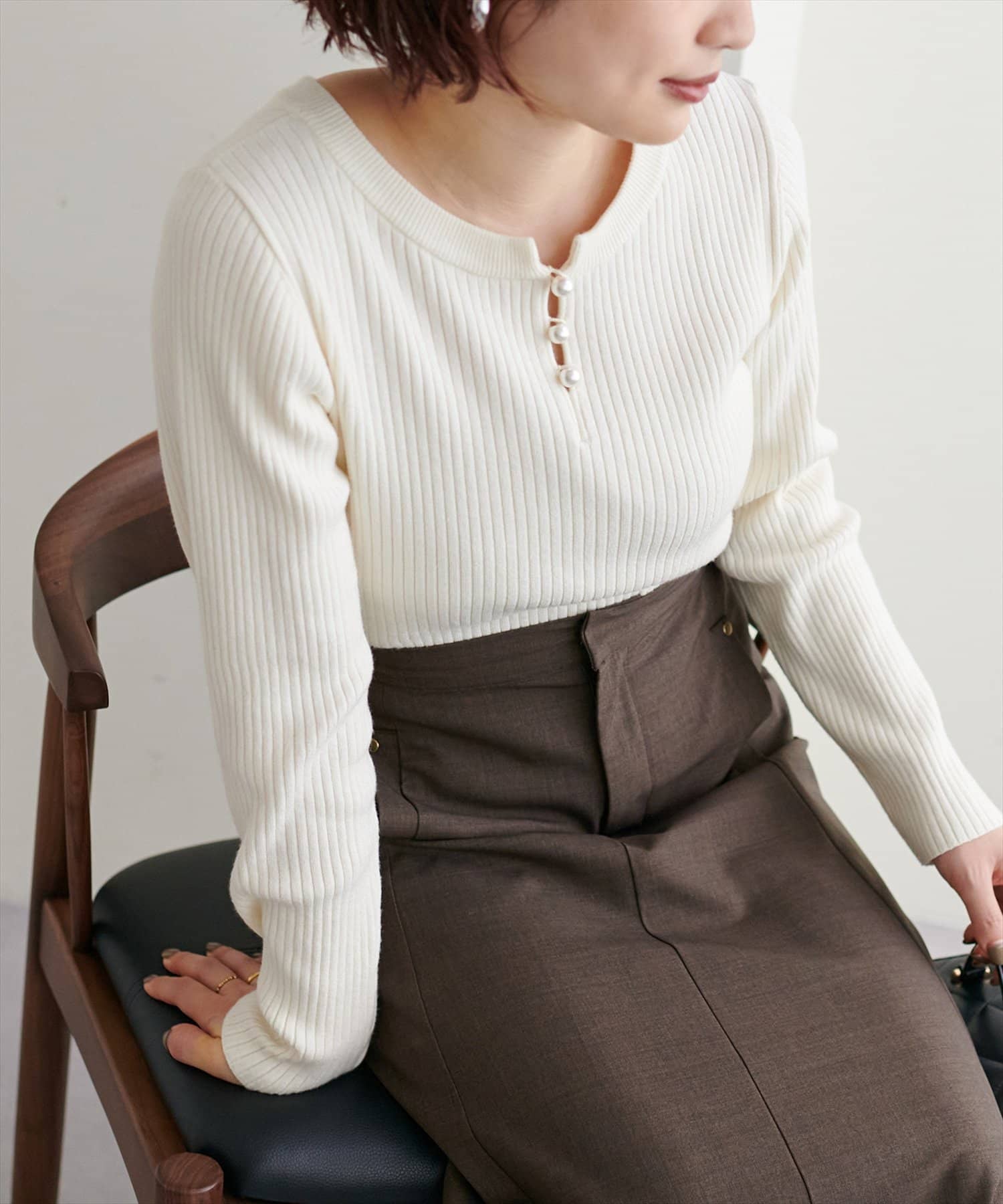 #シンプル #オフィスカジュアル #長袖 #パール #キレイめ
