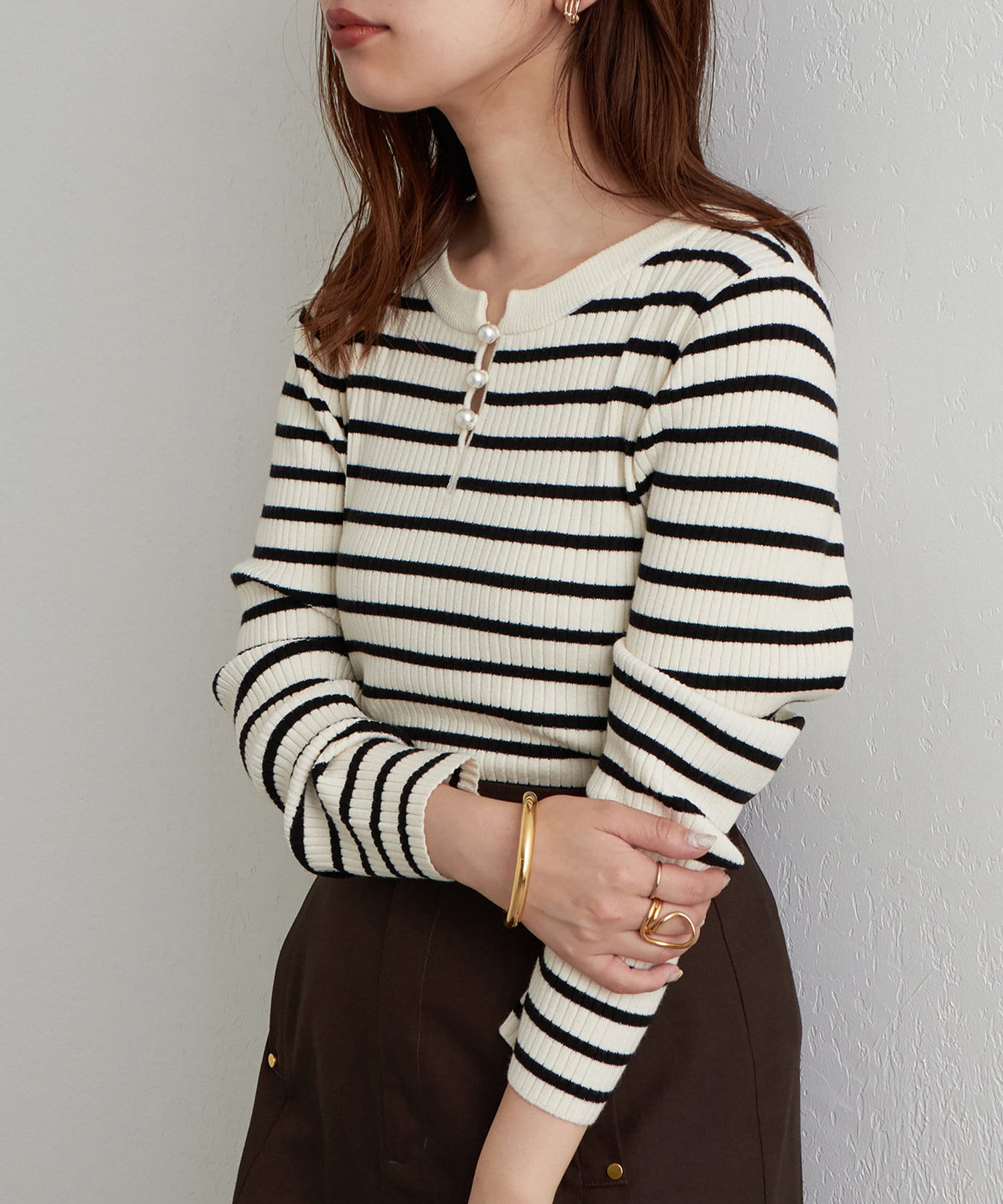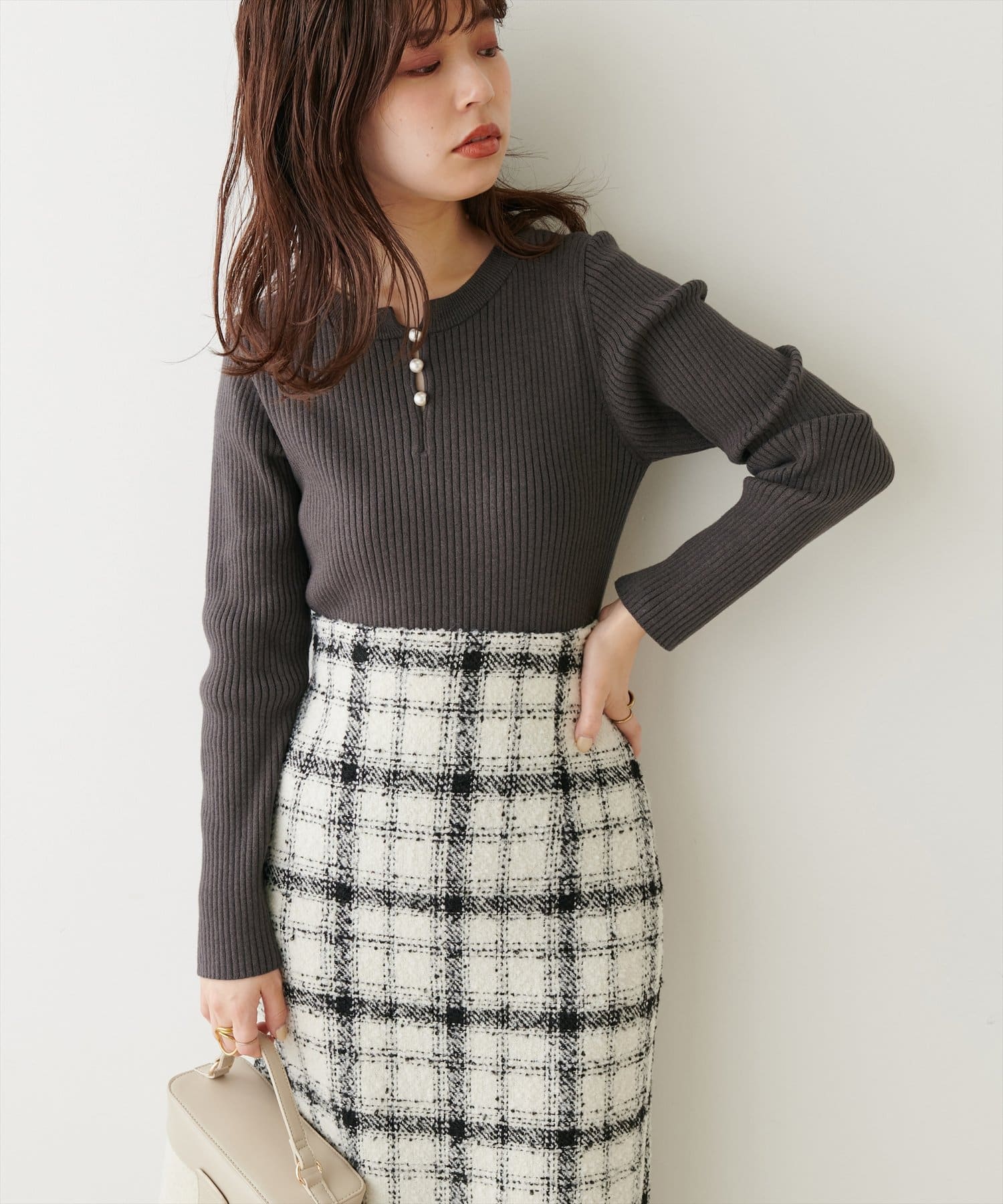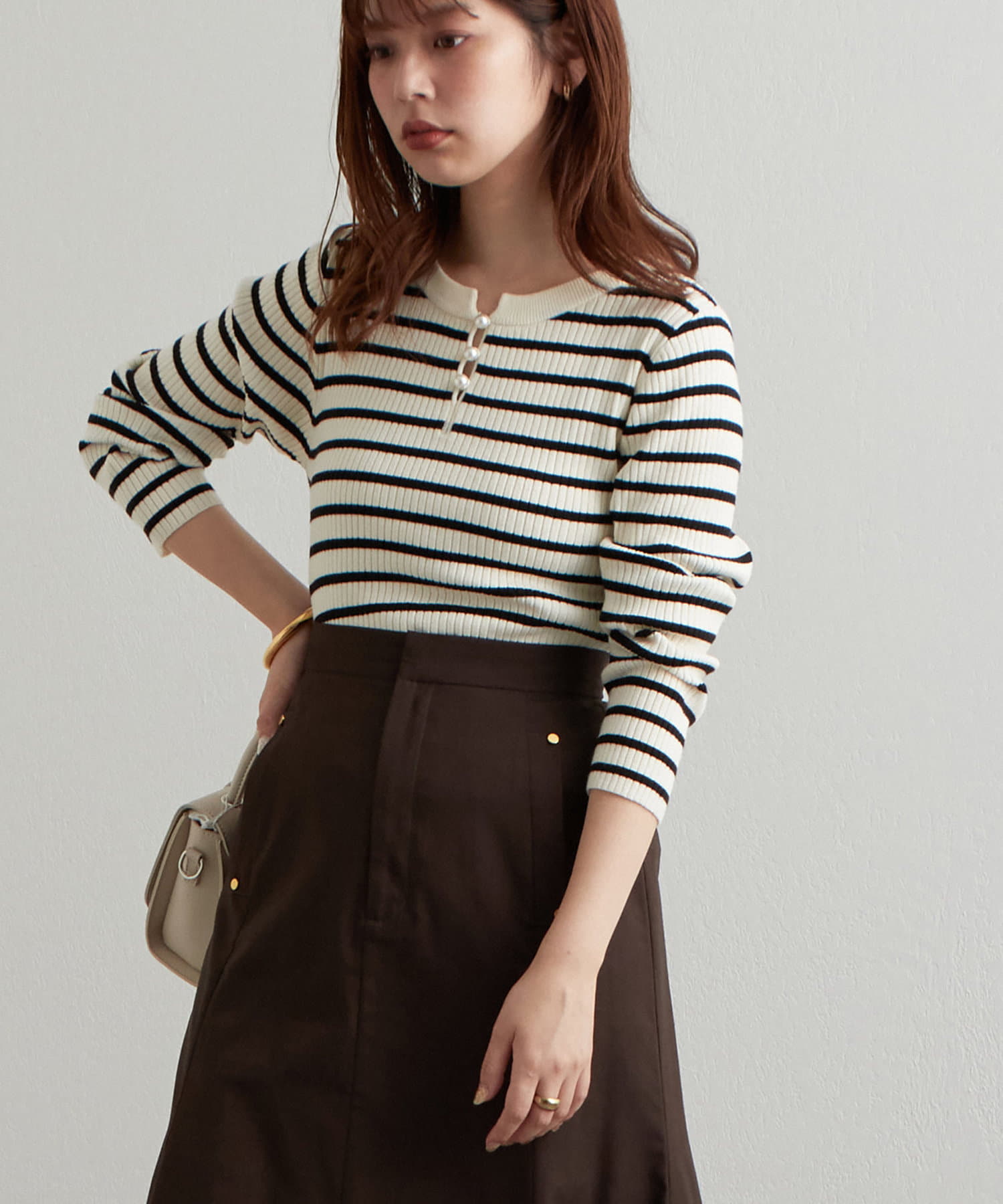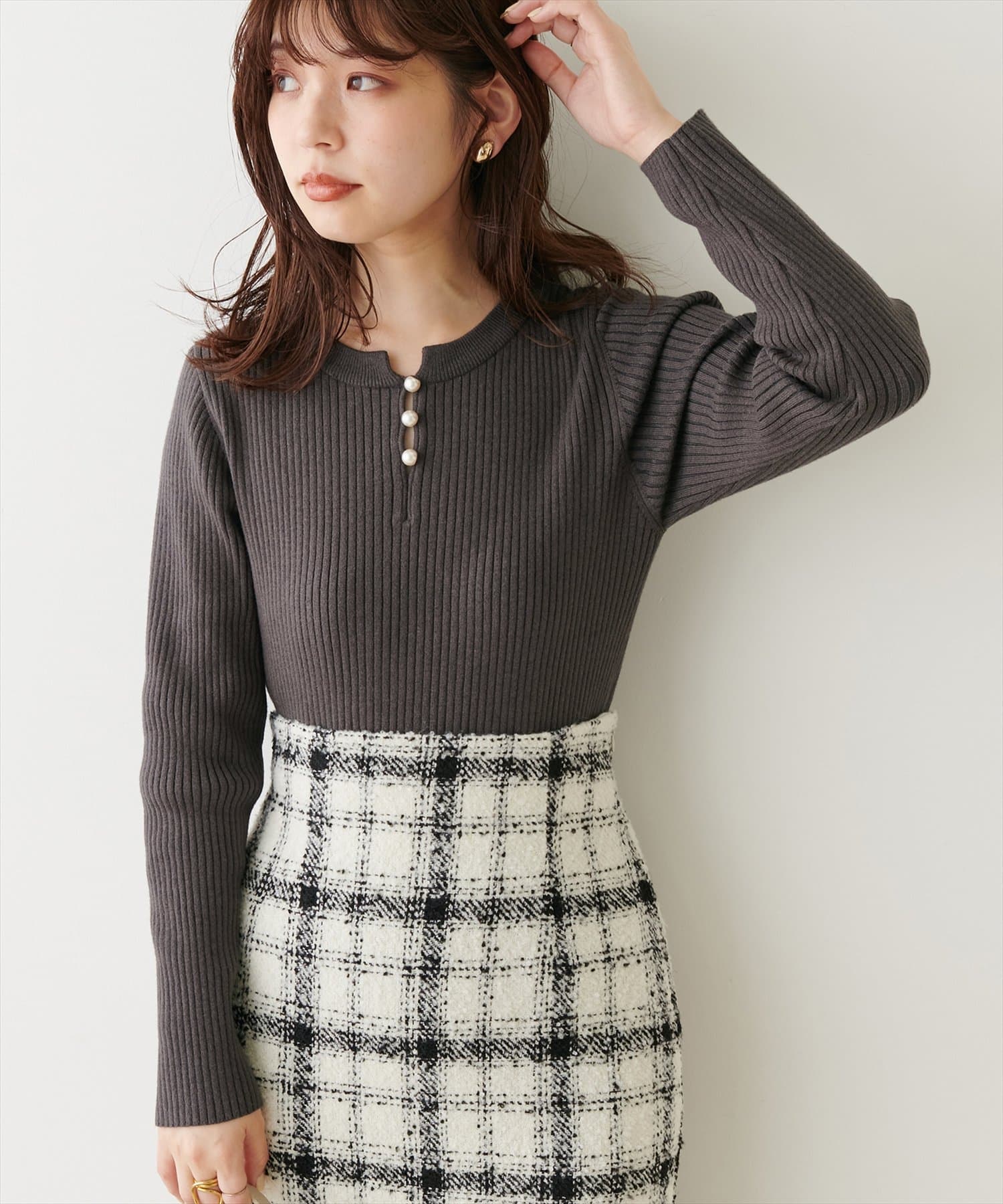 #シンプル #オフィスカジュアル #長袖 #パール #キレイめ