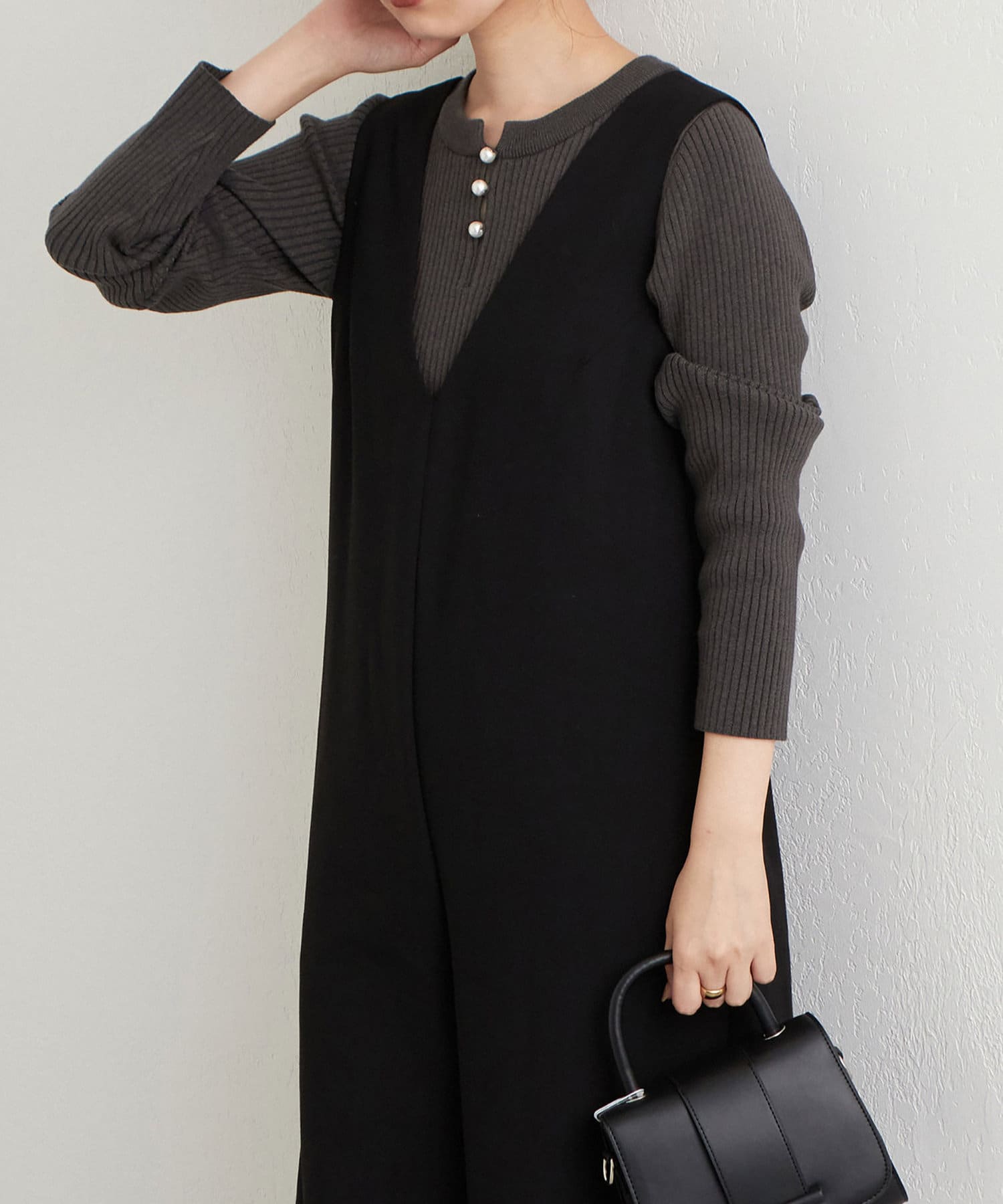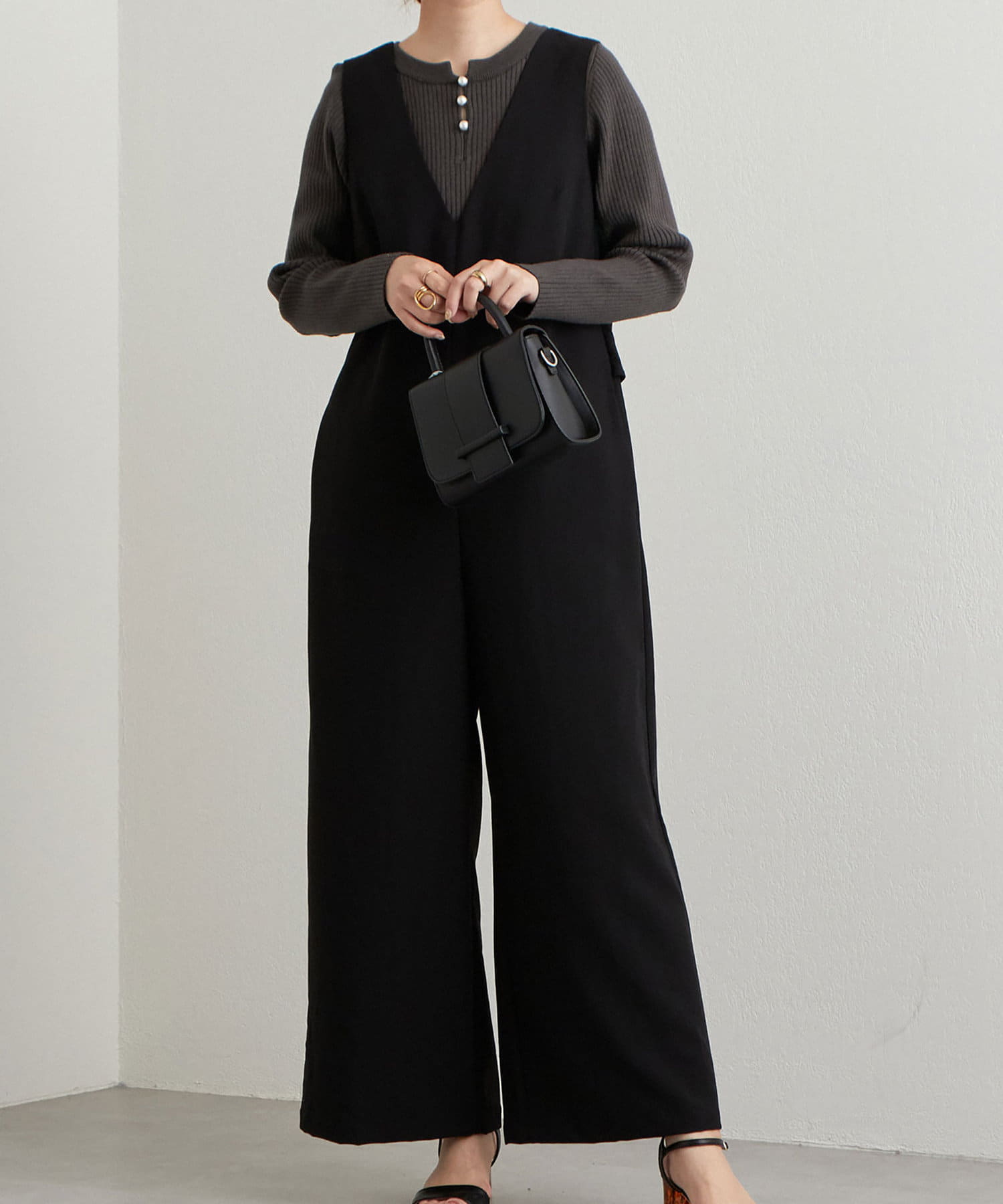 旬の深Vデザインのサロペットやキャミワンピースのインナーとして合わせても◎