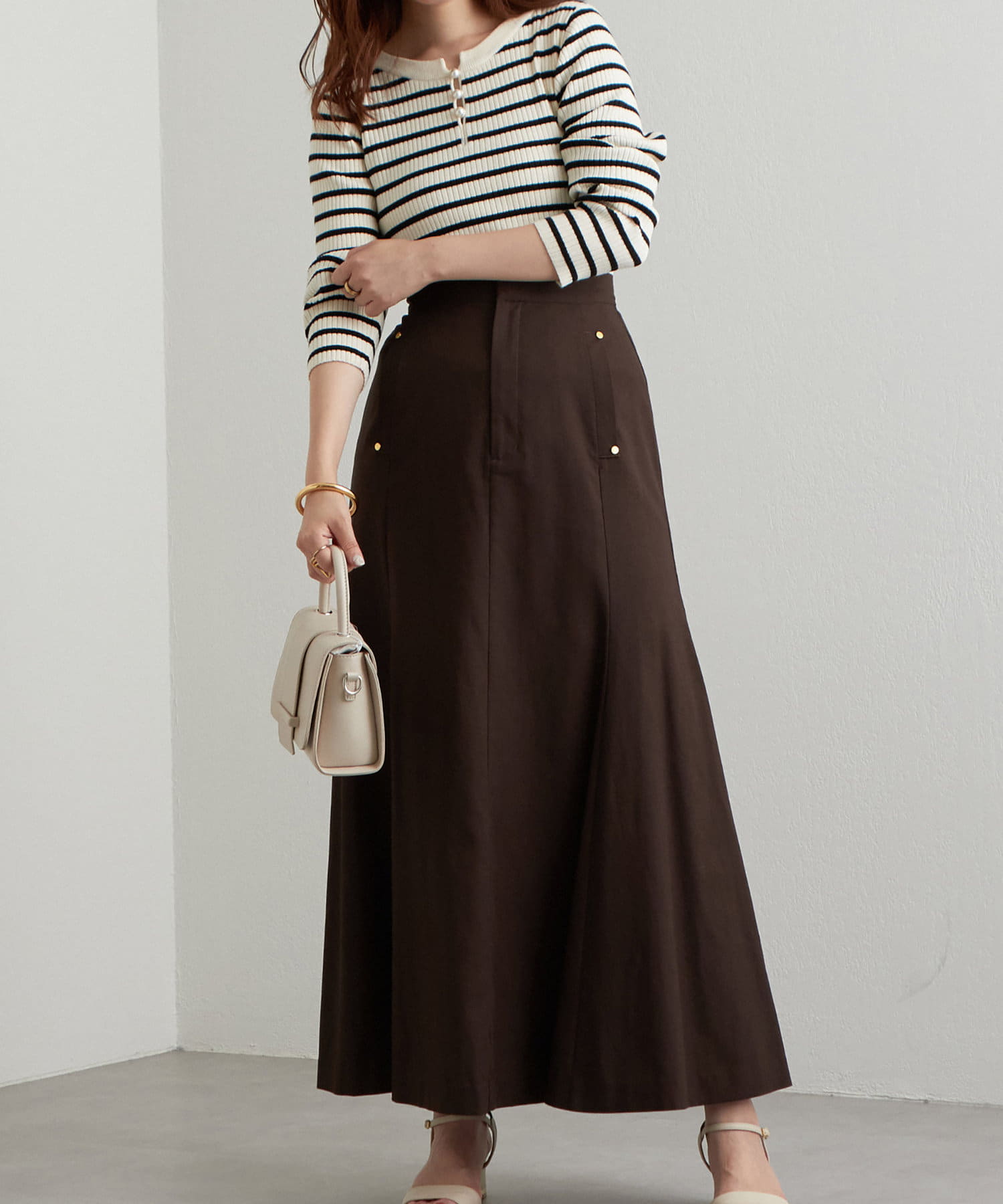 ハイウエストデザインのボトムスや、フレアライン、マーメイドシルエットのスカートに