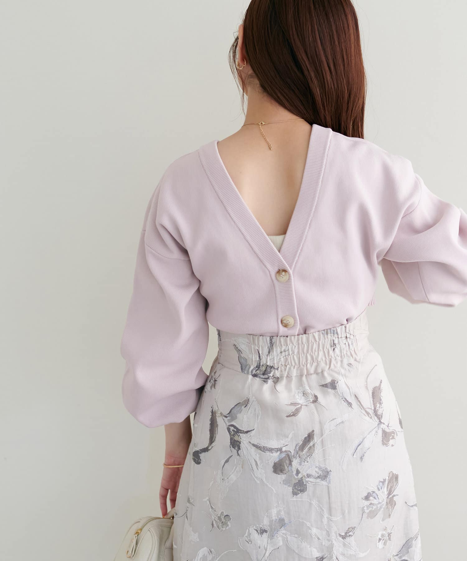 落ち着いたピンクで色がきれいです。カーディガンとして着た時の背中側の段?が穴が空いた状態だとは思いませんでした。着てて背中側が空いて中が見えていても自分では気づかないので変に思われそう。縫い付けてしまおうか悩んでますが、微妙な色(きれいな色なんですけど)で糸も買うしかないし店頭で見たら買わなかったかもしれません