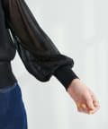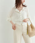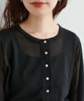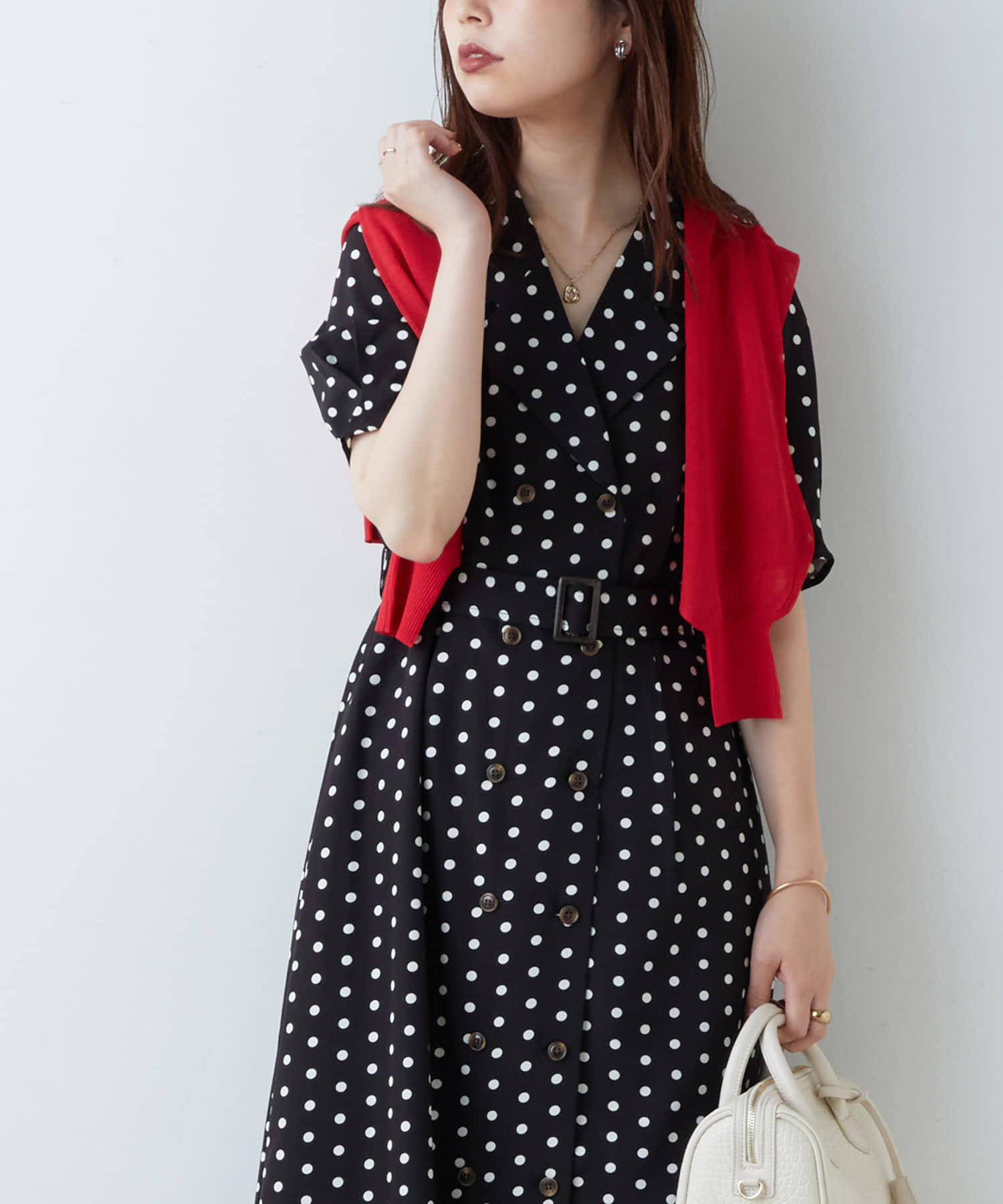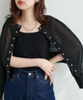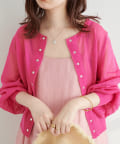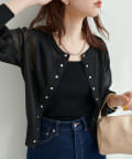 ゆとりのアームラインで腕周りを華奢見せしてくれ、シルバーのドット釦がトレンドライクな1品。