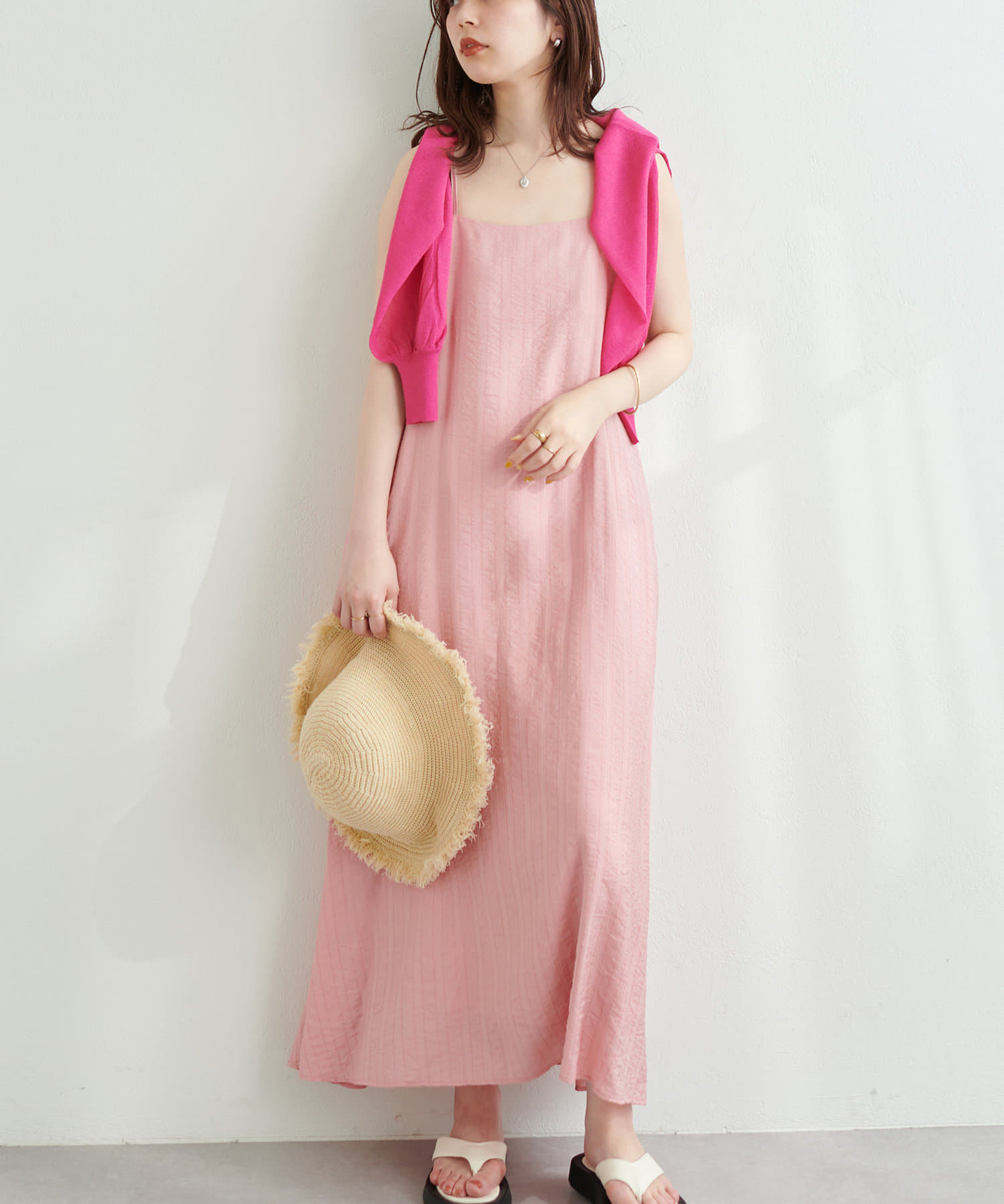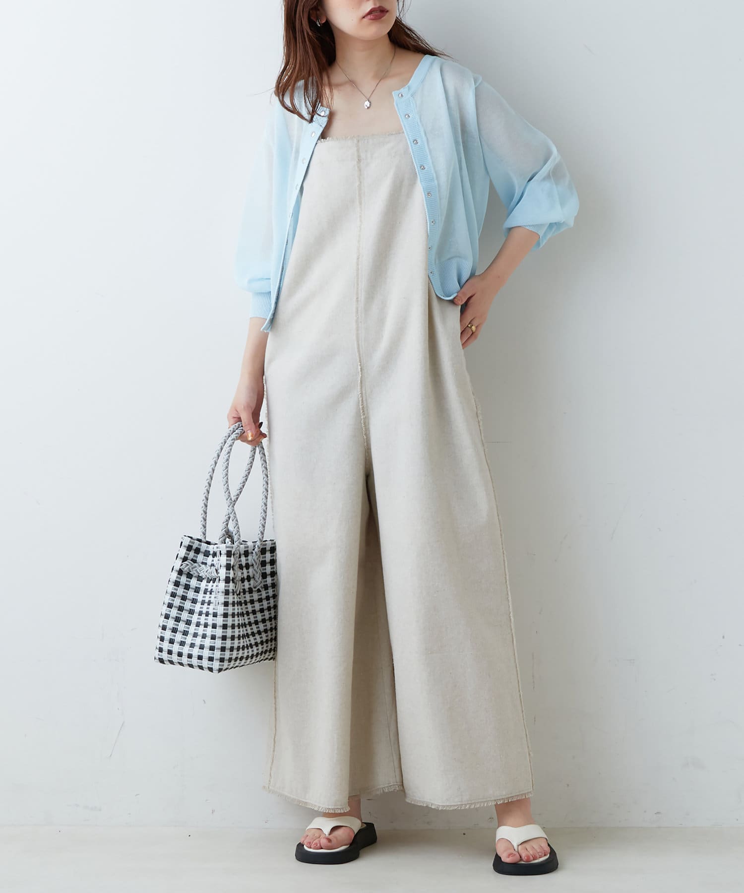 キャミワンピースやサロペットなどにさっと羽織っても◎