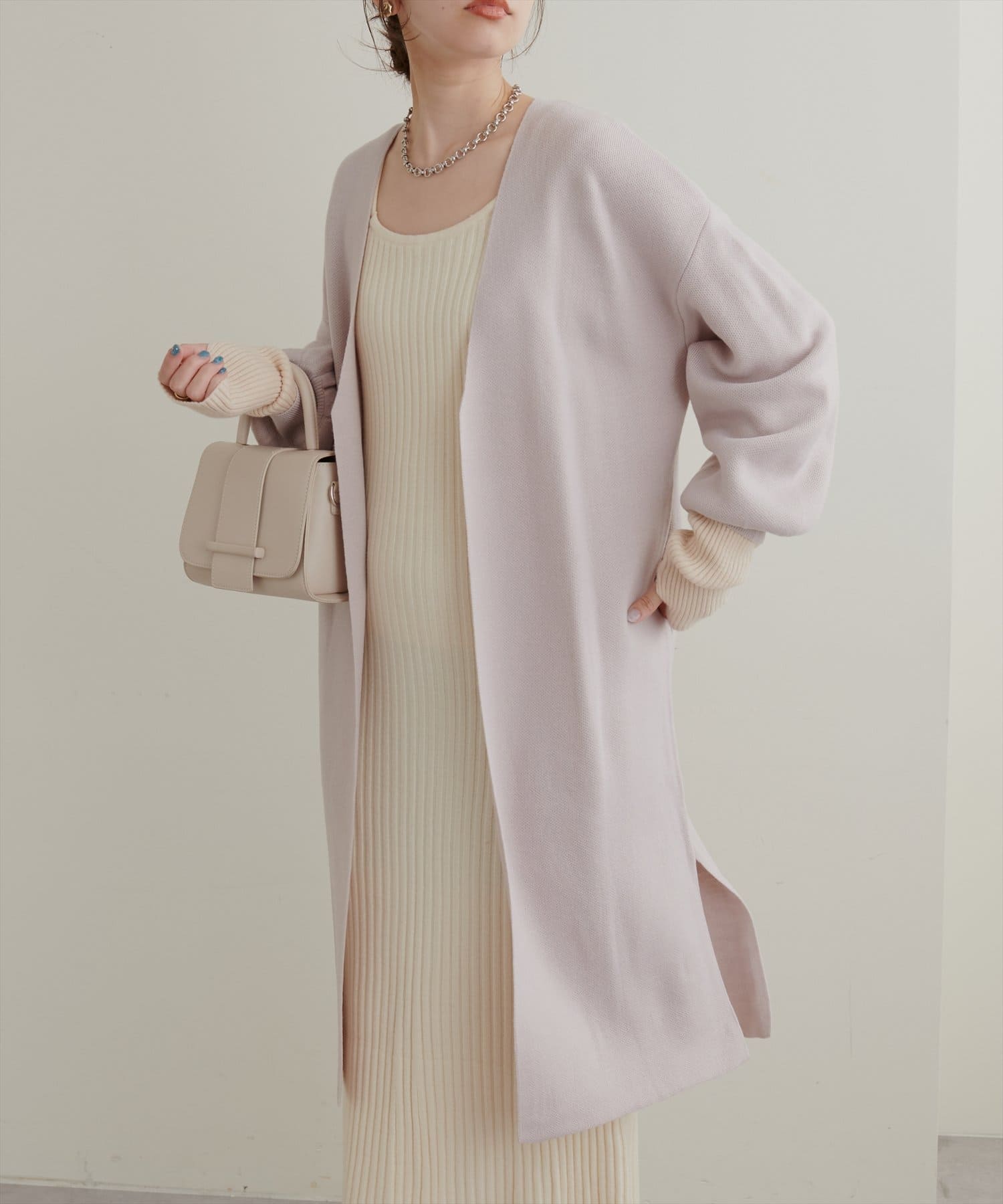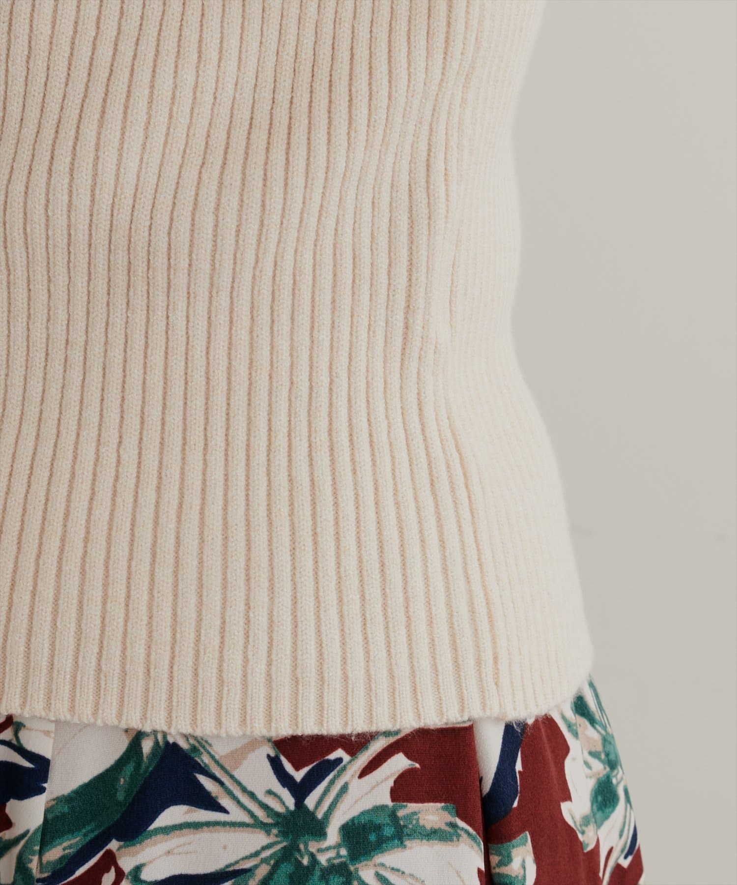 やや表面感のあるリブ使いのニット地は、程良い伸縮性と柔らかな着心地のものを採用しました。