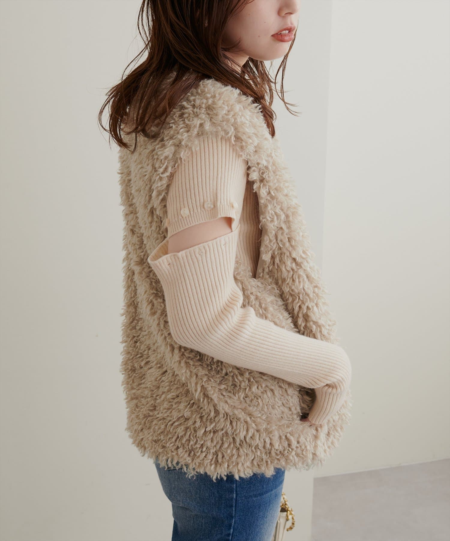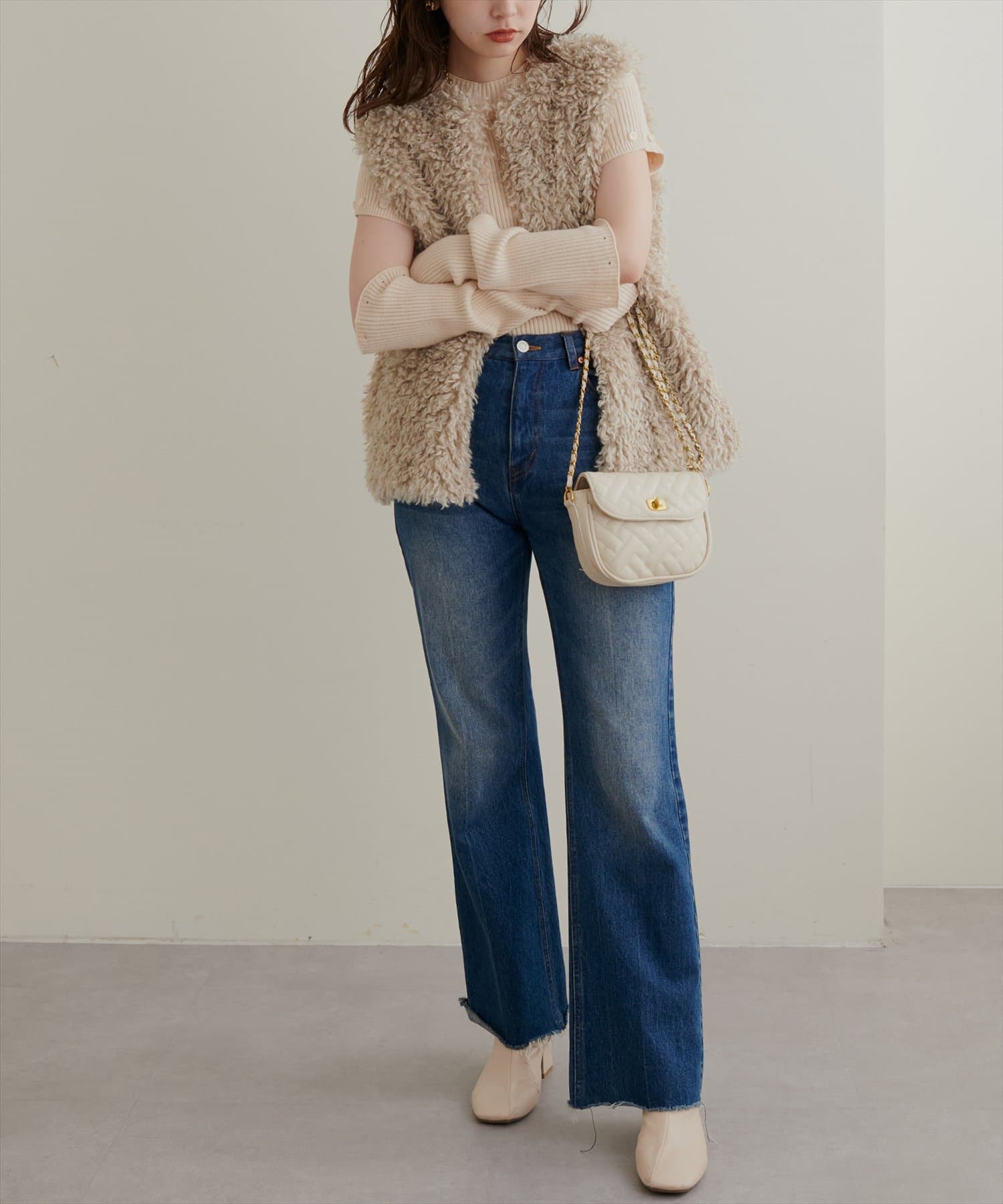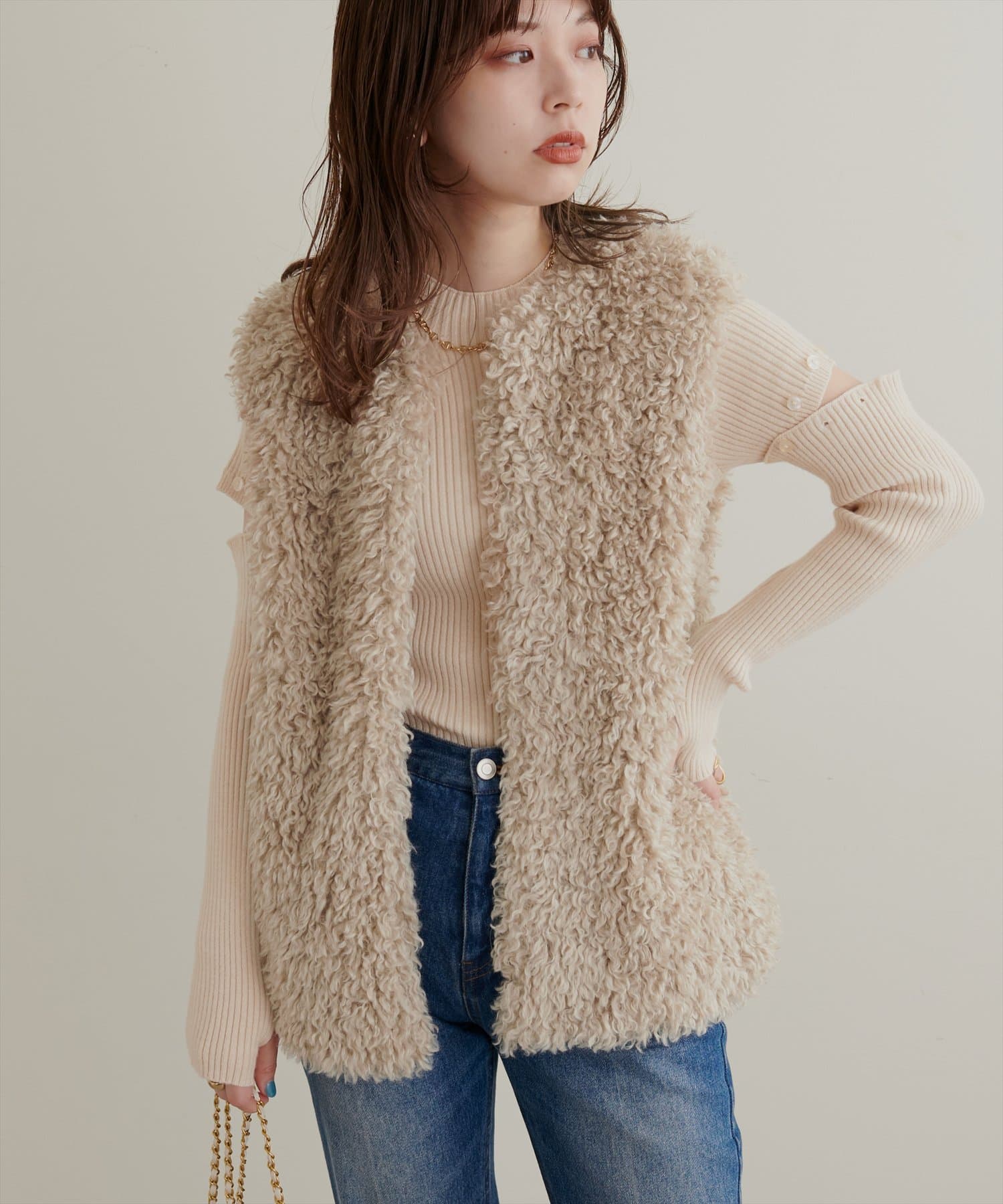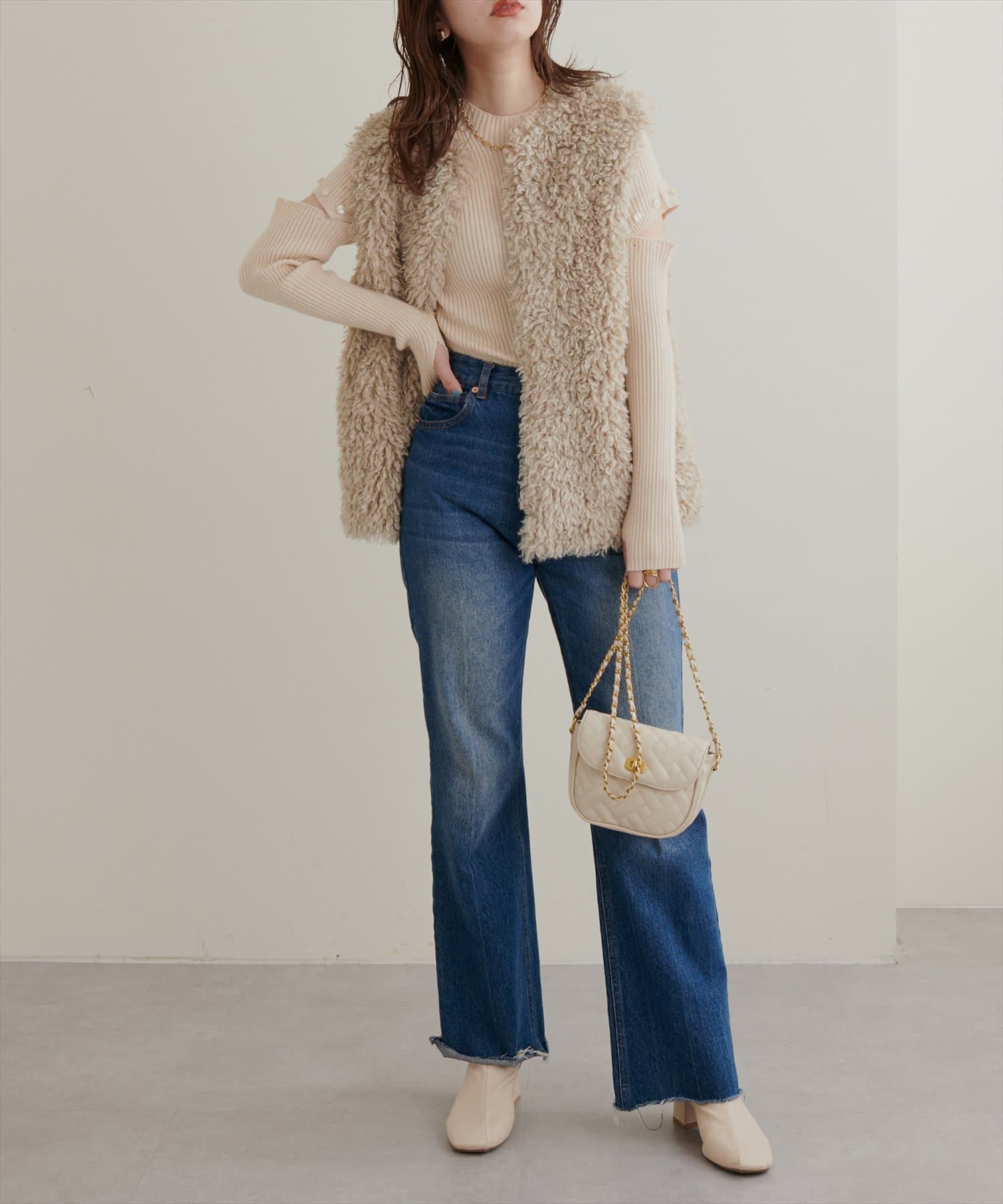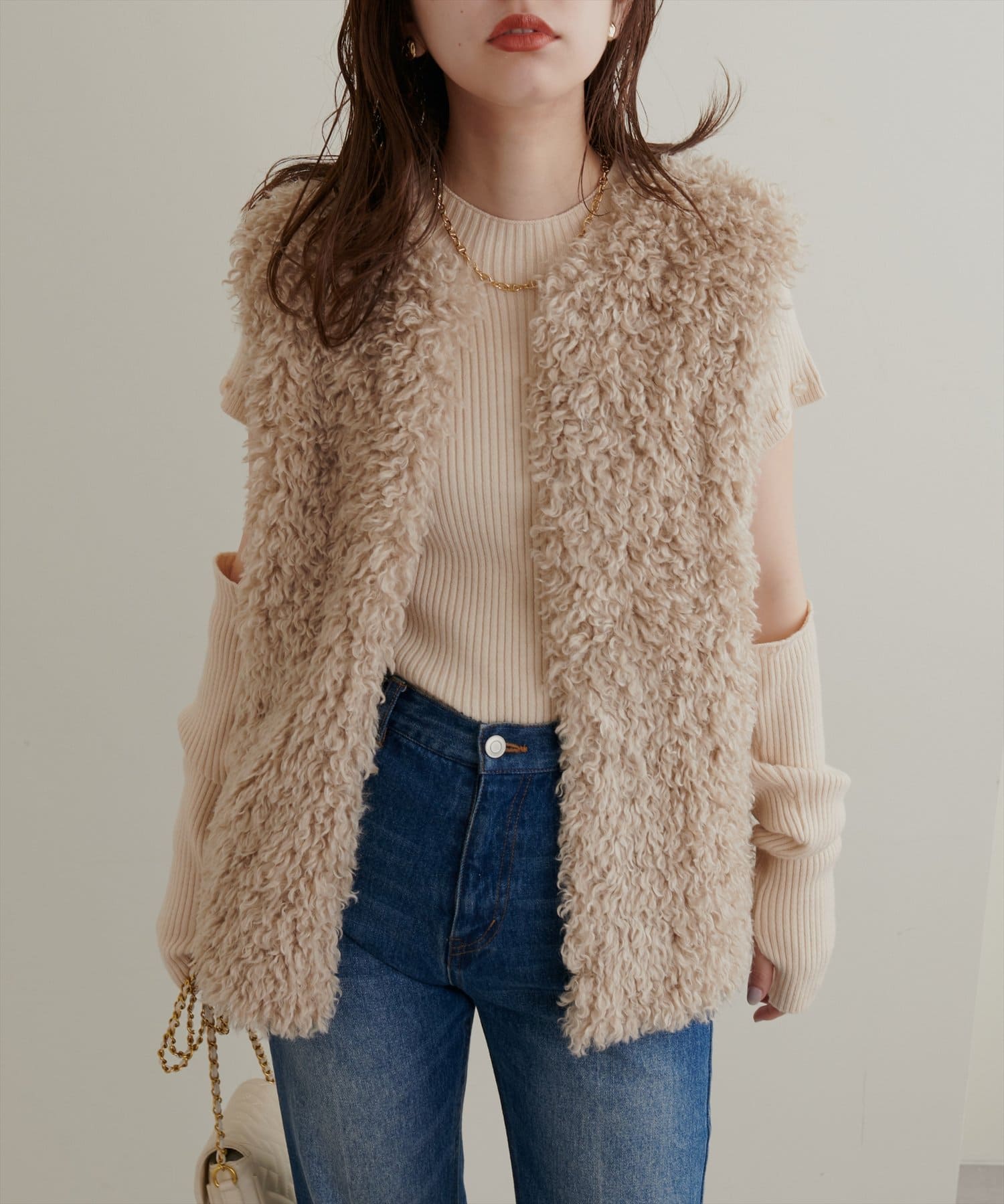 ファー素材のベスト合わせでウォーム感をプラスしても◎