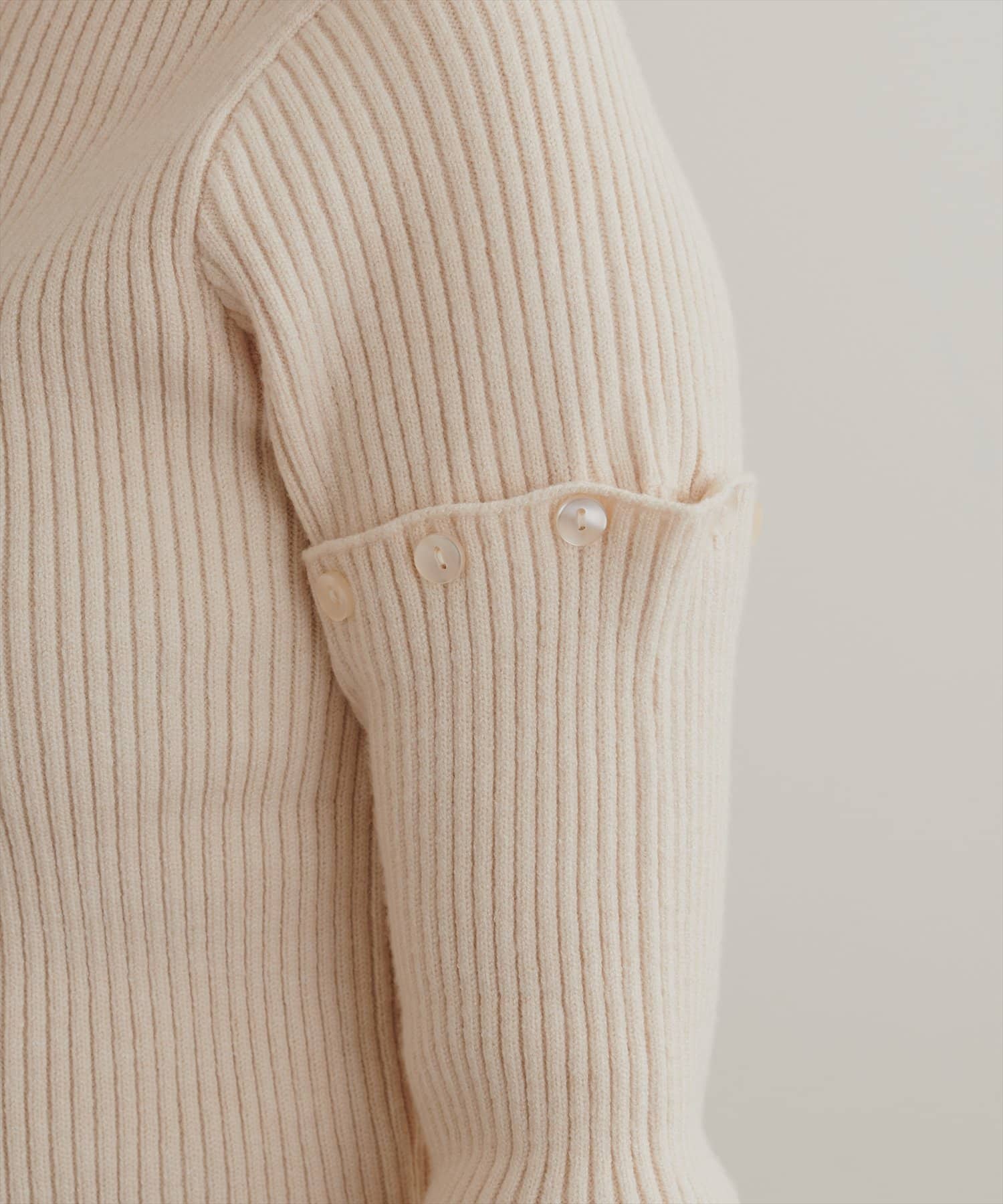 袖部分を取り外して、半袖ニットとしてお召し頂いたり、袖部分はアームウォーマーとしても使用して頂けます。