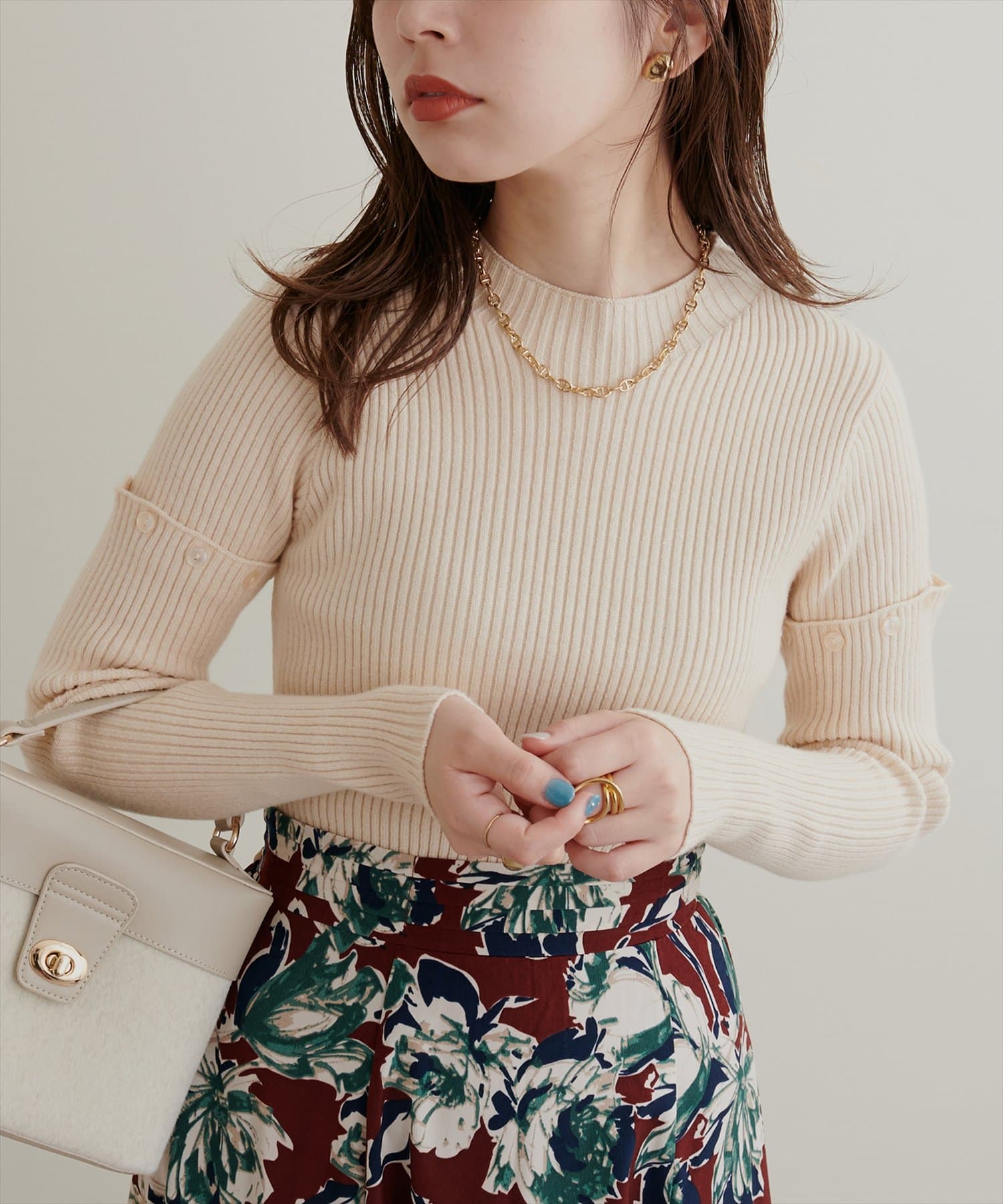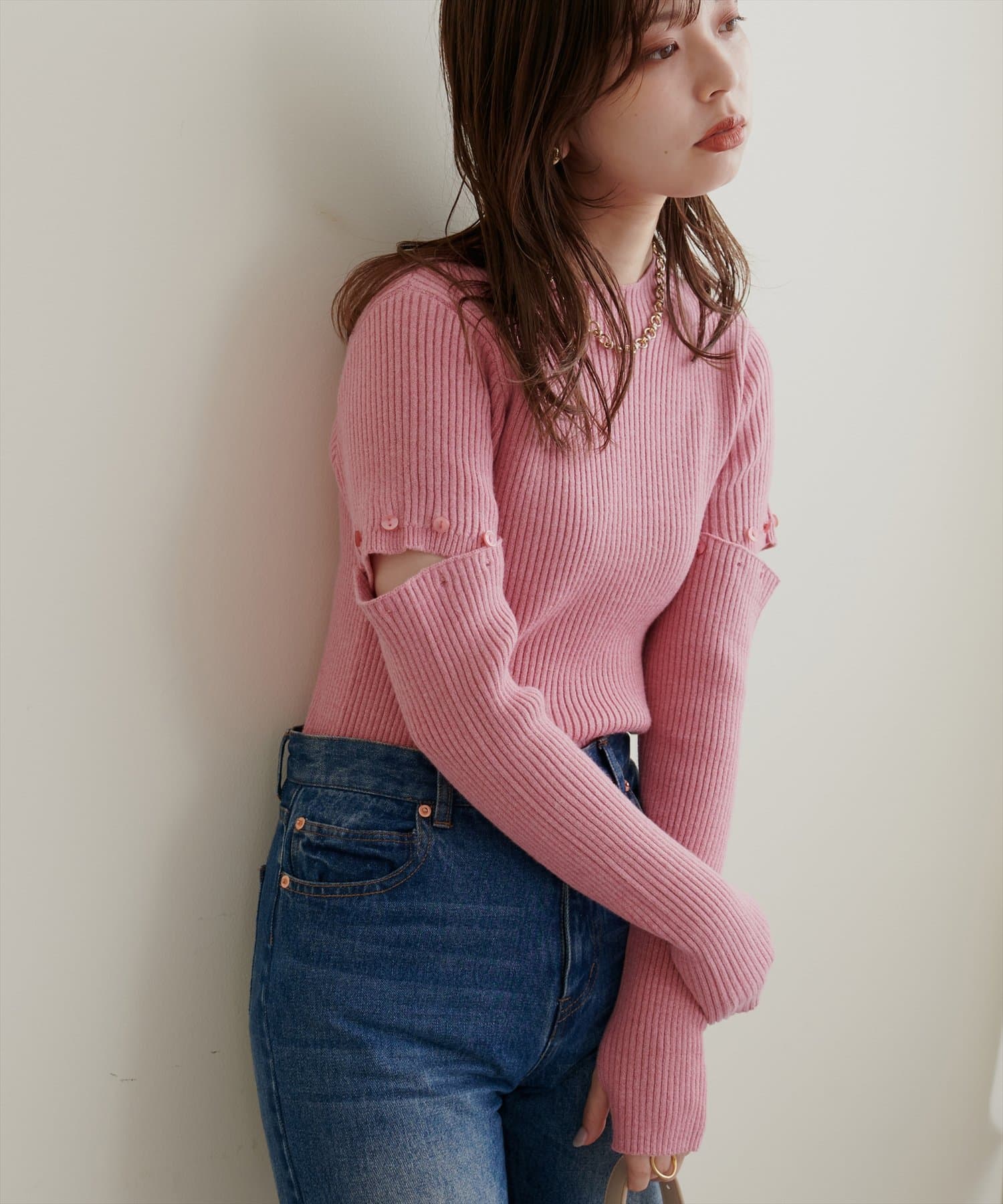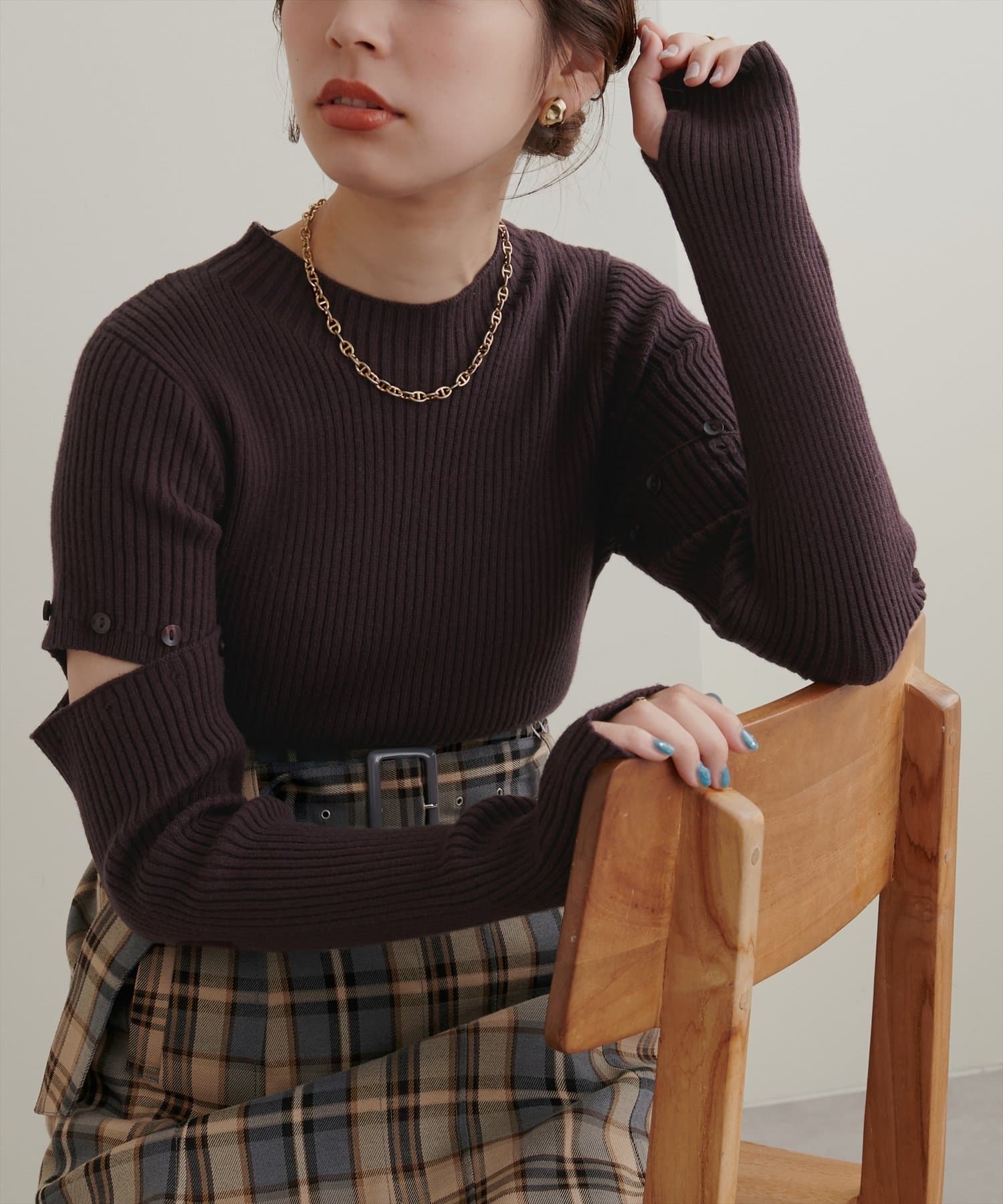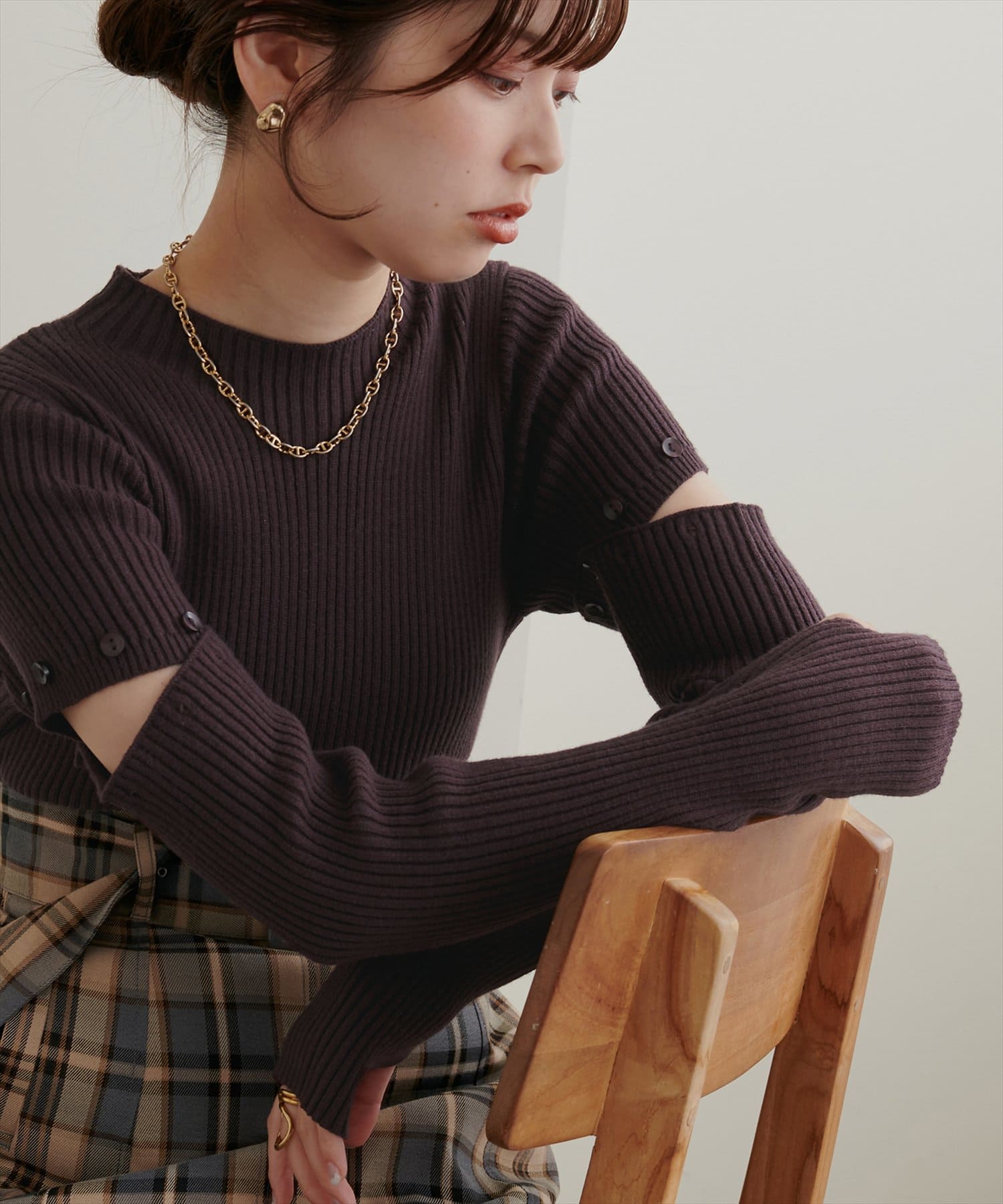 今季注目のアームウォーマー仕様の、袖が取り外せるニットプルオーバー。