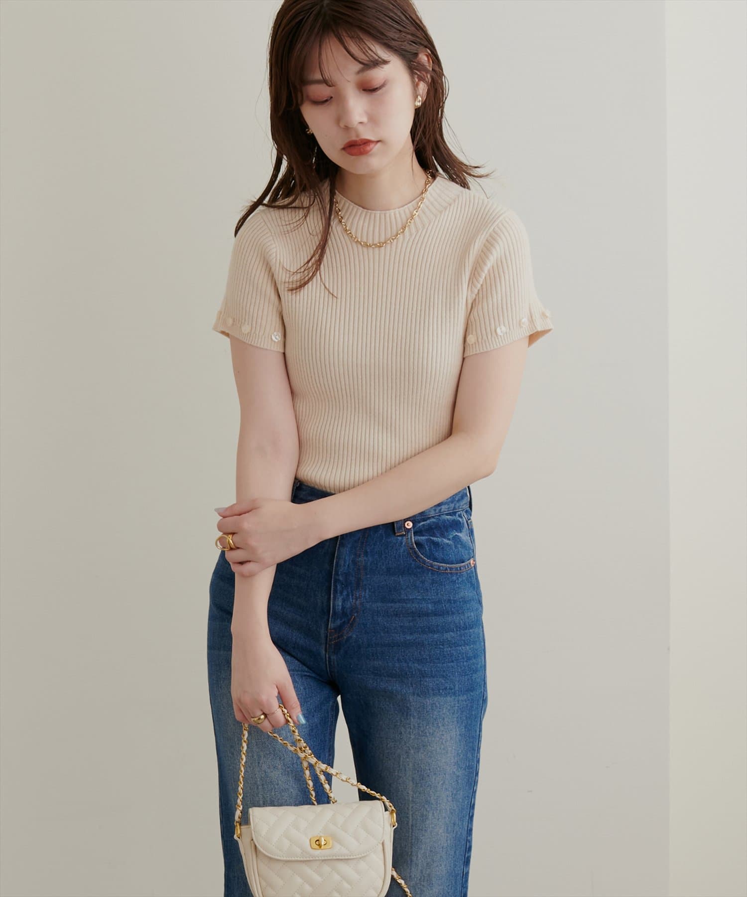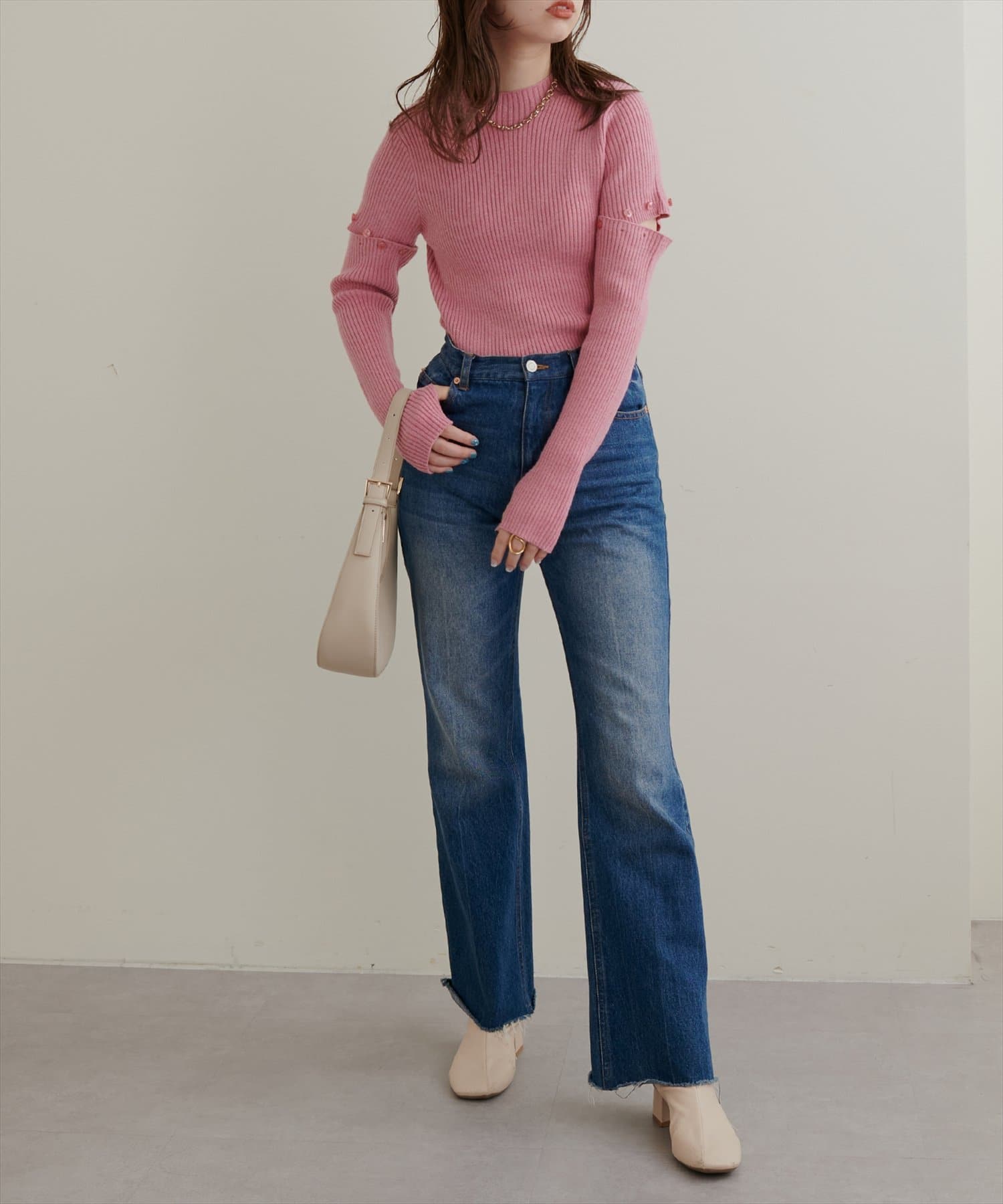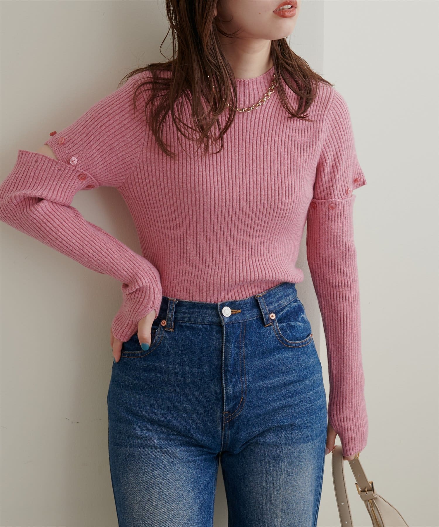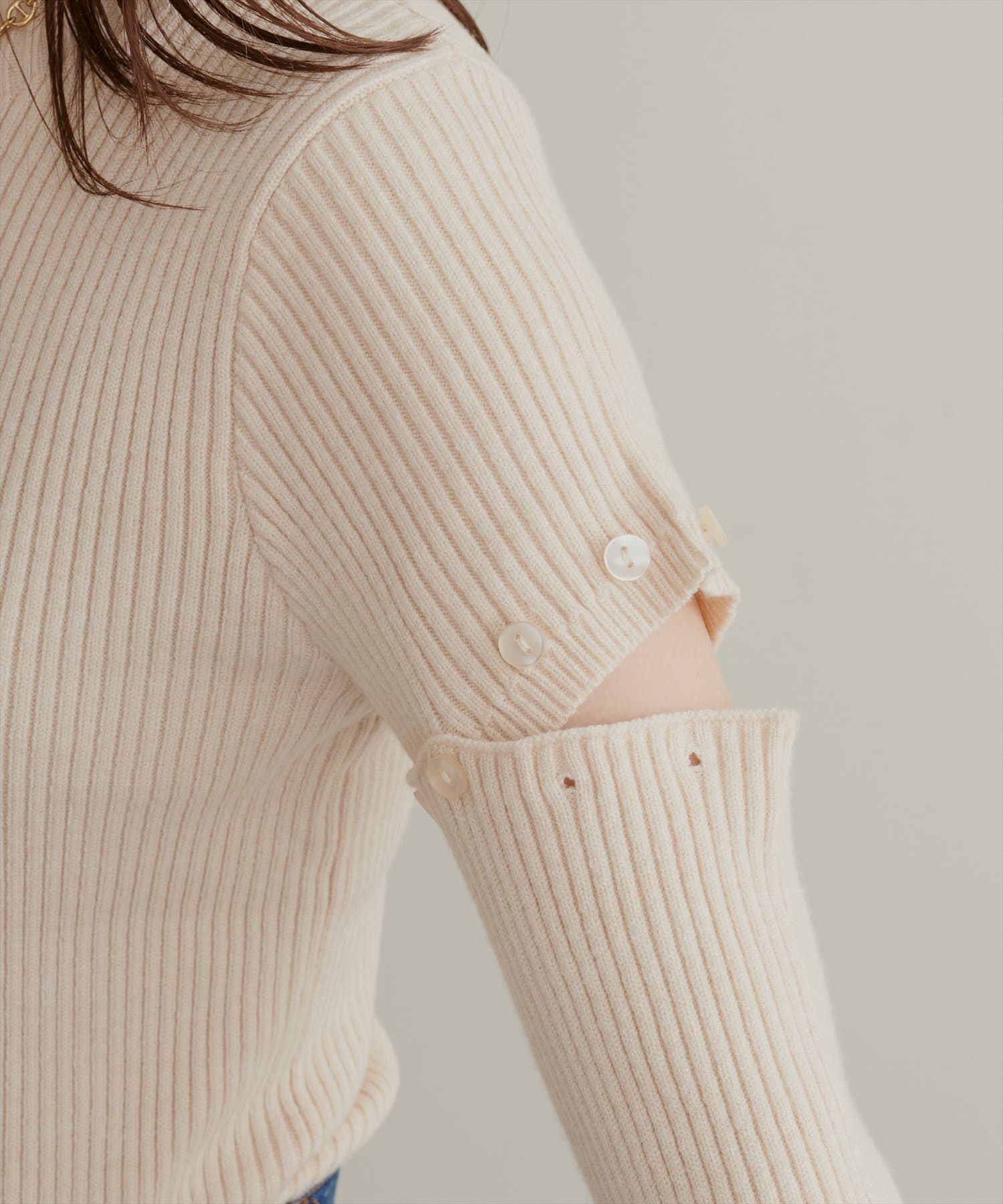 今季注目のアームウォーマー仕様の、袖が取り外せるニットプルオーバー。