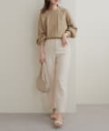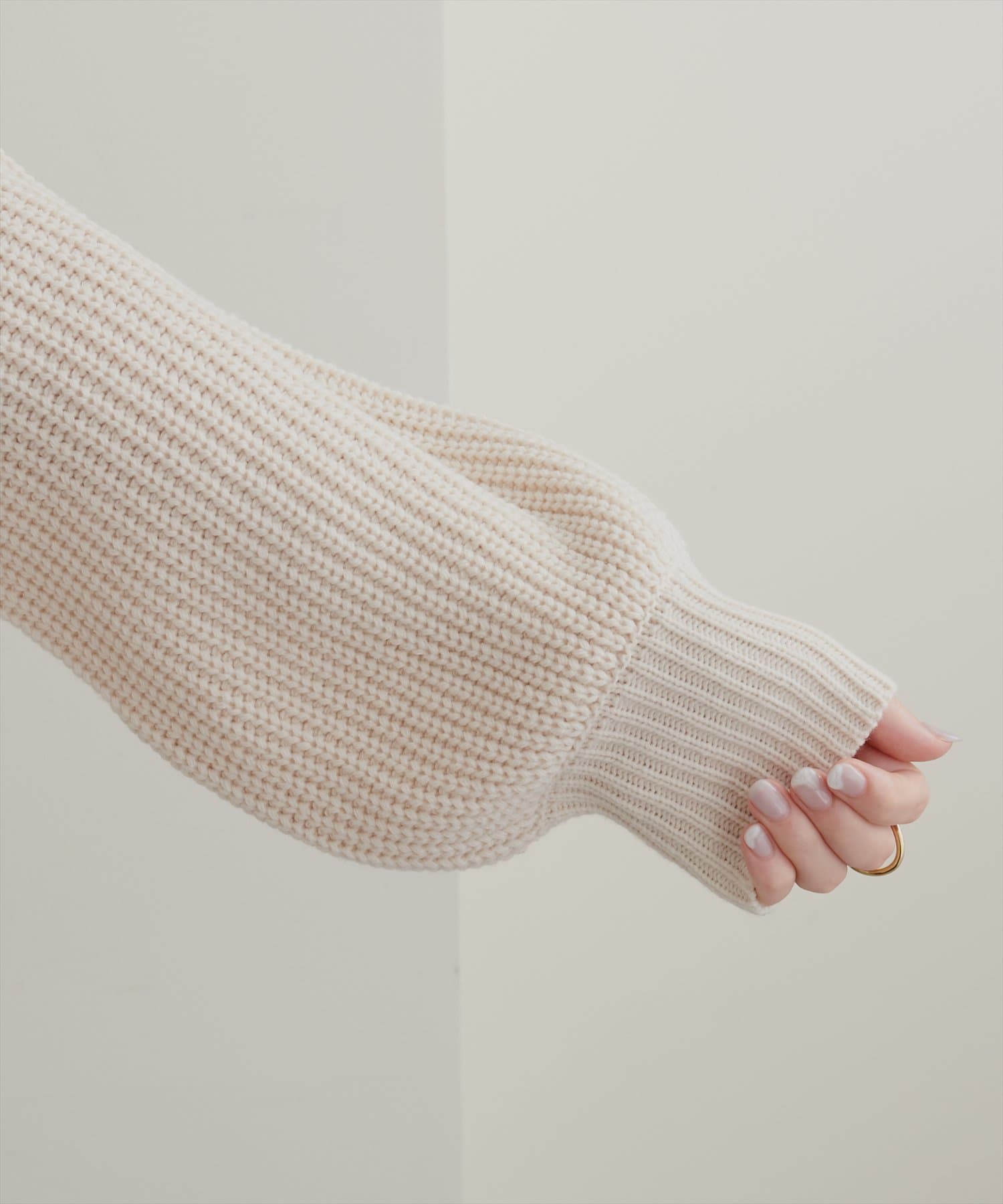ほのかにボリュームのあるお袖と裾のリブは、1枚で着用した際どの角度からでも女性らしく見えるポイント。