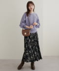 大きい柄のデザインスカート合わせで、上品にコーディネートすることもできます。