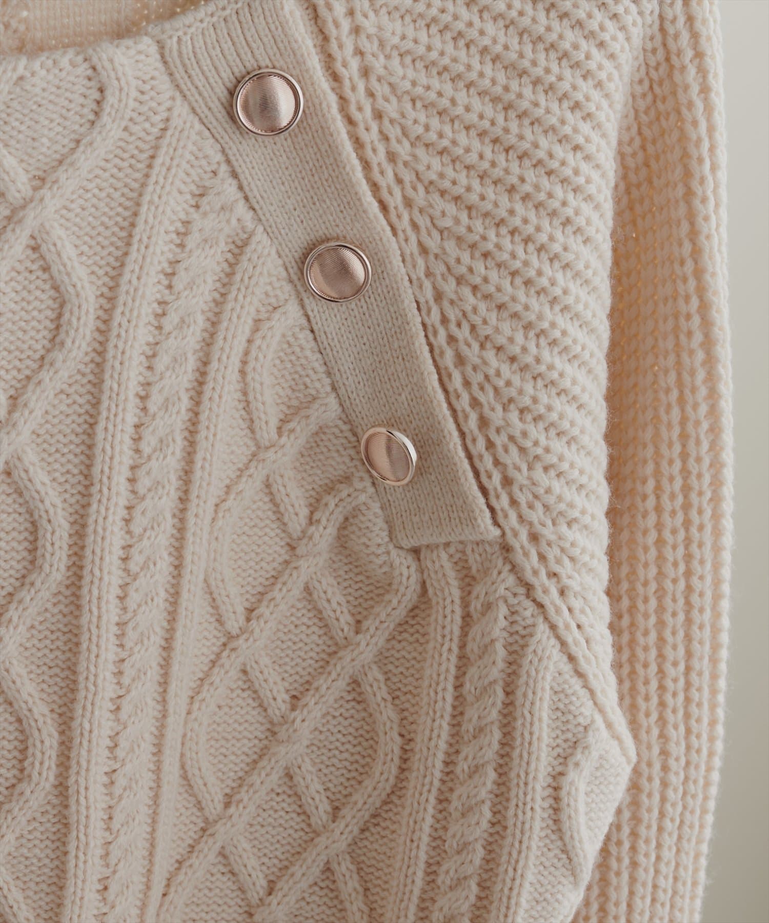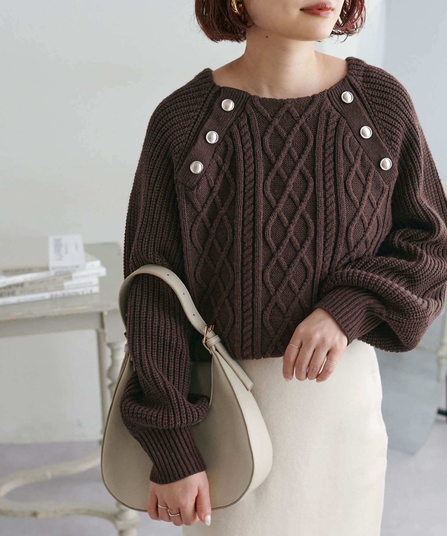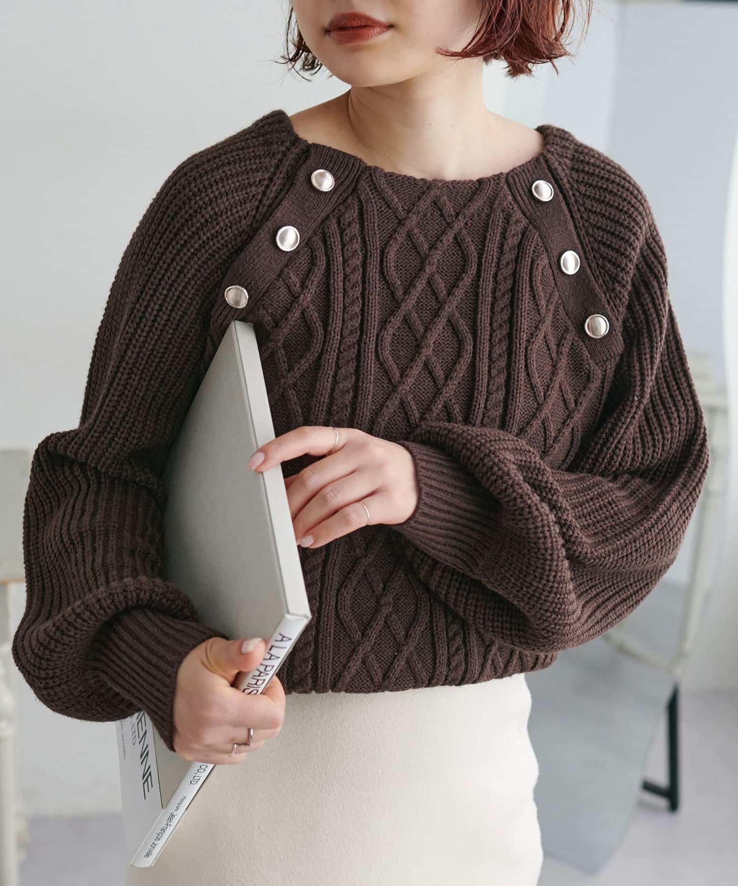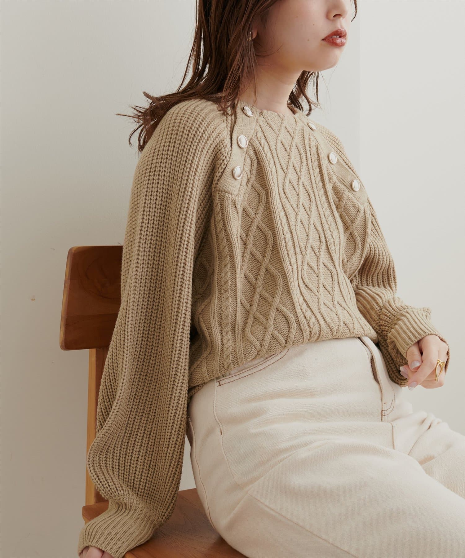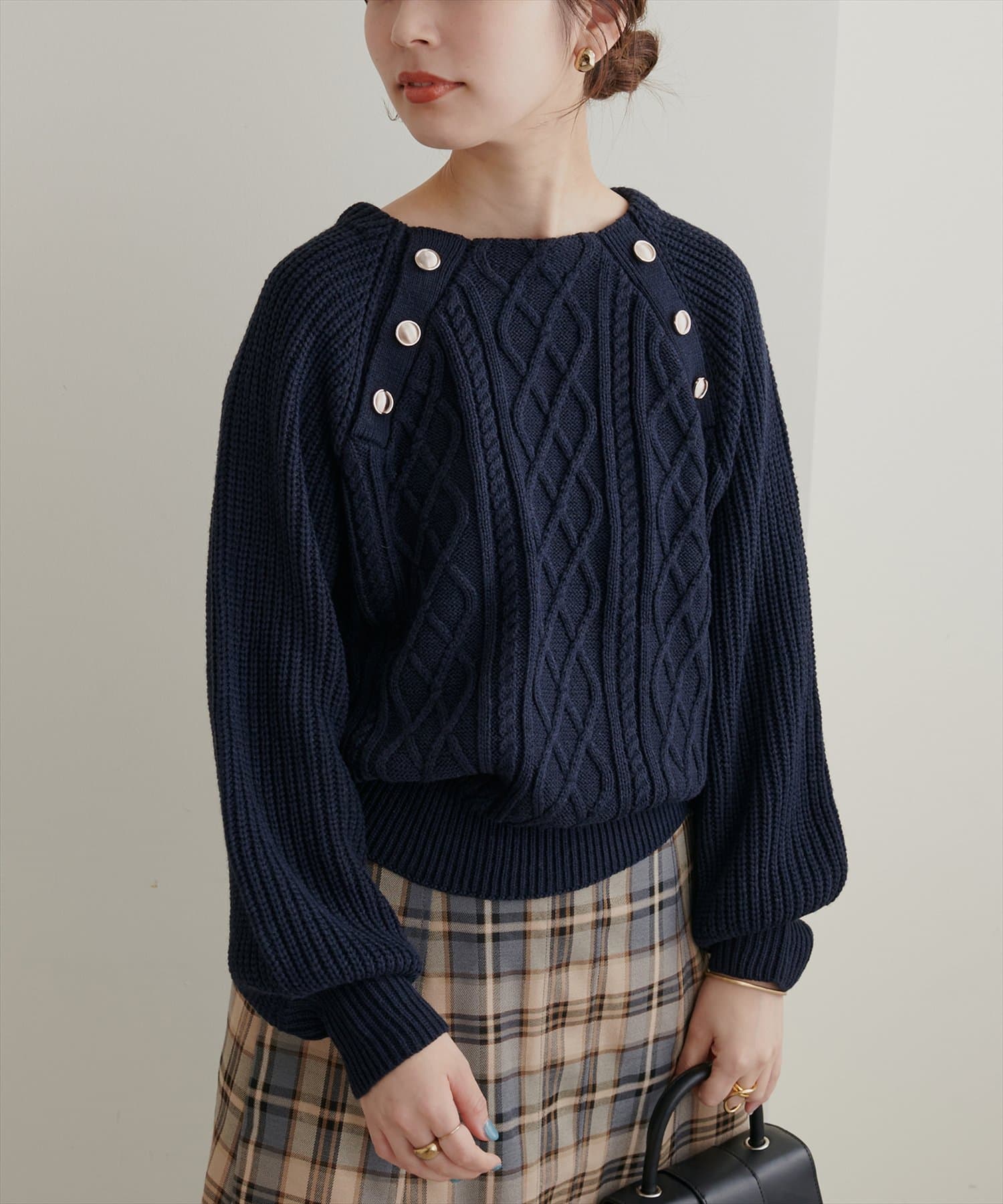 WEB限定/2022AWアイテム/釦デザインケーブルニット
