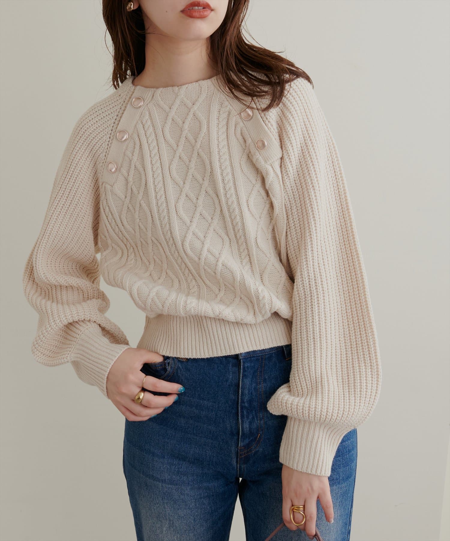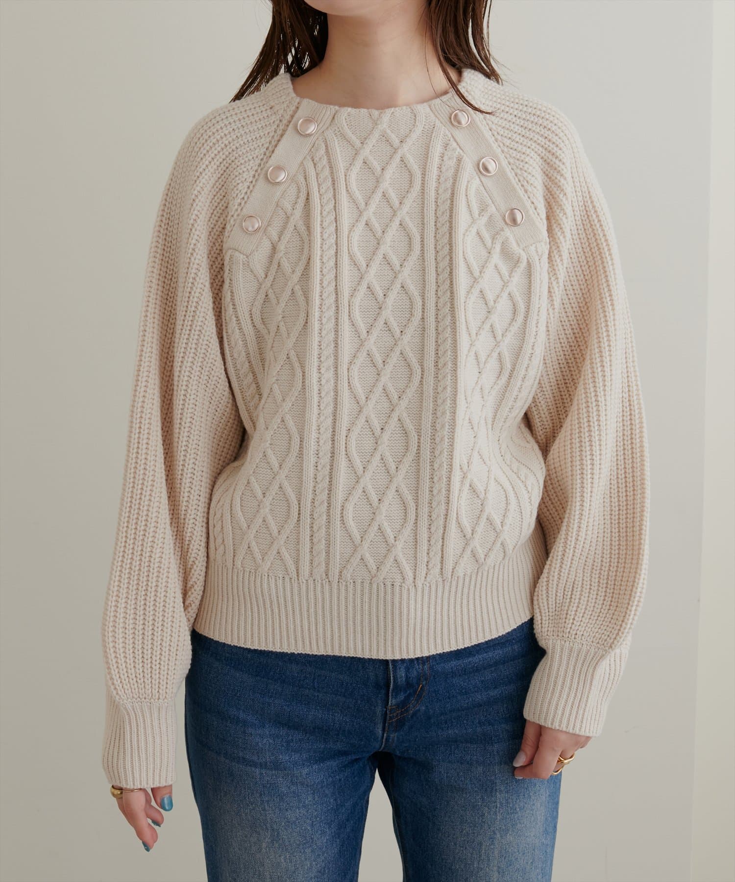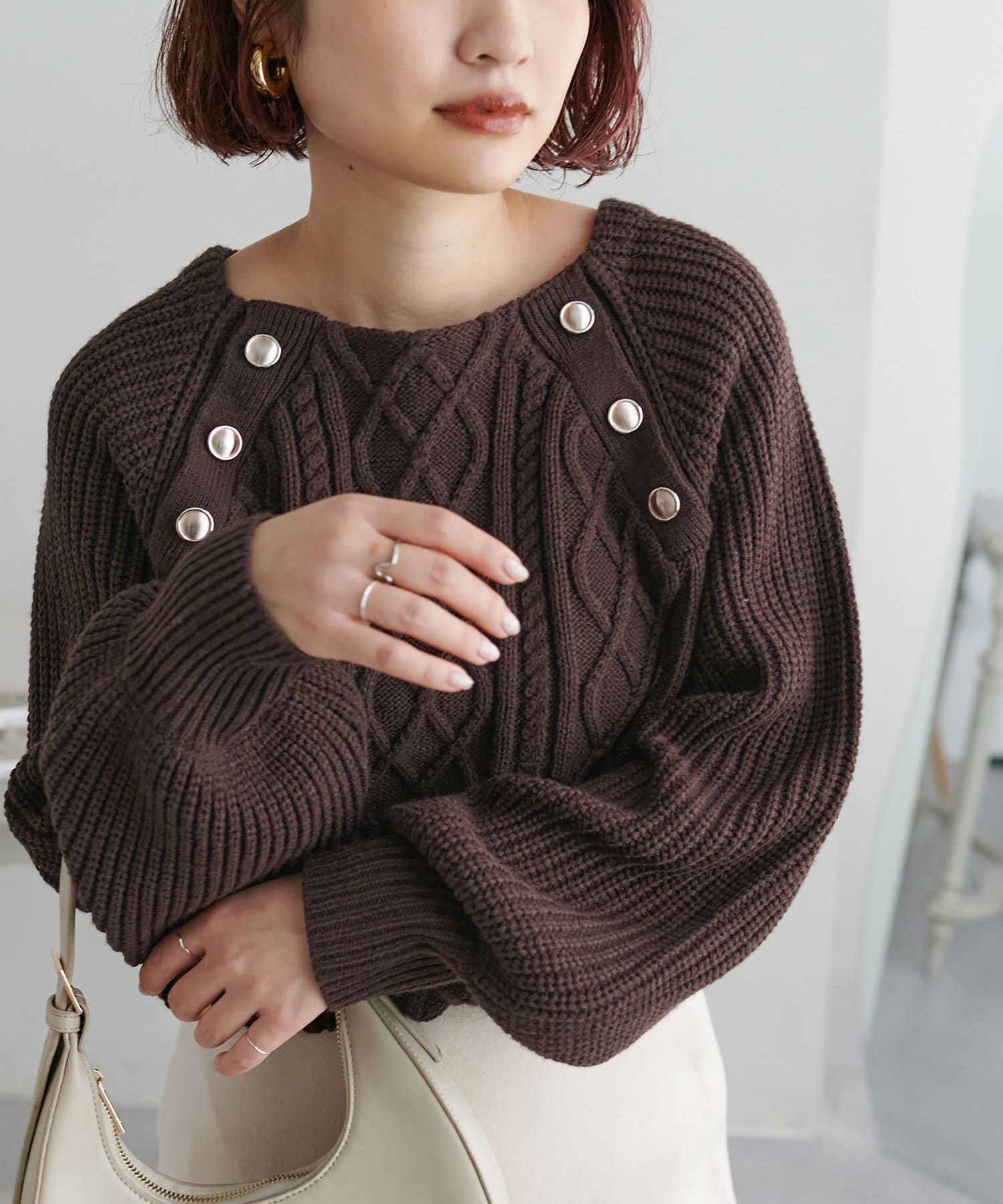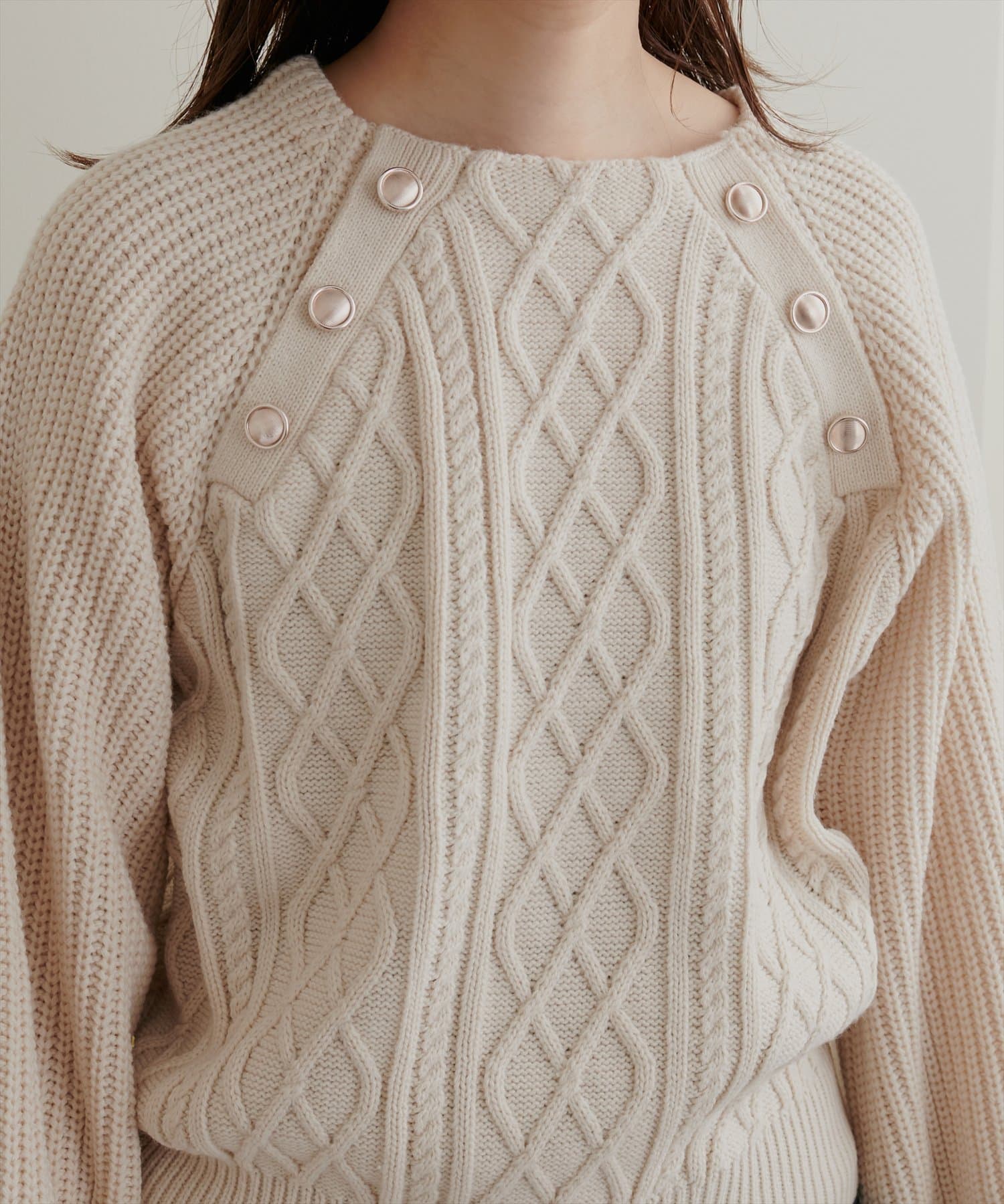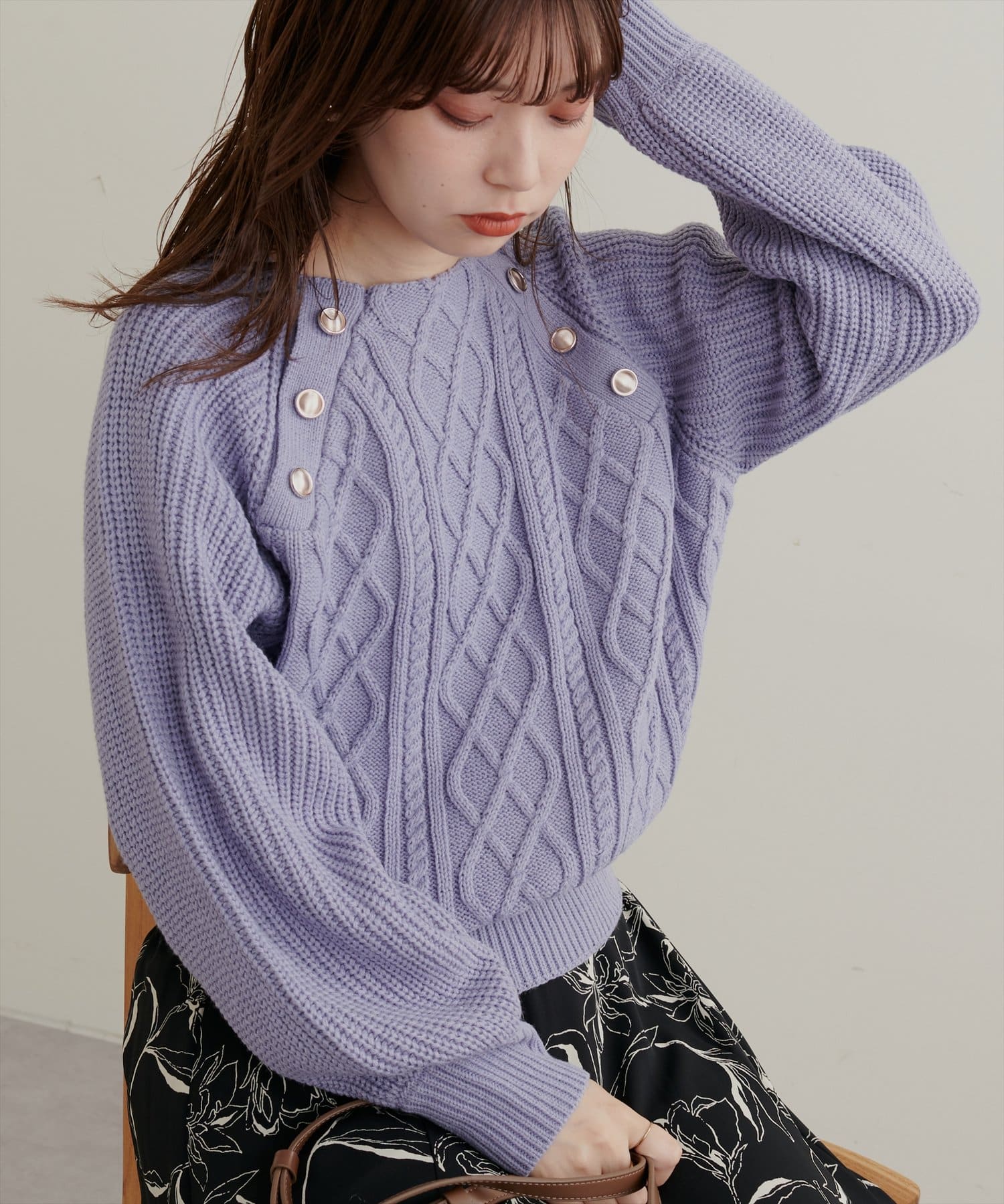 WEB限定/2022AWアイテム/釦デザインケーブルニット