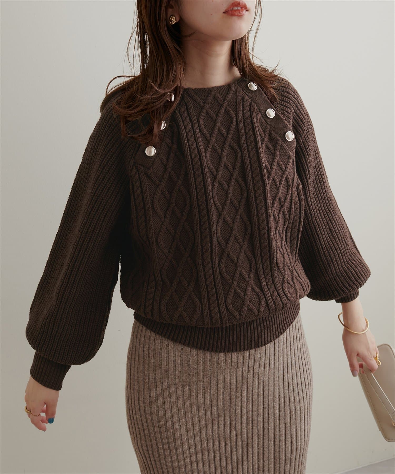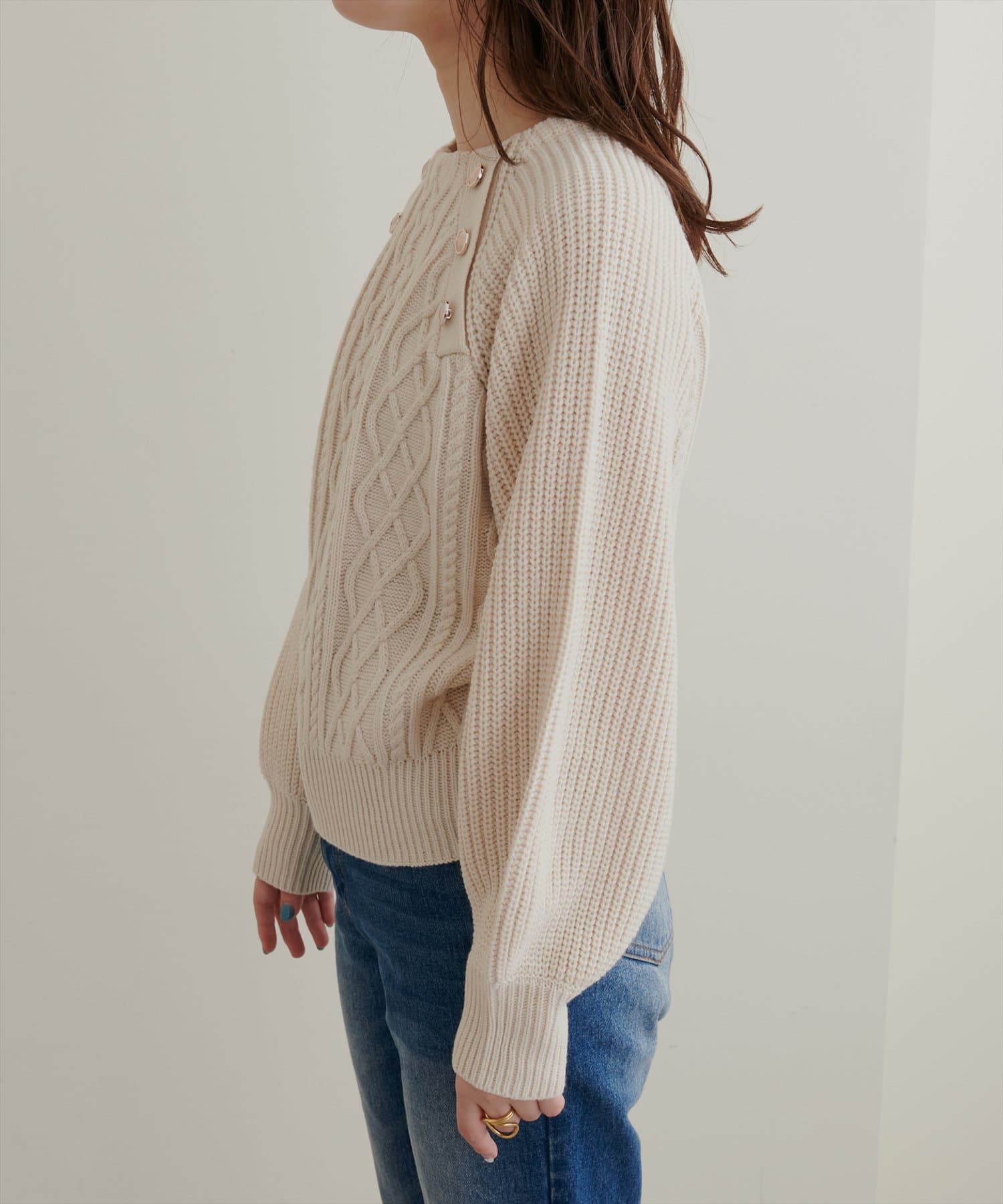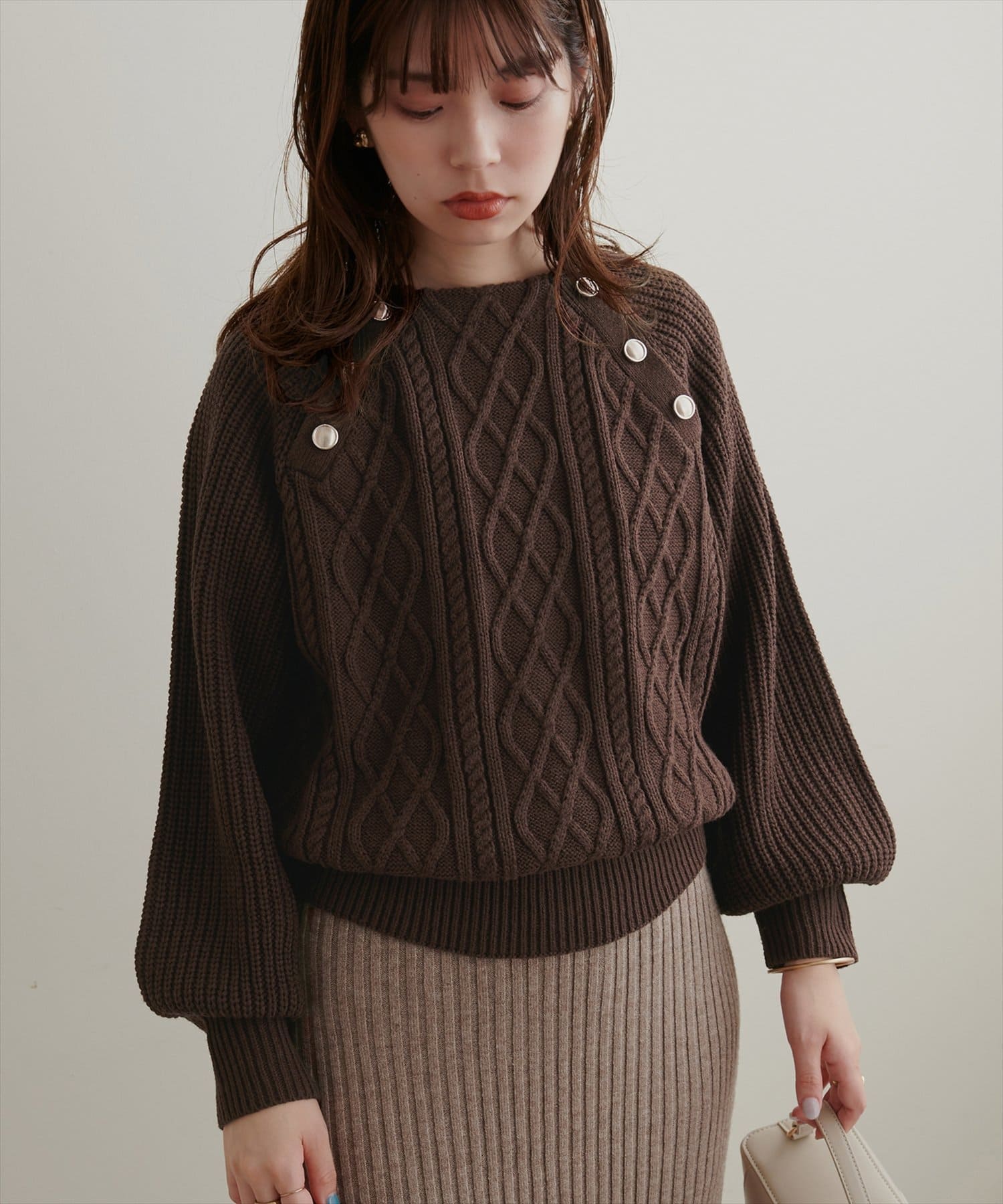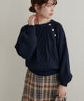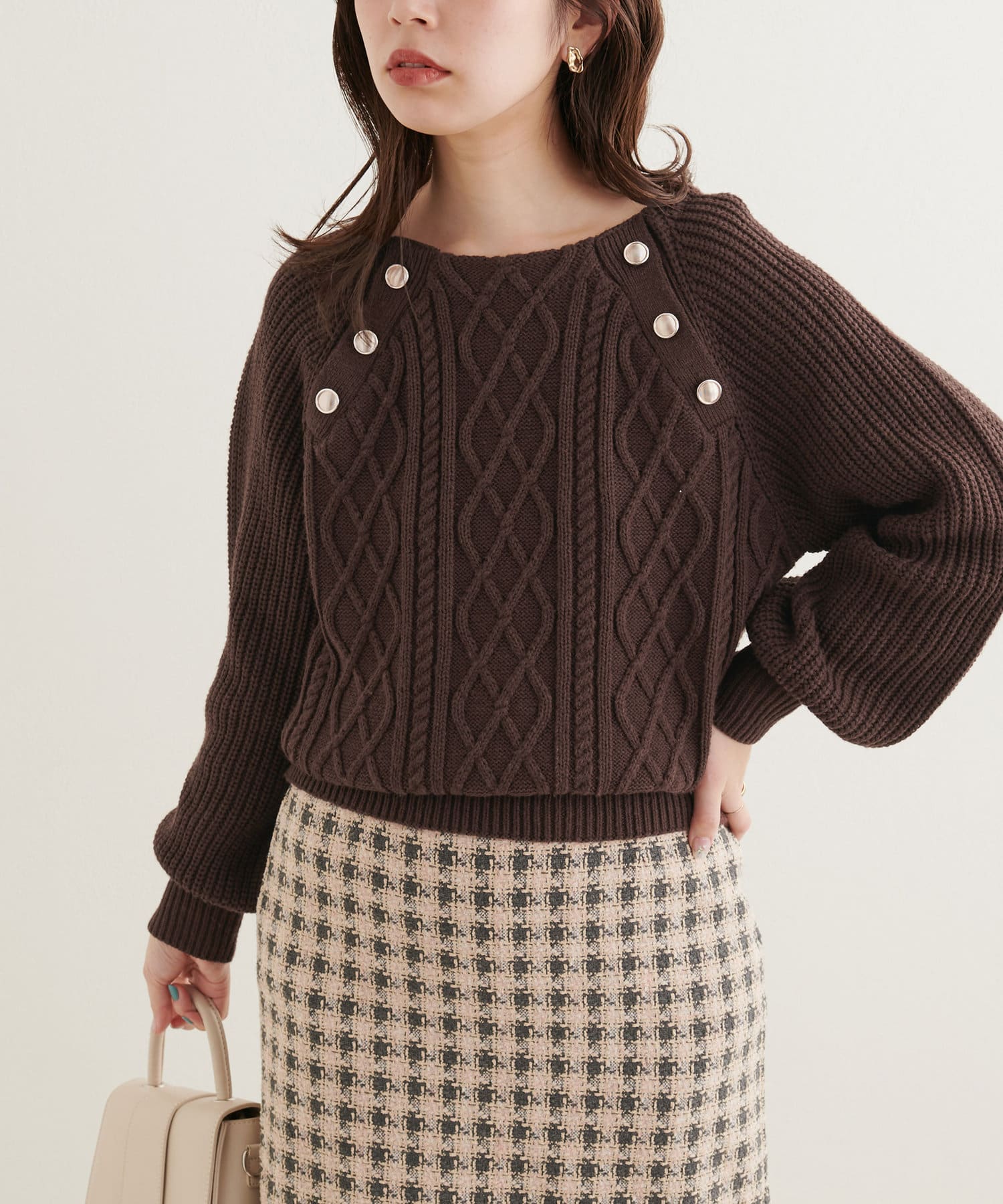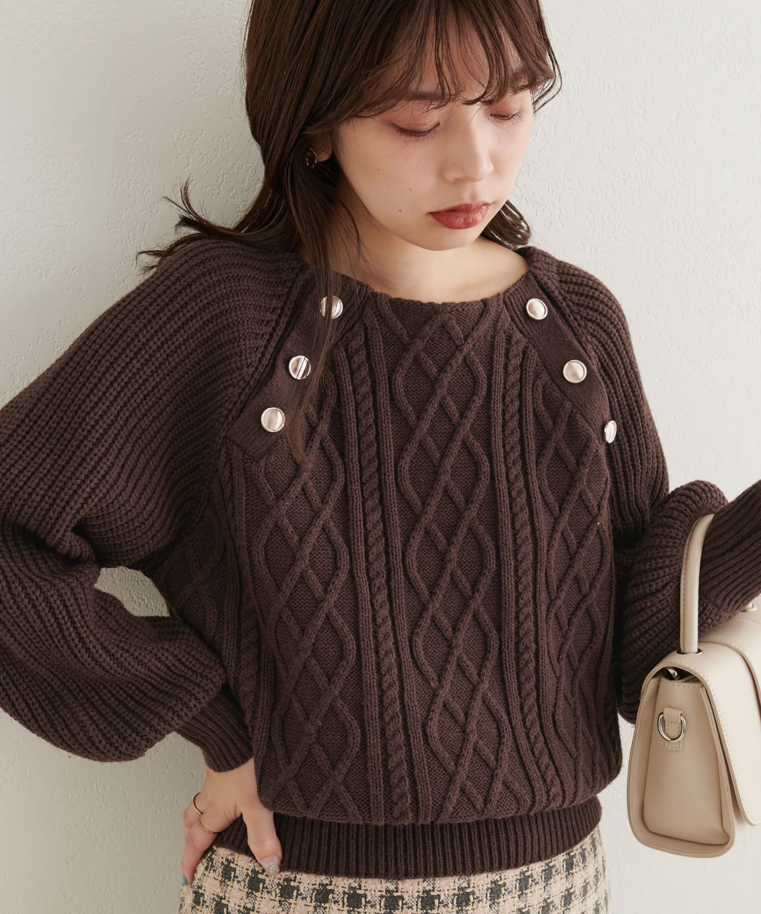 WEB限定/2022AWアイテム/釦デザインケーブルニット