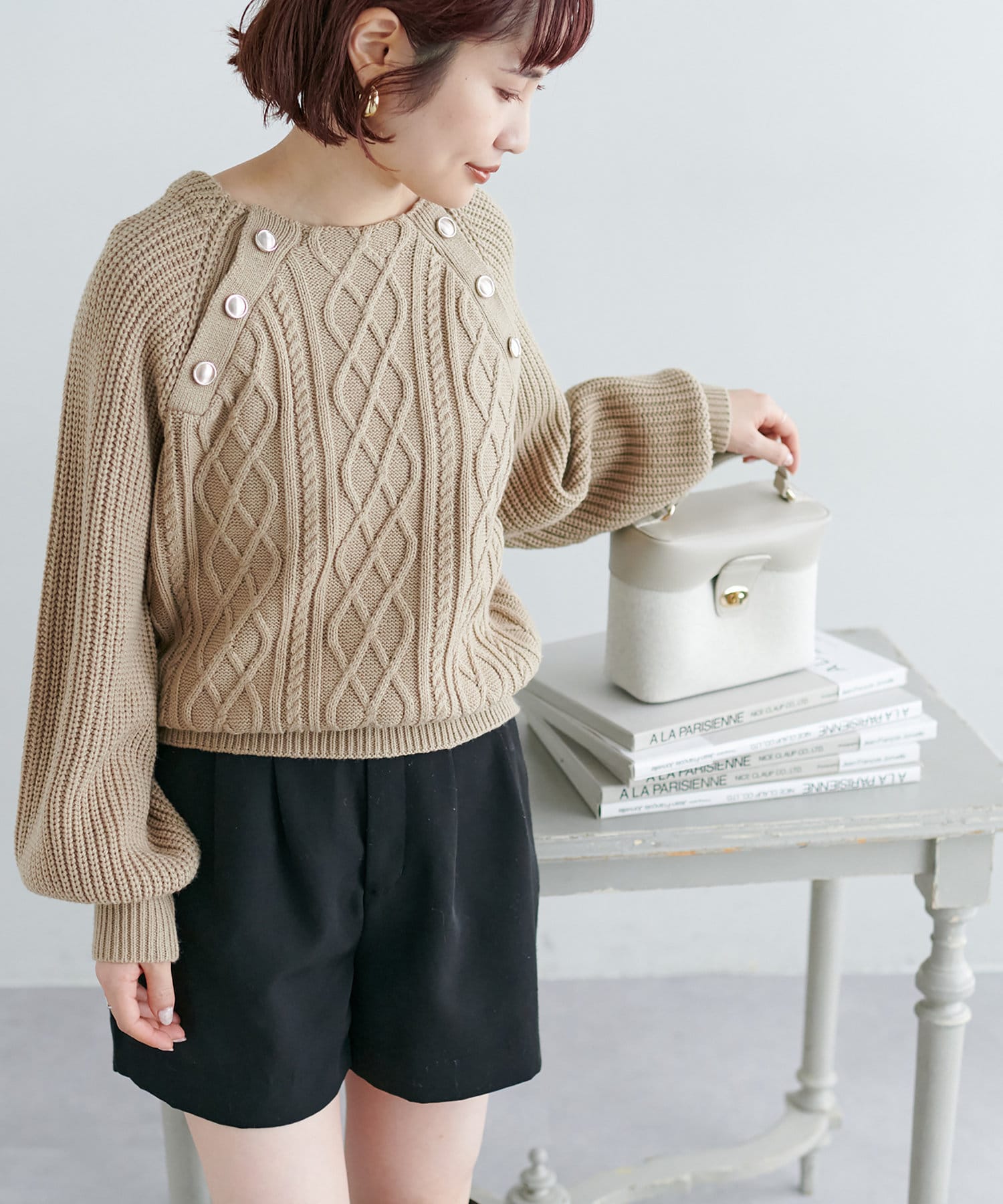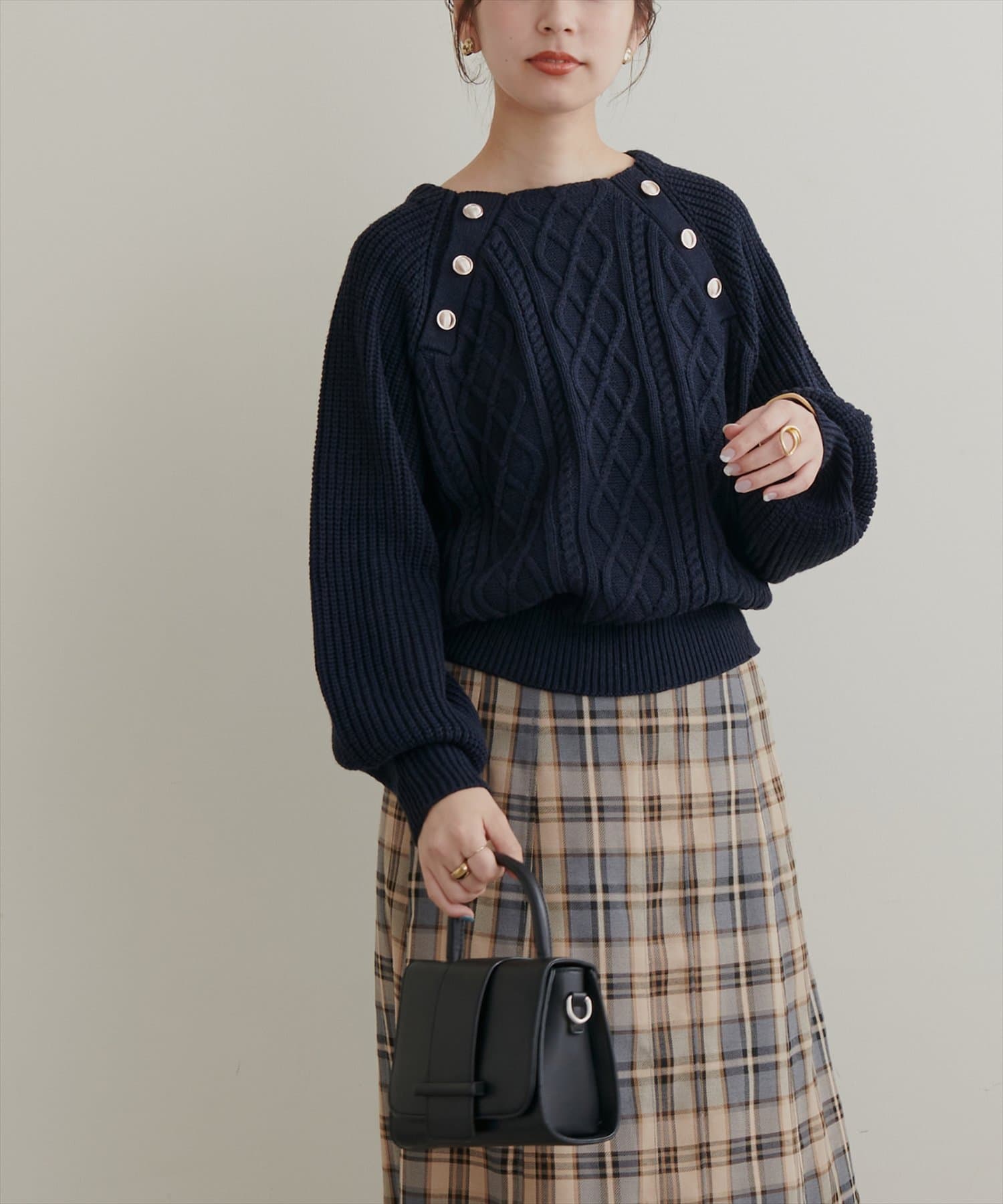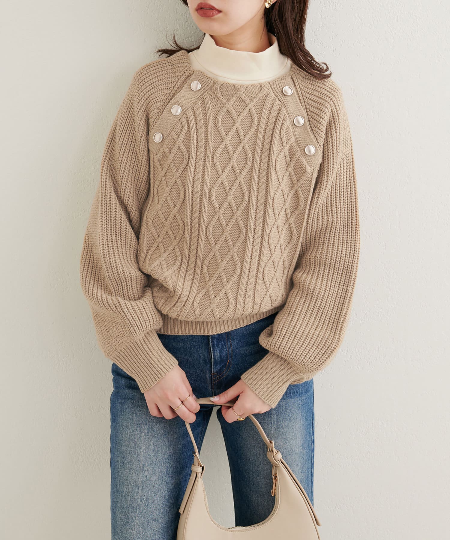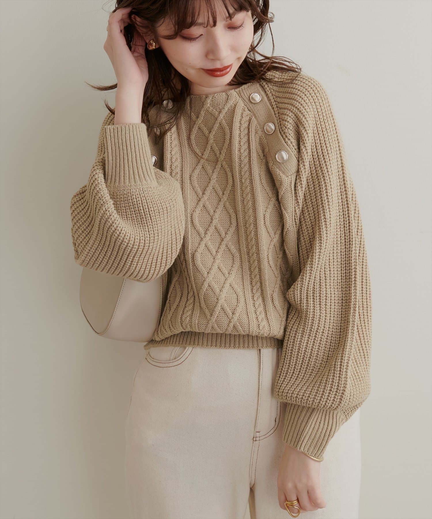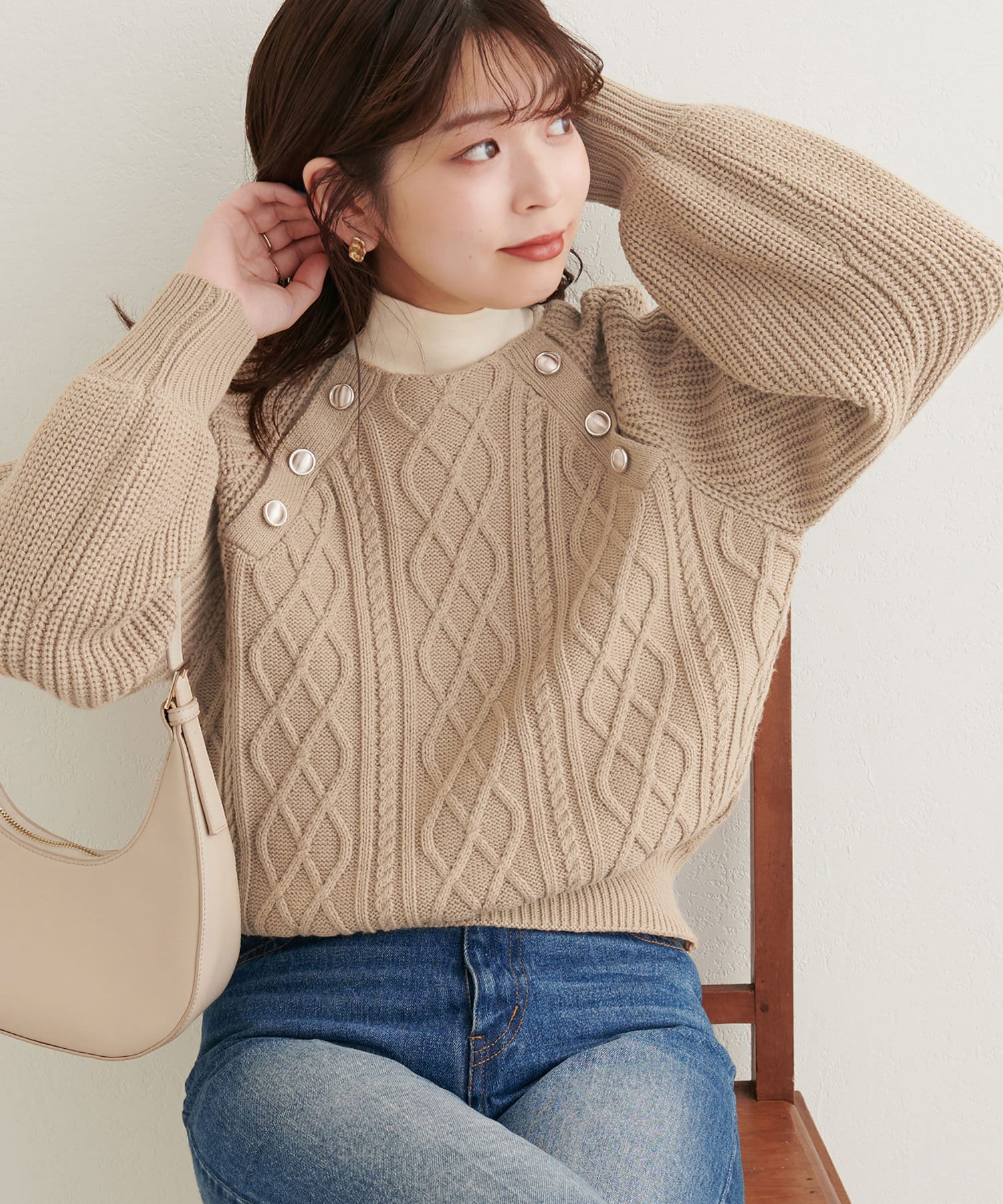 WEB限定/2022AWアイテム/釦デザインケーブルニット