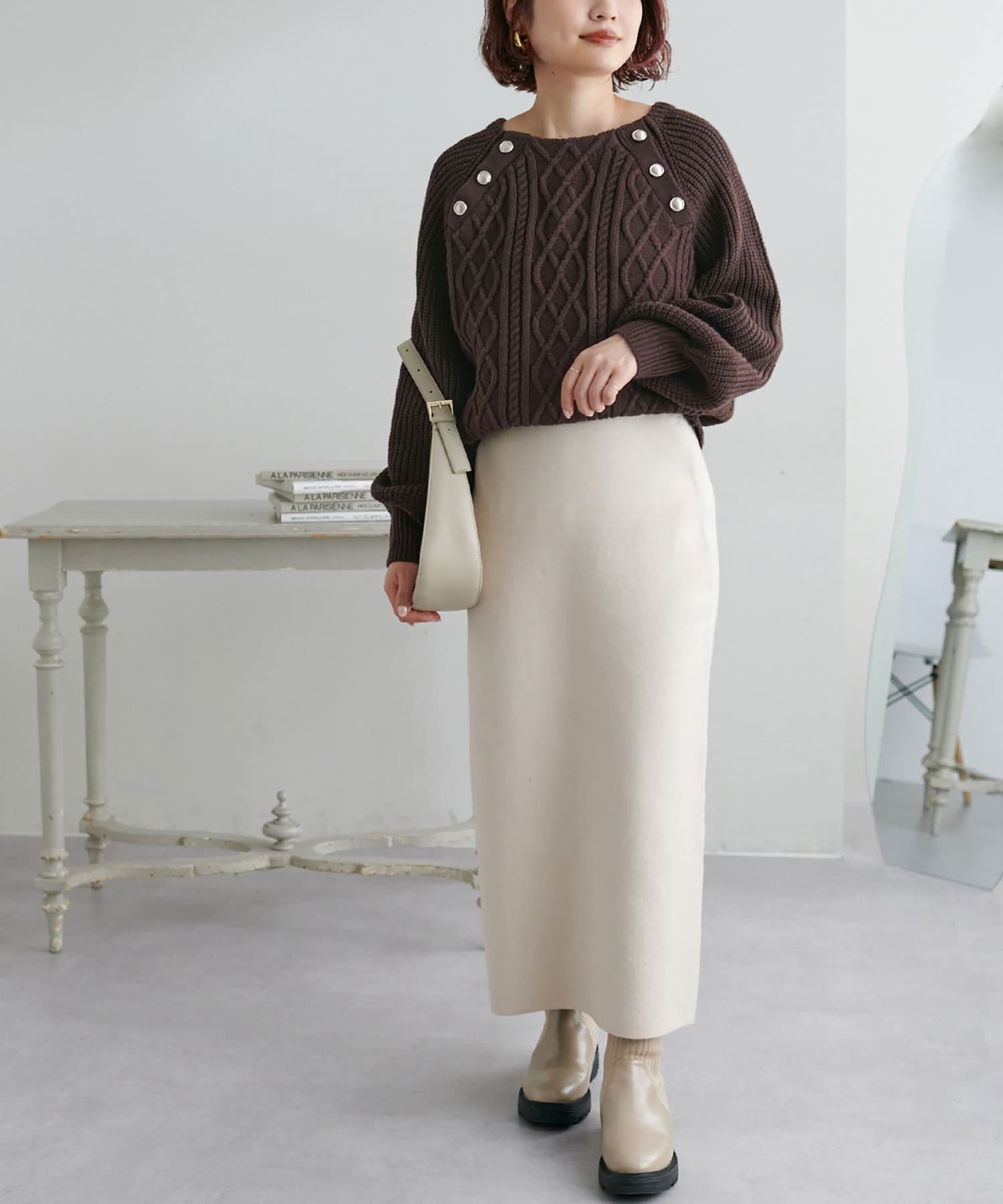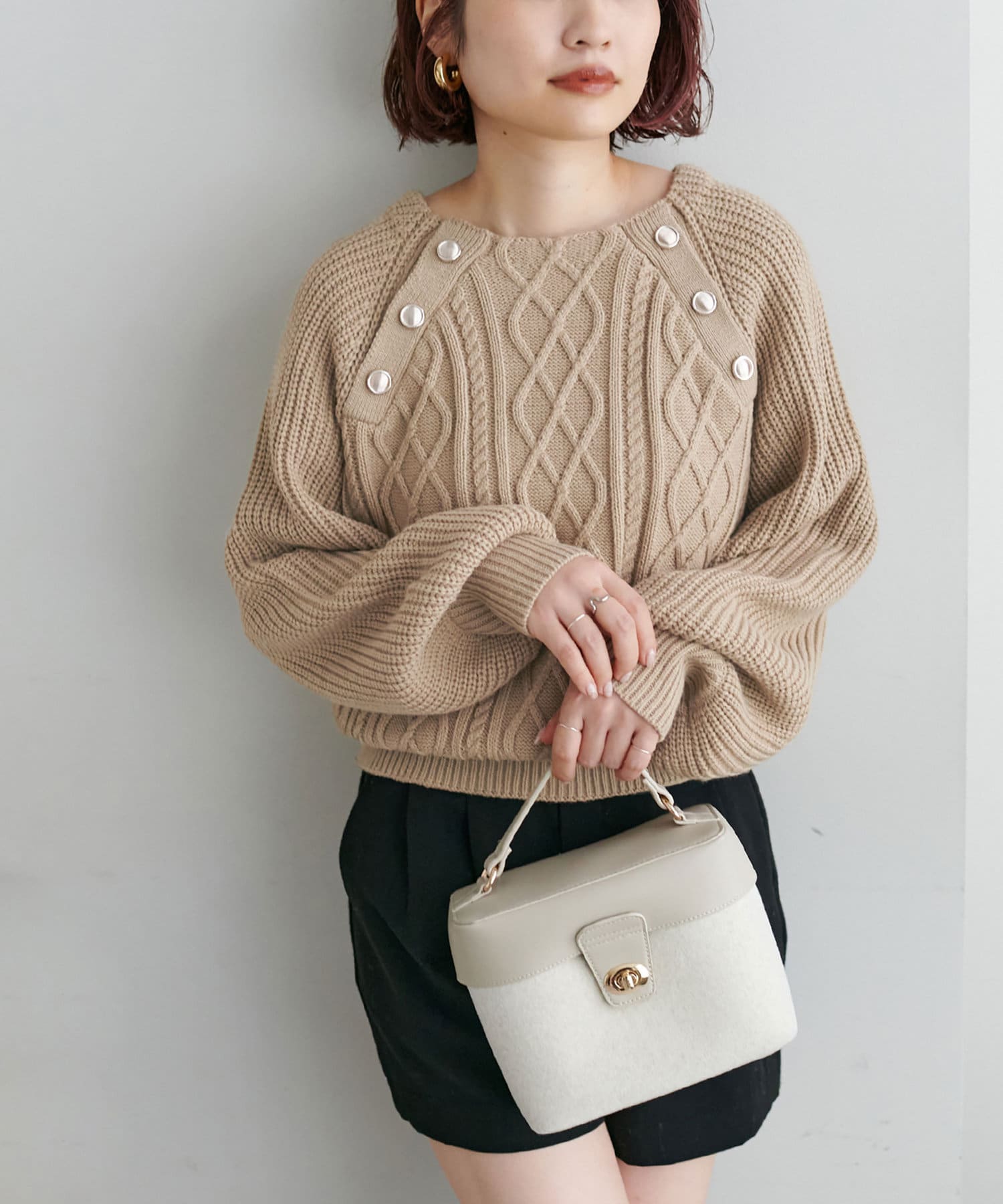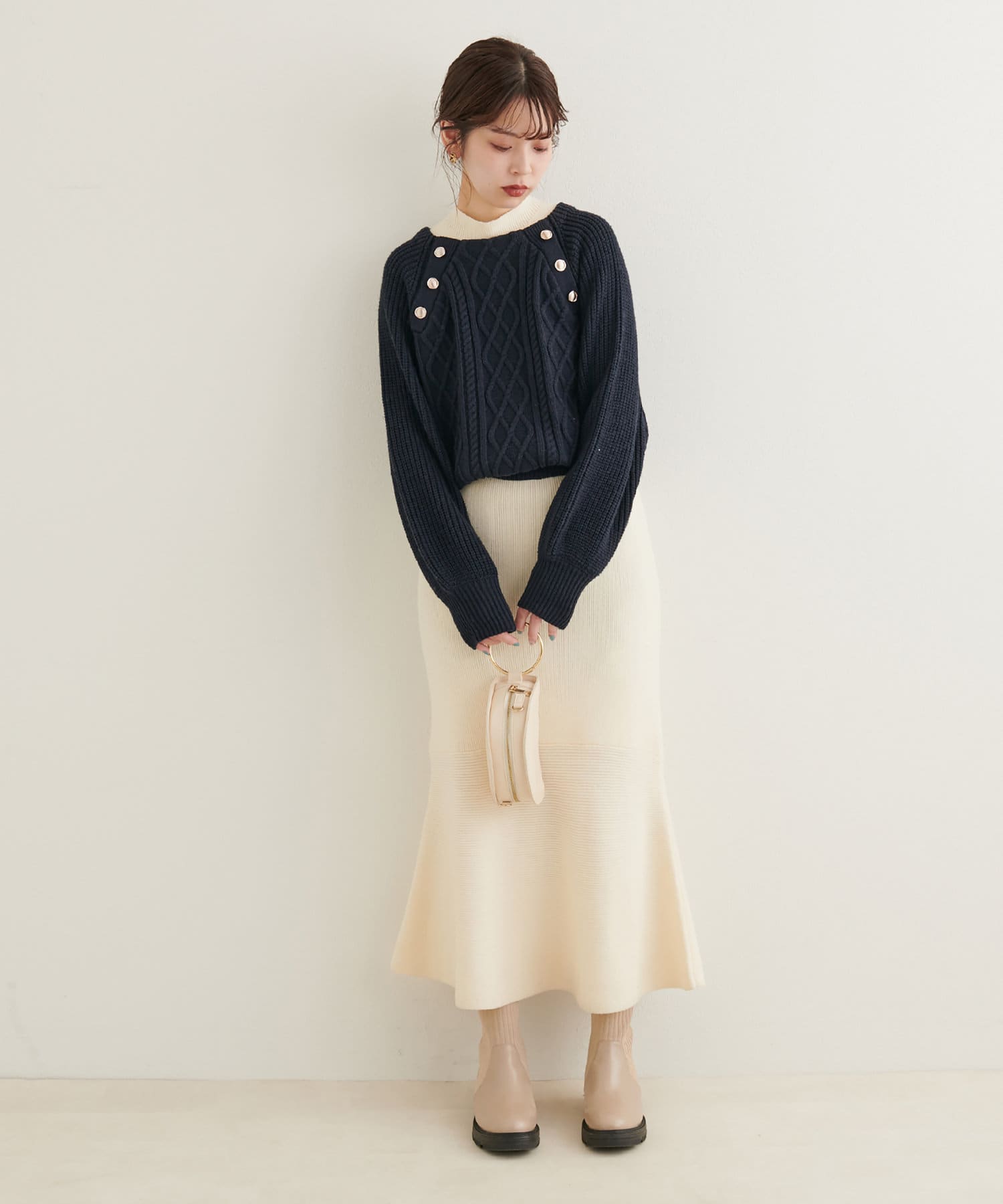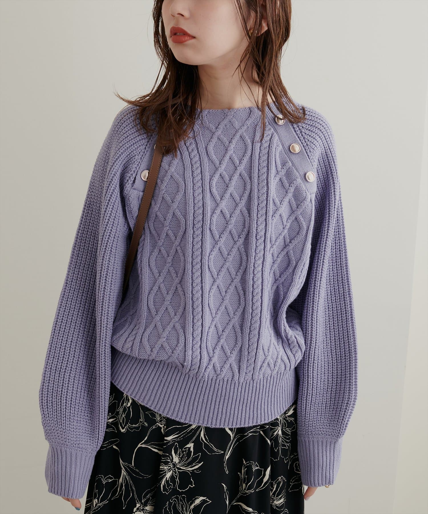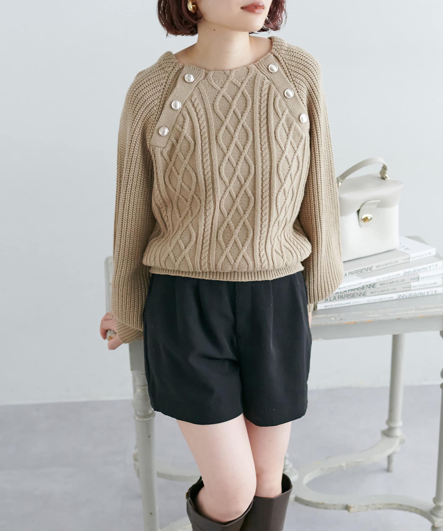 WEB限定/2022AWアイテム/釦デザインケーブルニット